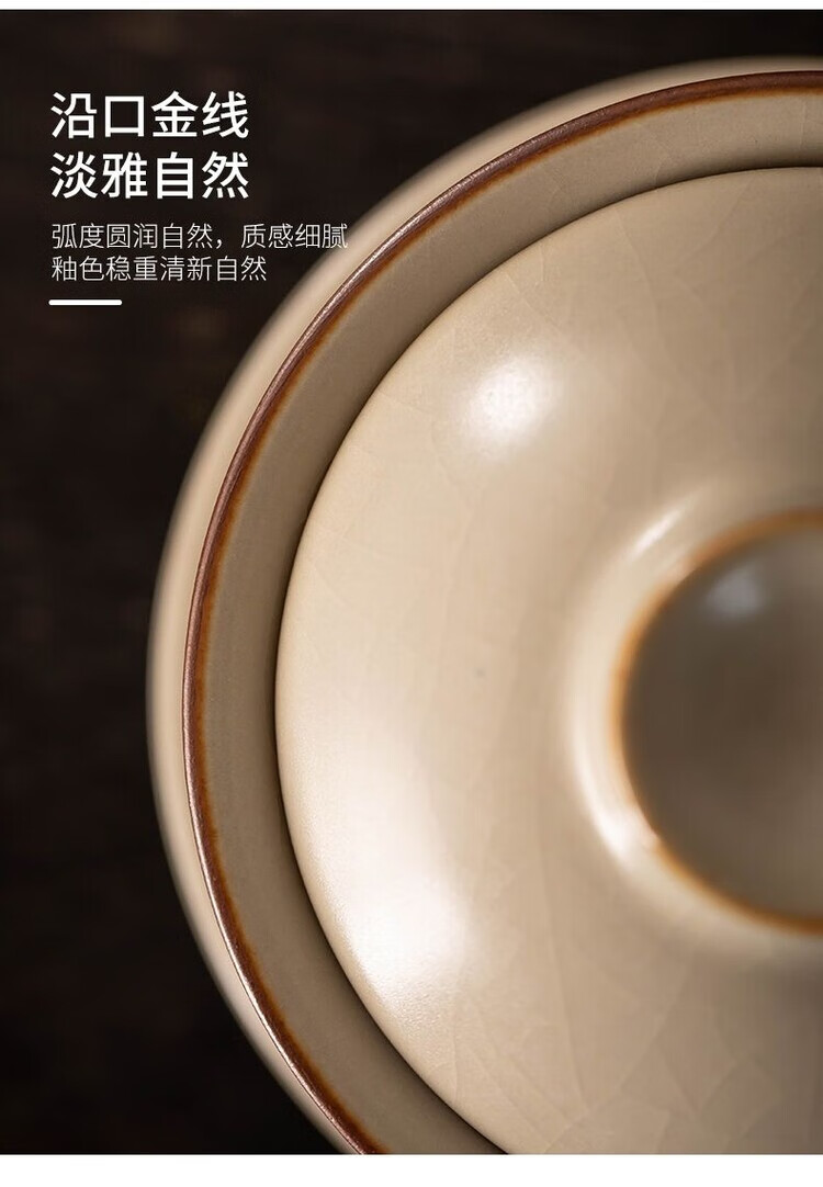 简漾汝窑功夫茶具套装家用客厅陶瓷茶壶盖碗茶杯全套办公室高档泡茶器 盖碗六杯