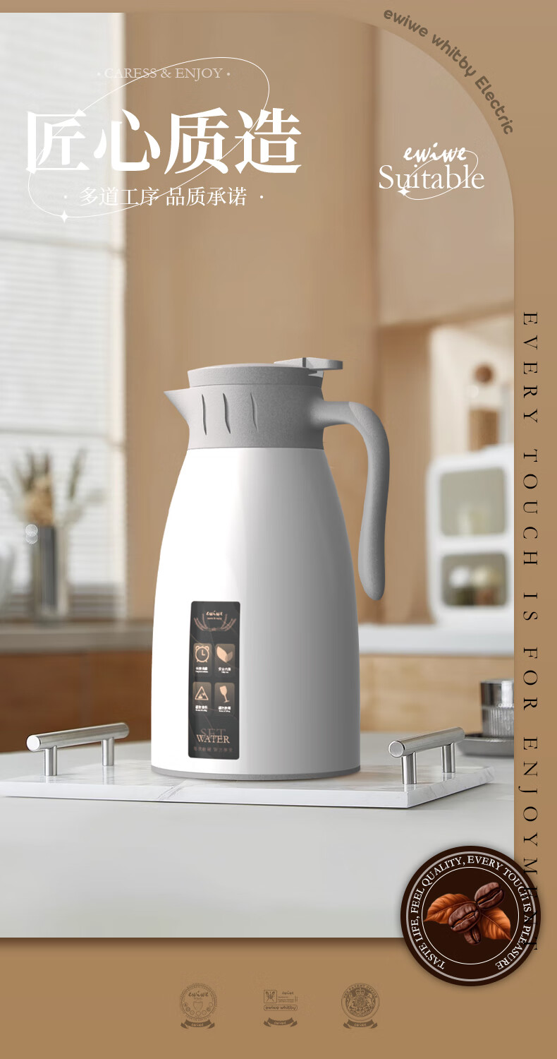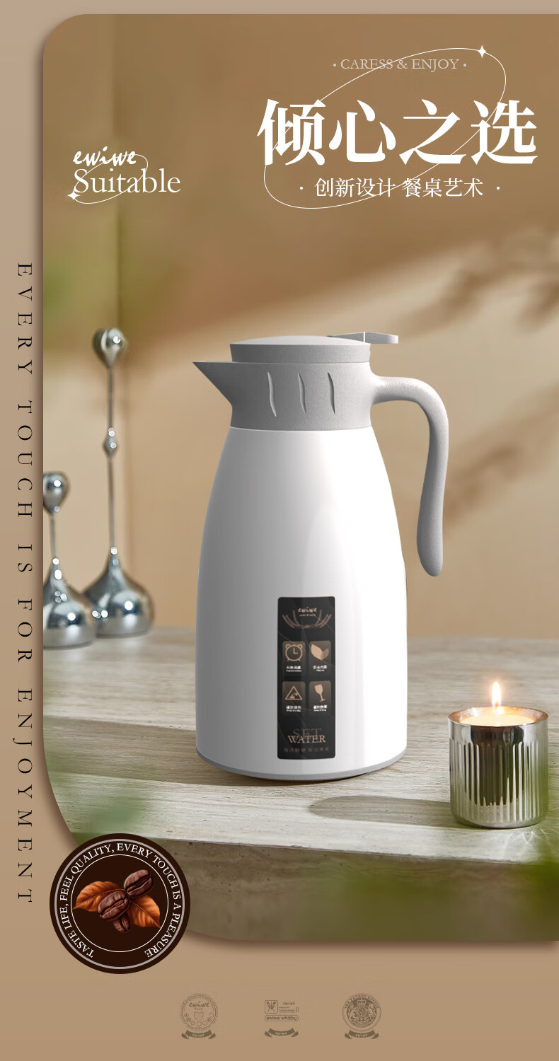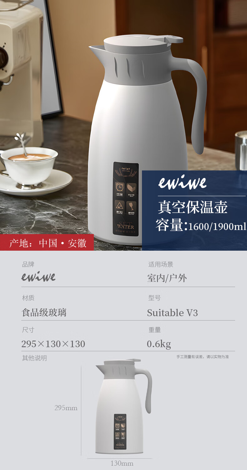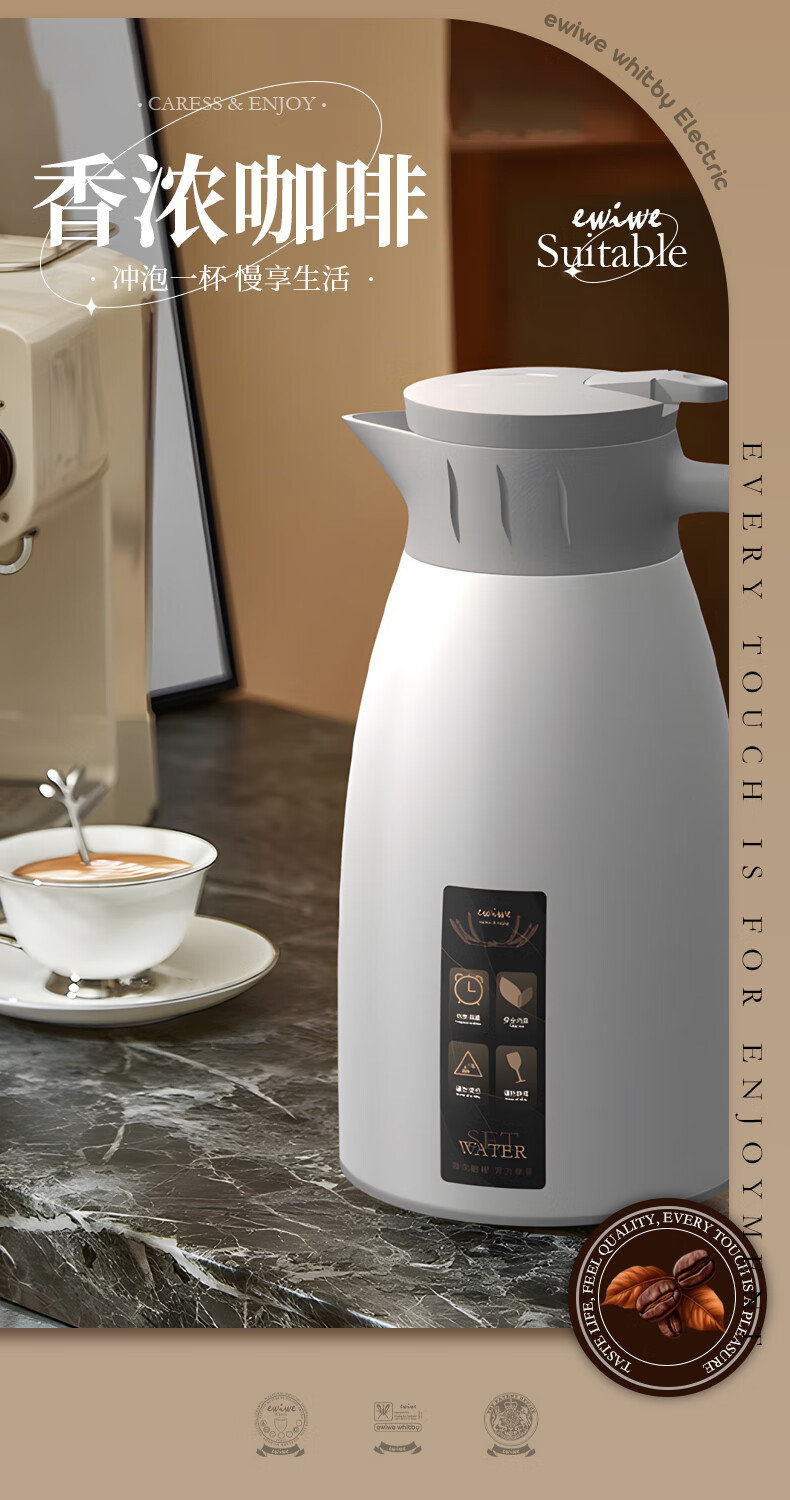 EWIWE保温水壶家用保温壶大容量暖水壶温宿舍热水壶学生热水瓶暖瓶 全白色/镀银内胆/大容量1600ml