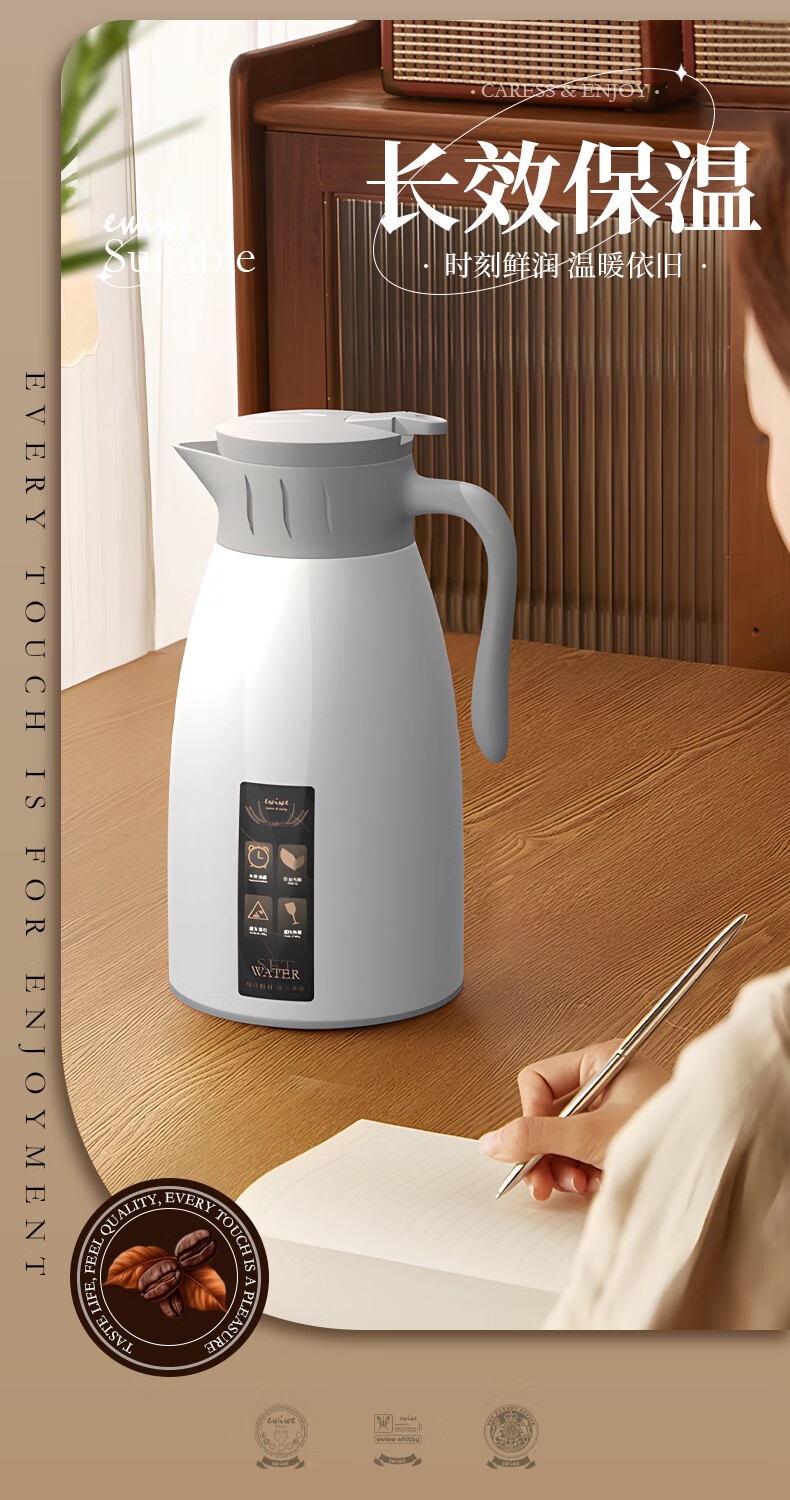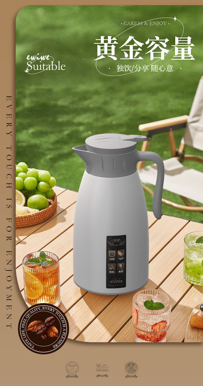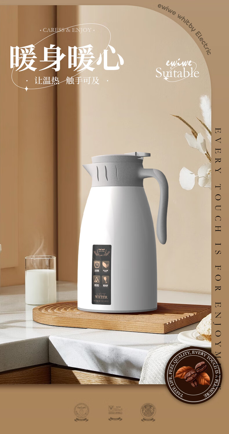 EWIWE保温水壶家用保温壶大容量暖水壶温宿舍热水壶学生热水瓶暖瓶 全白色/镀银内胆/大容量1600ml