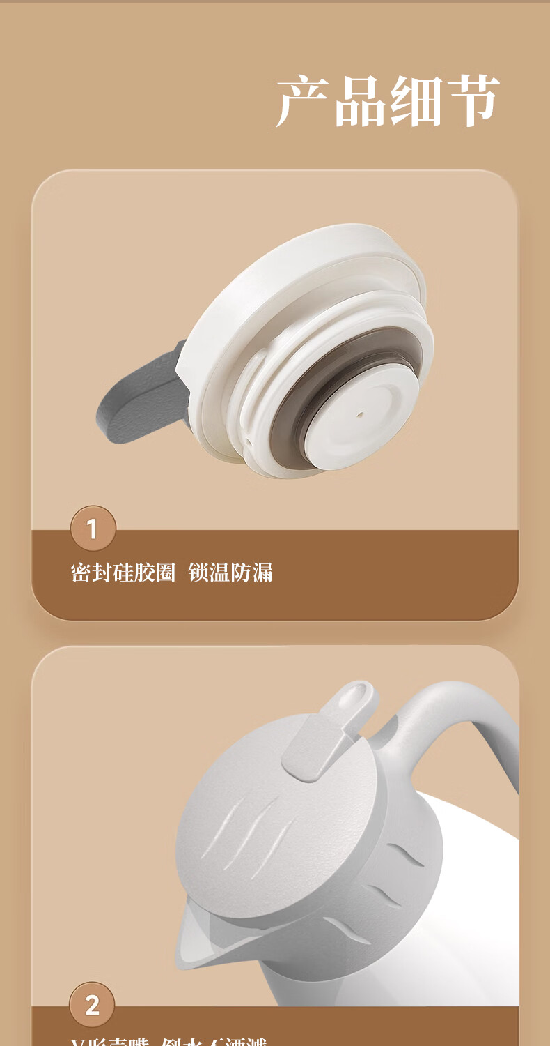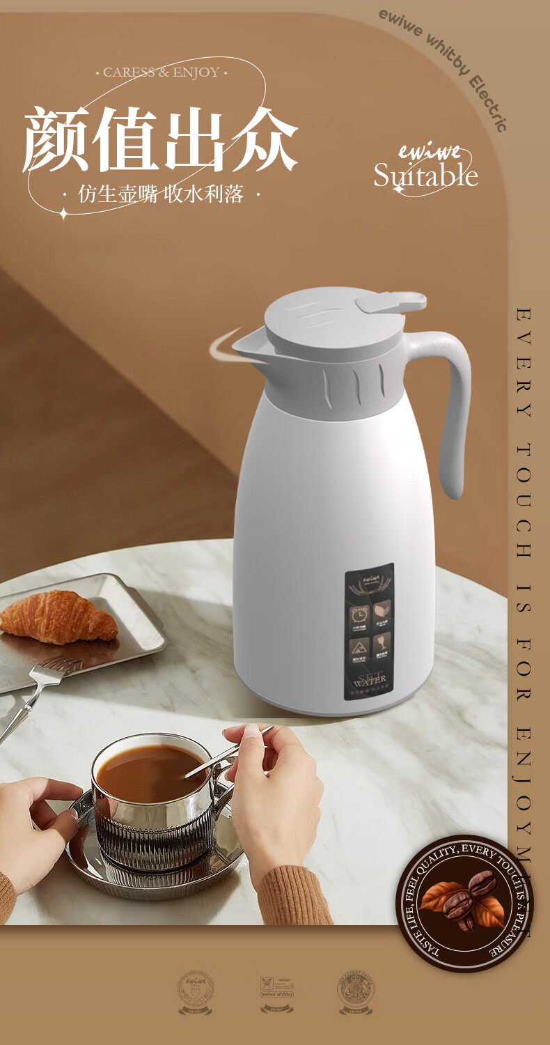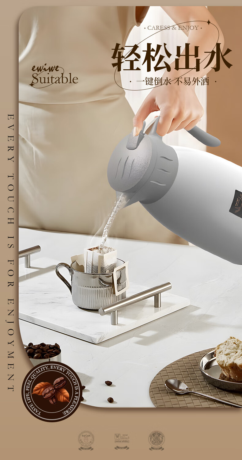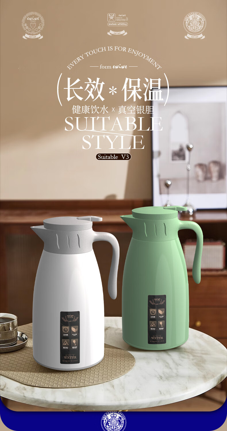 EWIWE保温水壶家用保温壶大容量暖水壶温宿舍热水壶学生热水瓶暖瓶 全白色/镀银内胆/大容量1600ml
