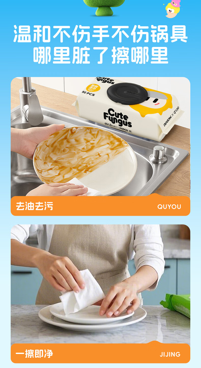 怡恩贝加大加厚厨房清洁湿巾去油污家用油烟机专用抽取湿纸巾懒人抹布