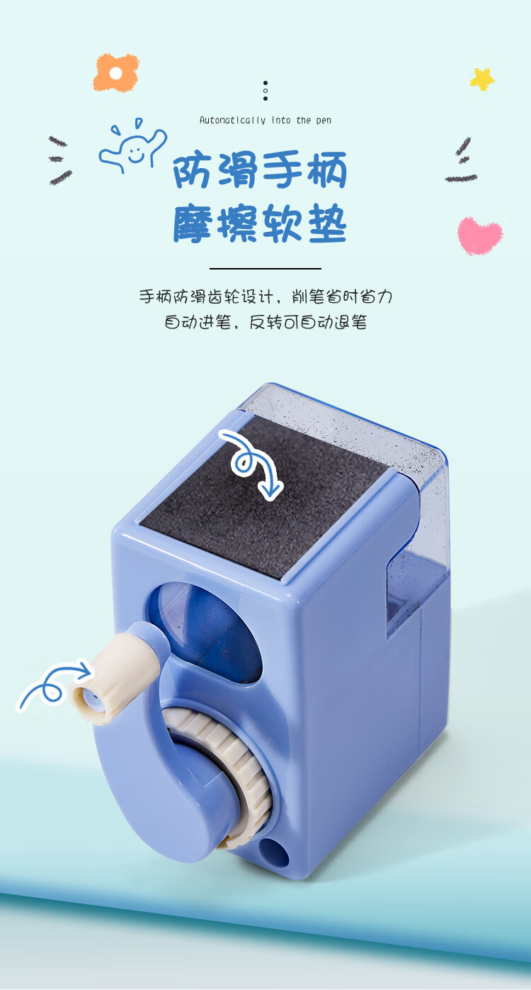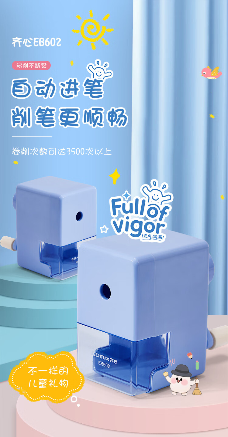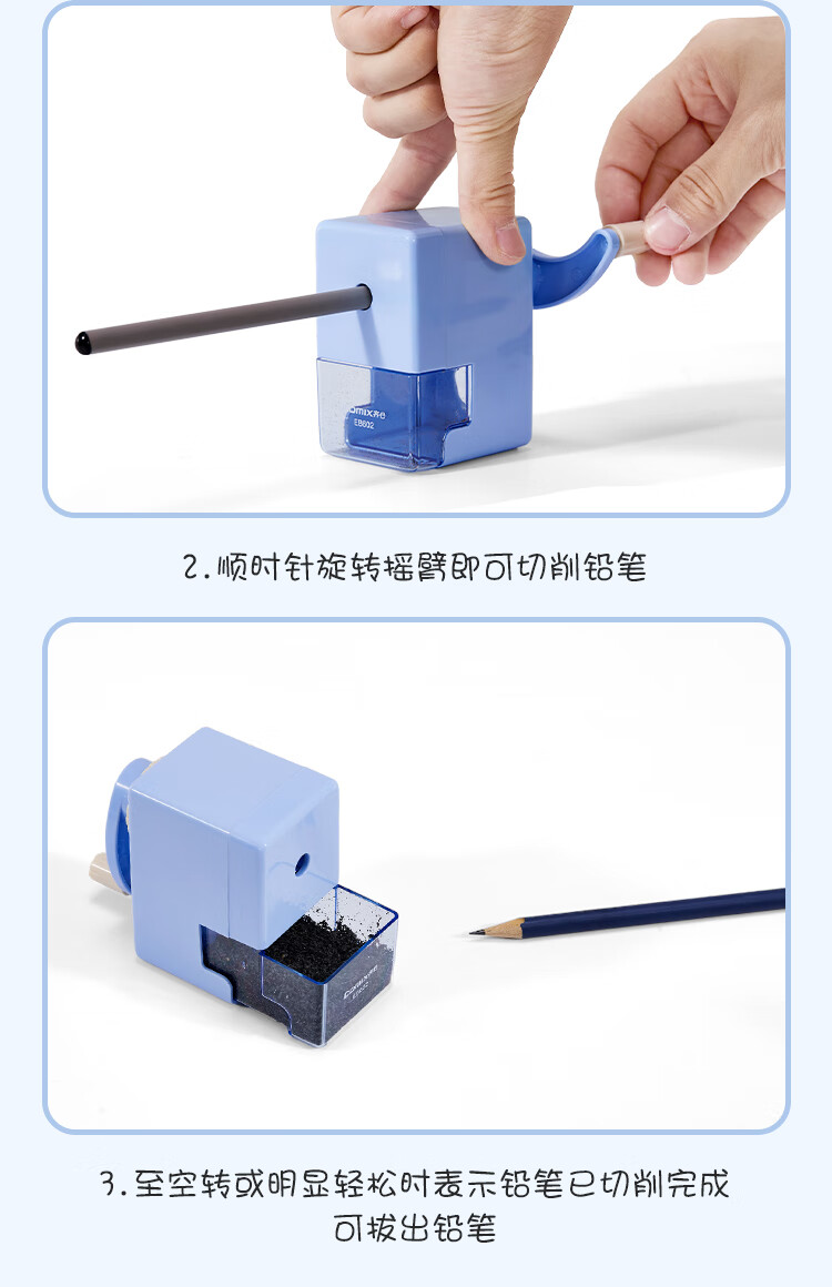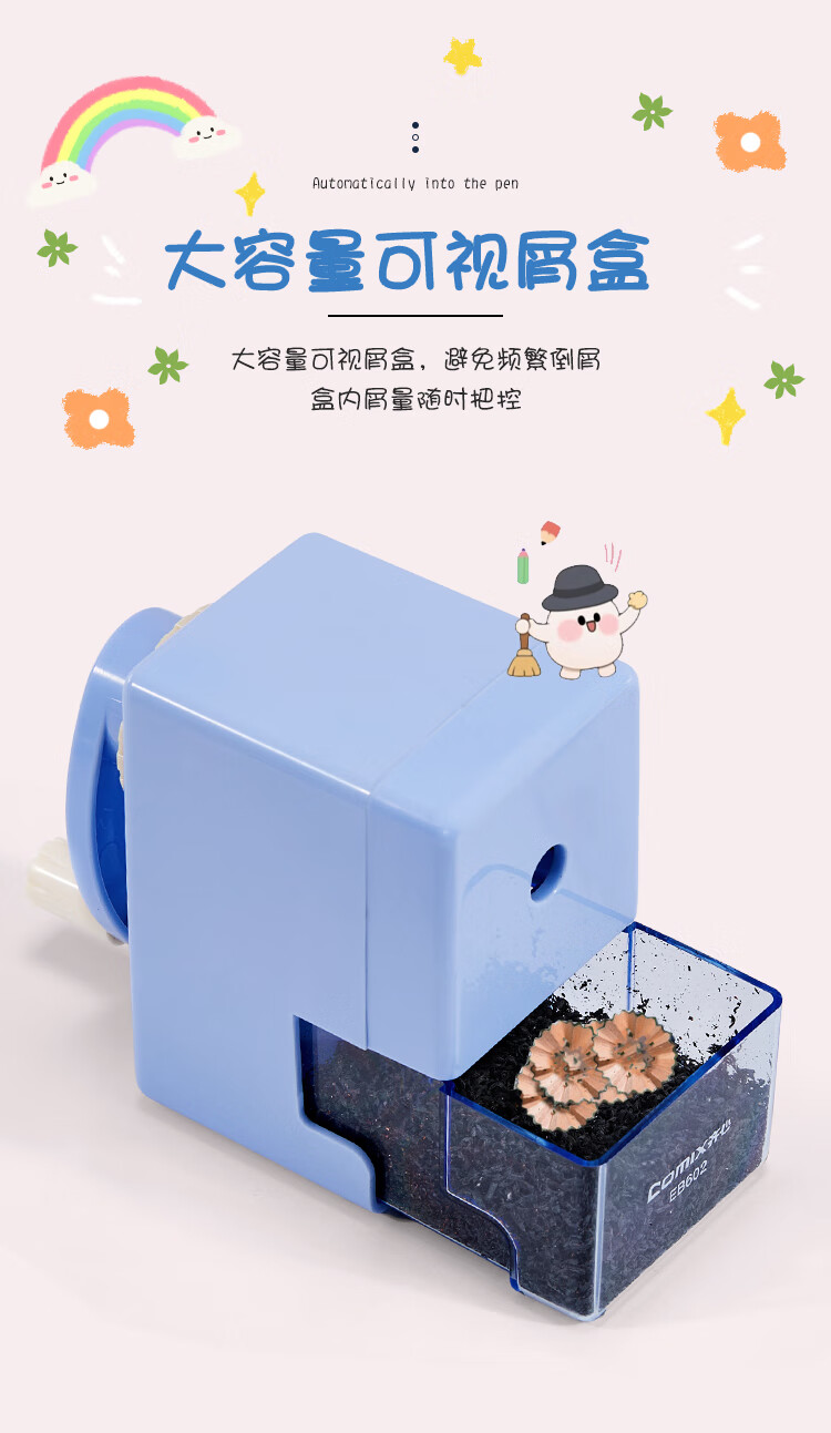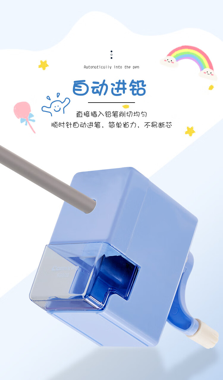 齐心(COMIX)简约手摇削笔机 卷笔刀自动进笔排断芯转笔刀削笔刀铅笔削笔器学生文具开学礼物 EB602蓝