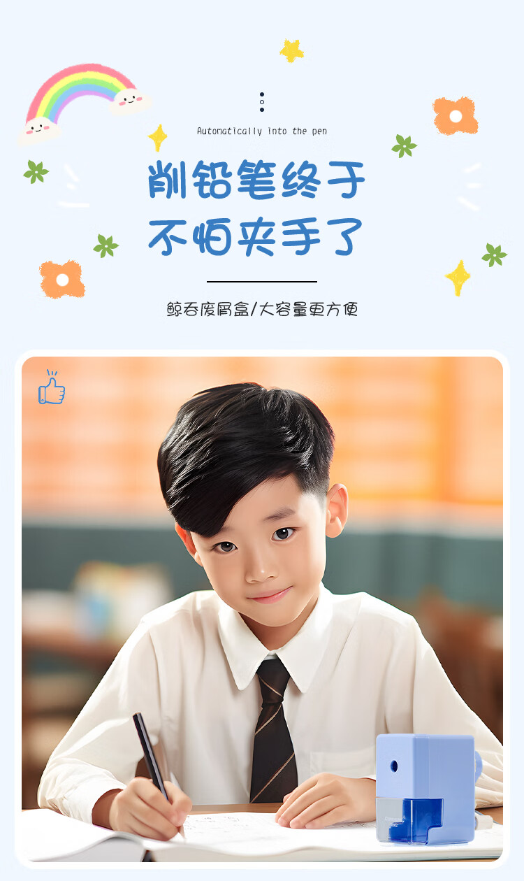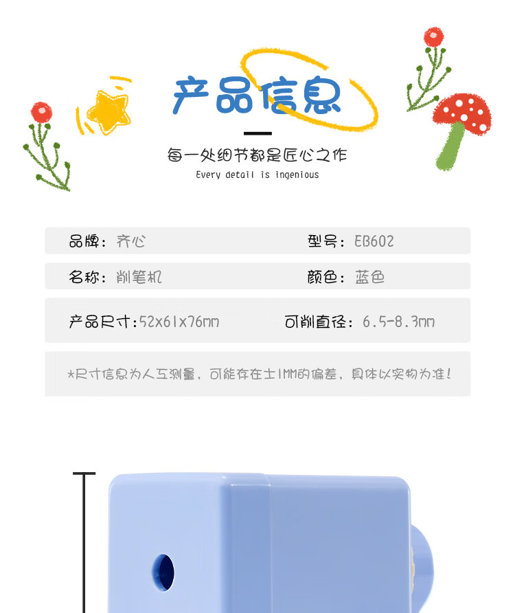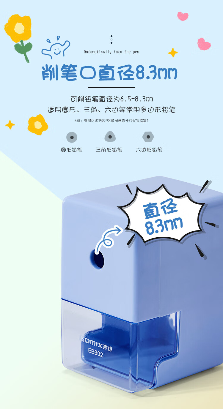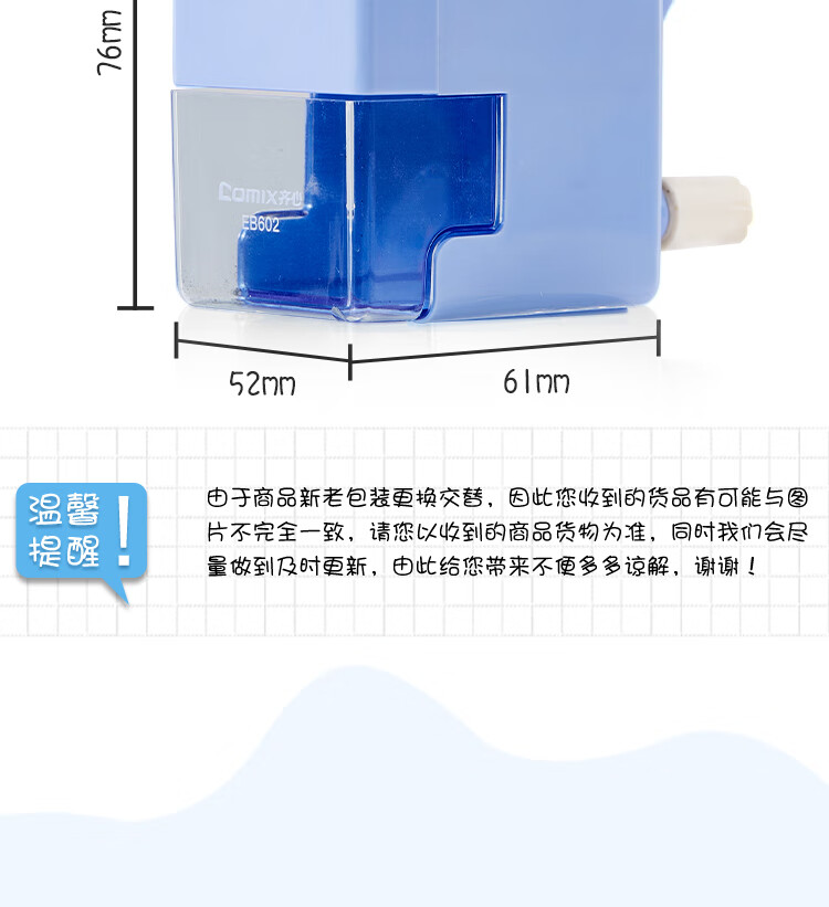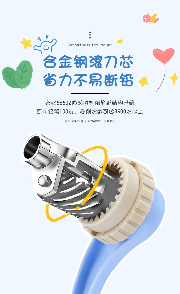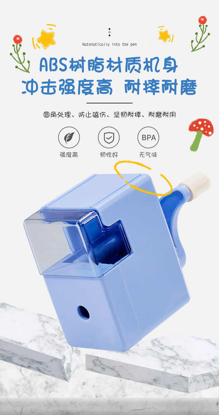 齐心(COMIX)简约手摇削笔机 卷笔刀自动进笔排断芯转笔刀削笔刀铅笔削笔器学生文具开学礼物 EB602蓝