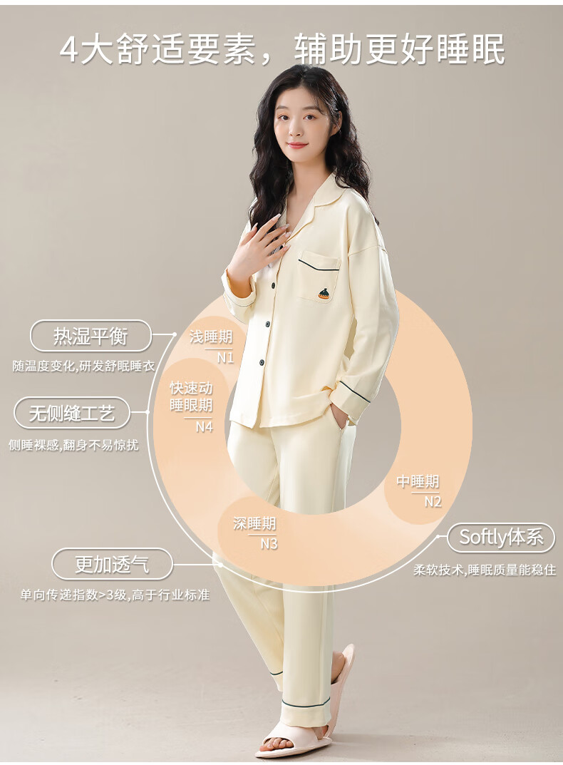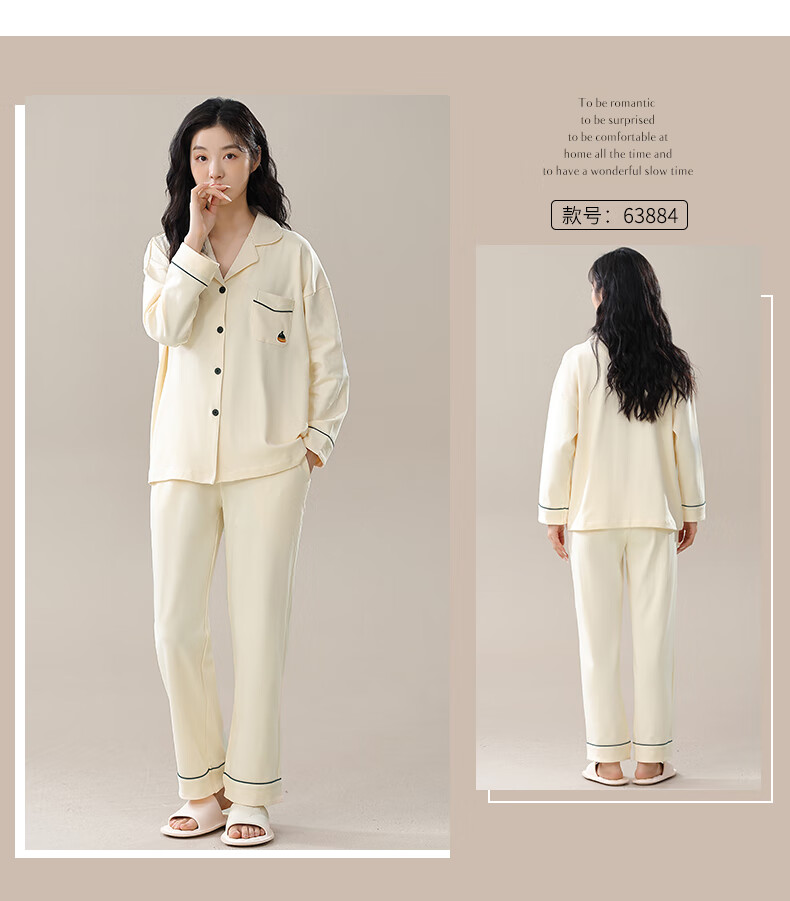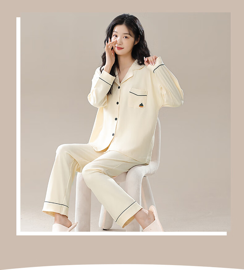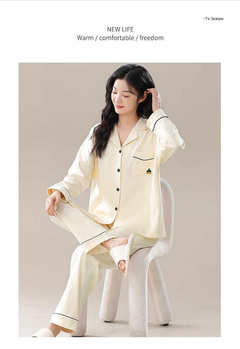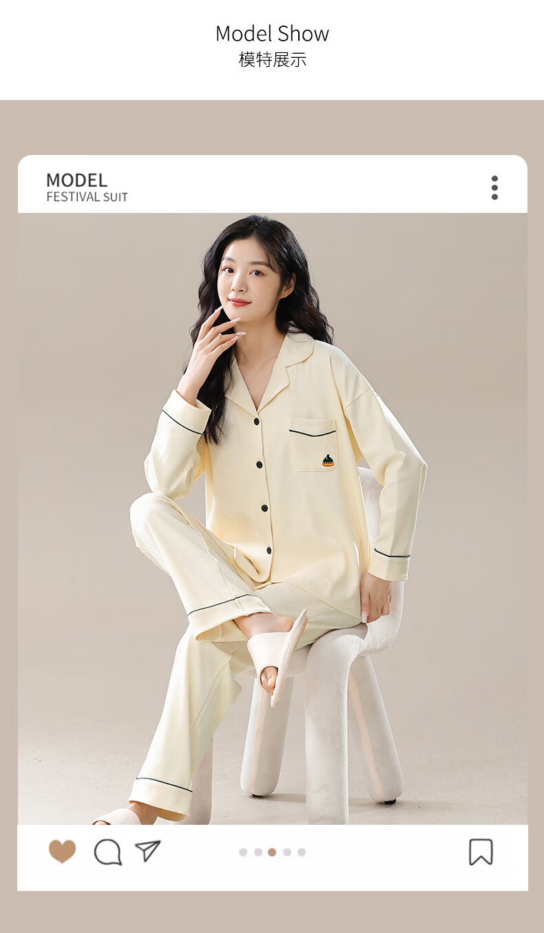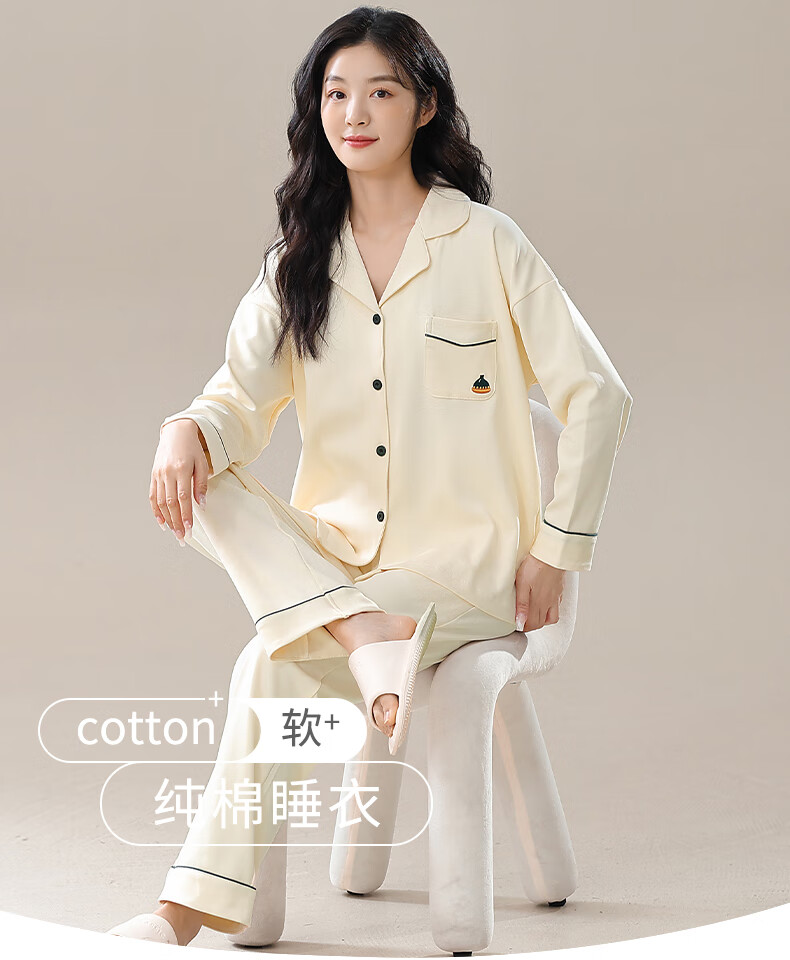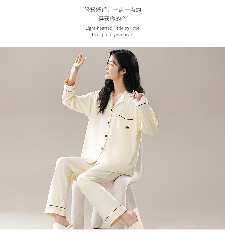 猫人纯棉睡衣男女秋冬季100全棉长袖长裤开衫简约高级轻奢家居服套装 男士家居服套装 100%纯棉 XL 【适合120-140斤】