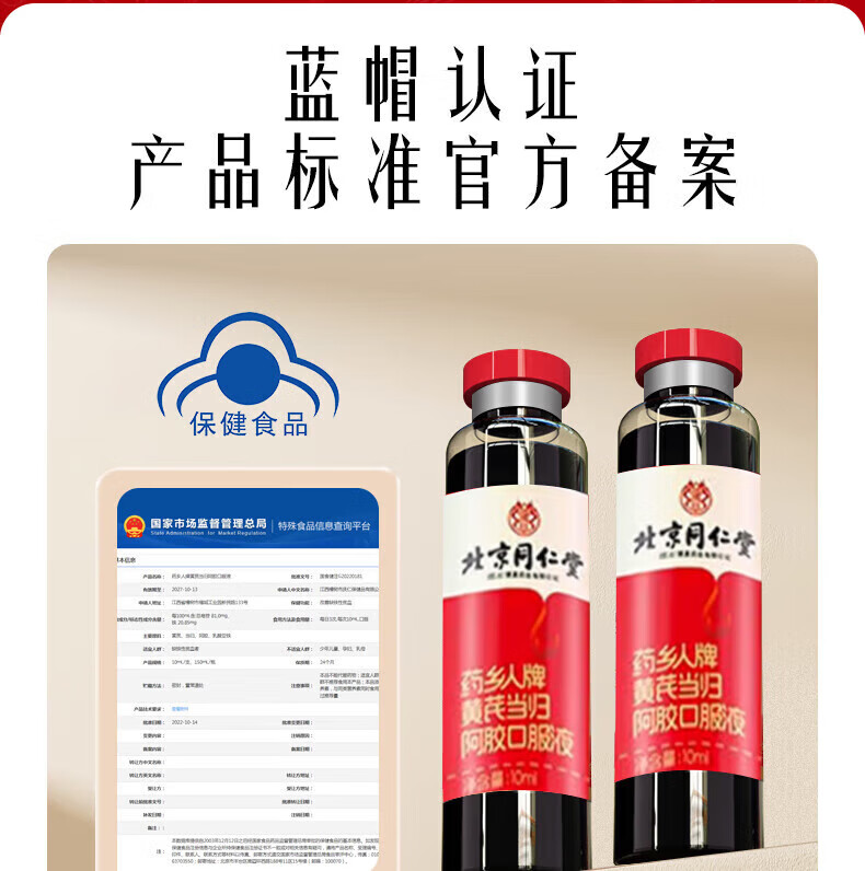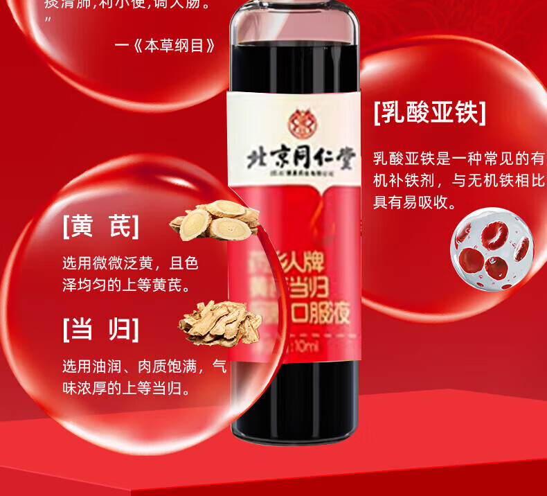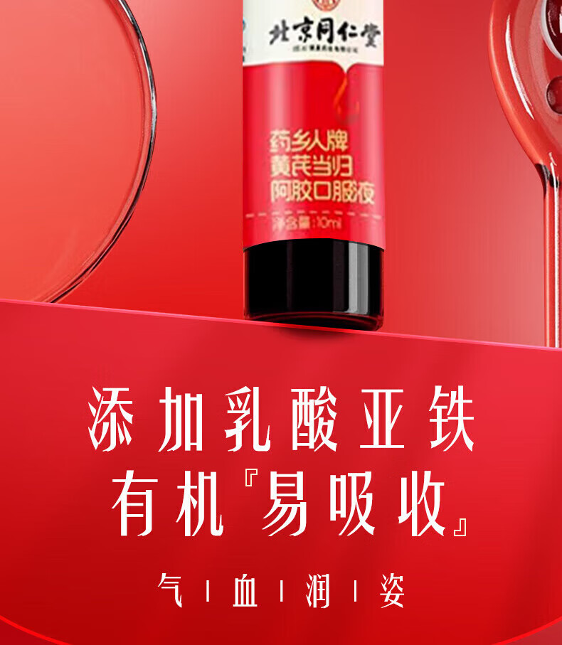 朕皇北京同仁堂黄芪当归阿胶口服液补气血铁女性滋补品 10瓶*2盒 【补气养血红润气色】
