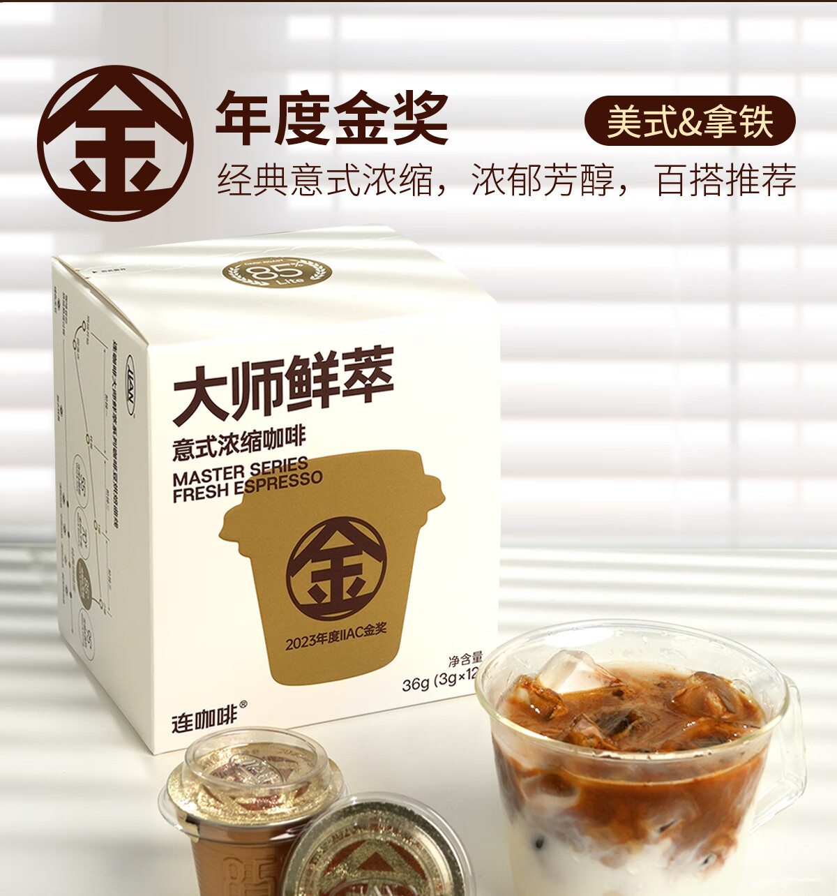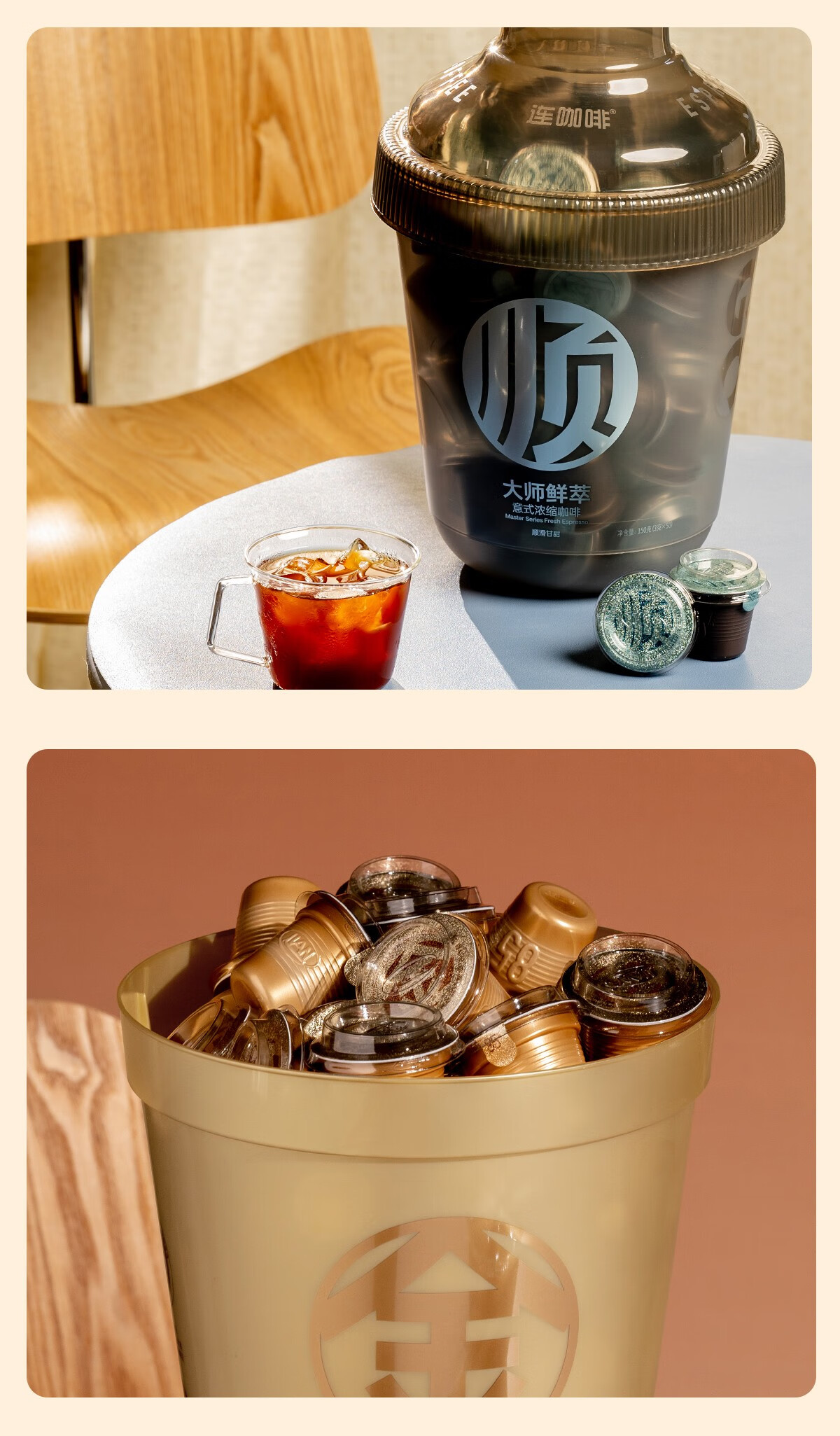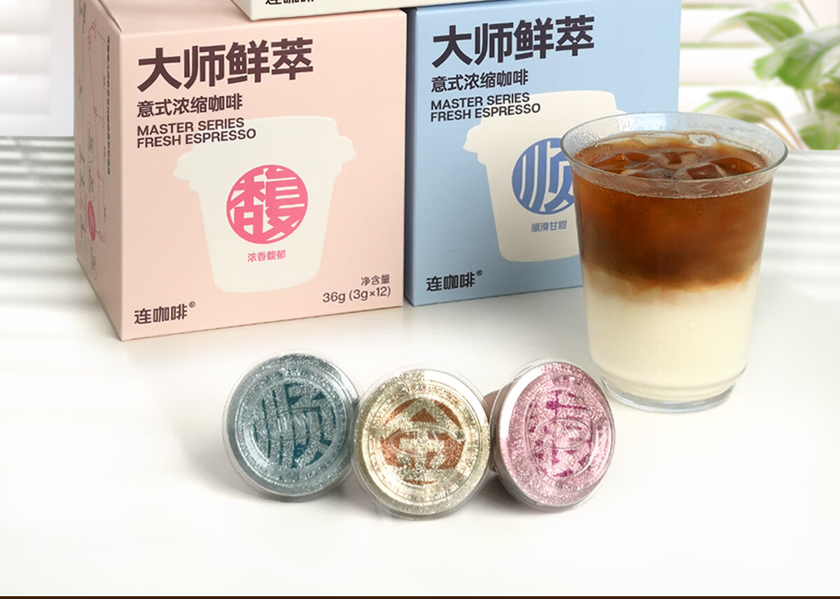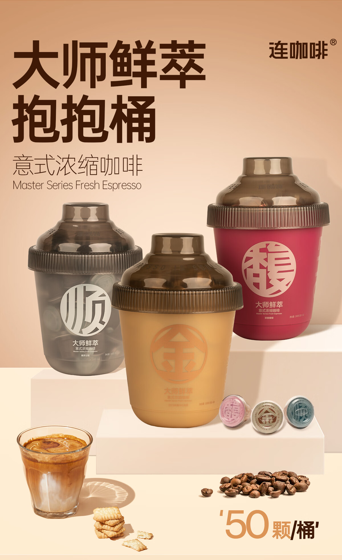 连咖啡 大师鲜萃系列金馥顺抱抱桶 速溶黑咖啡粉 意式浓缩拿铁美式 【50颗】顺滑甘甜(推荐美式)