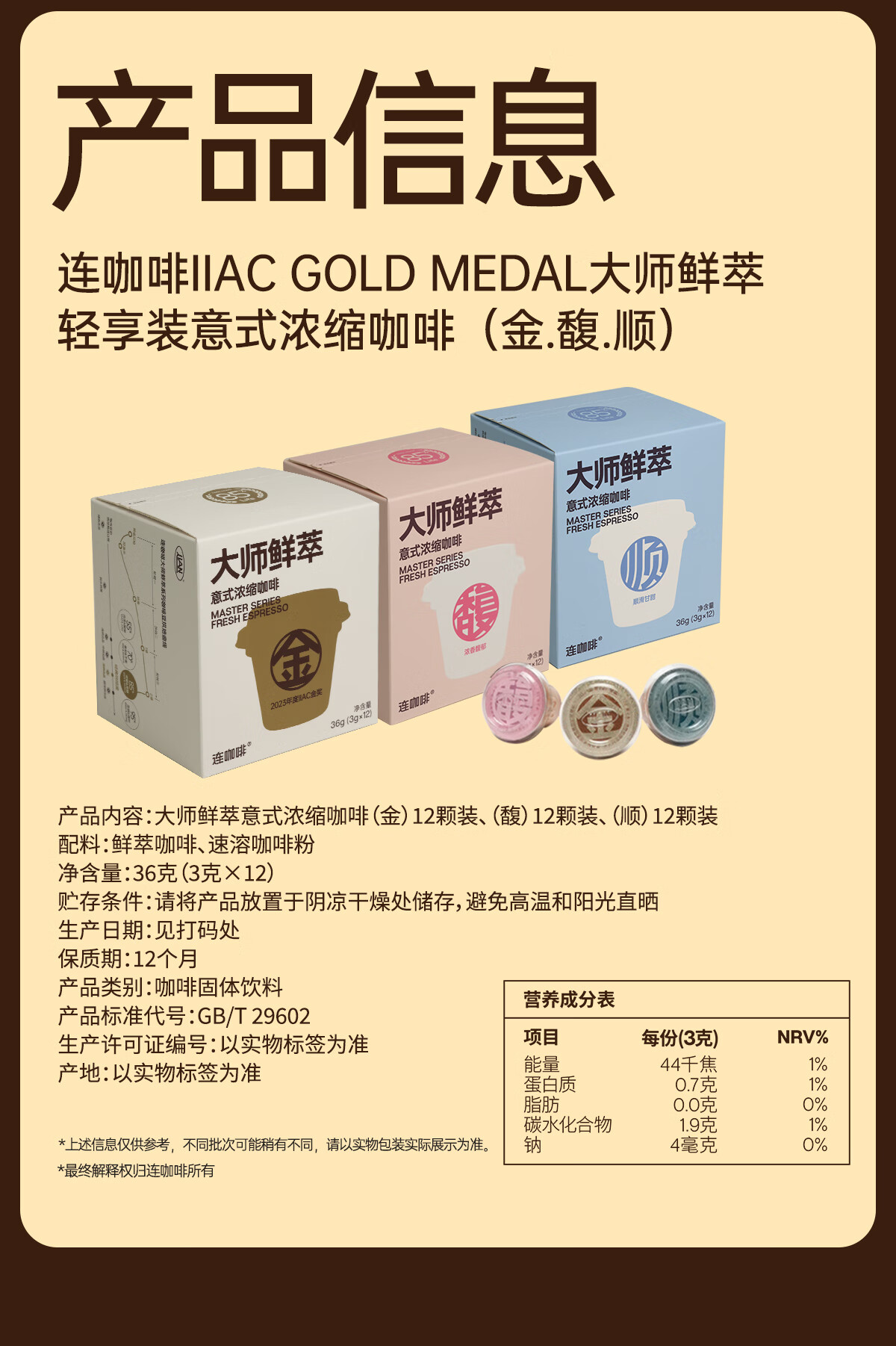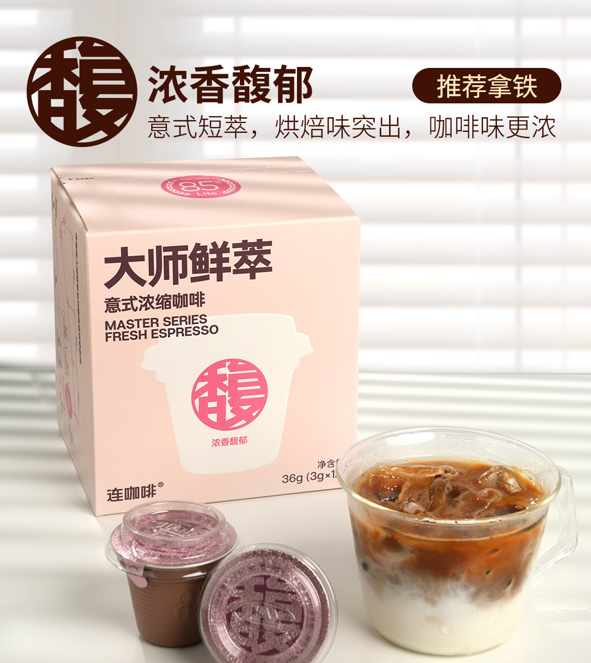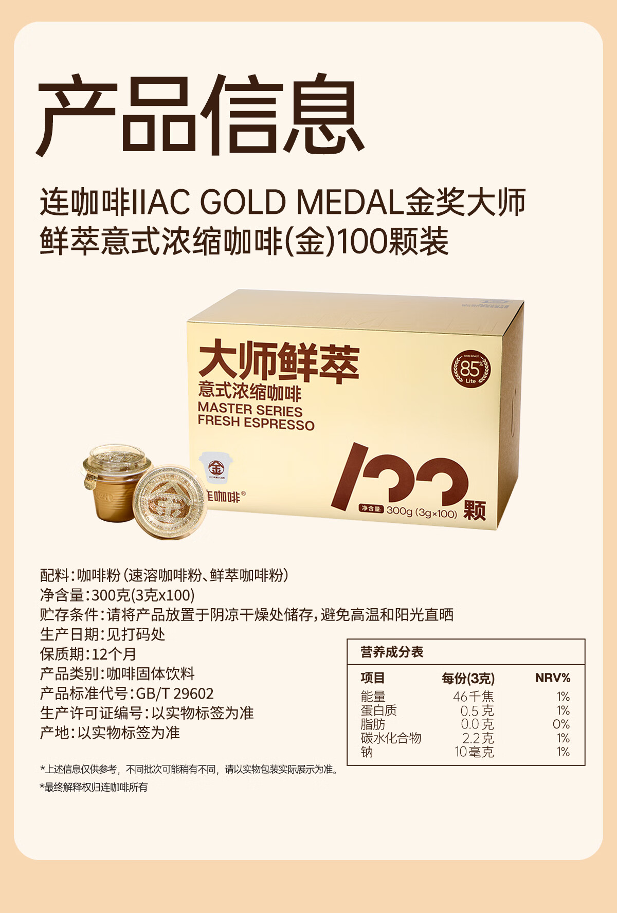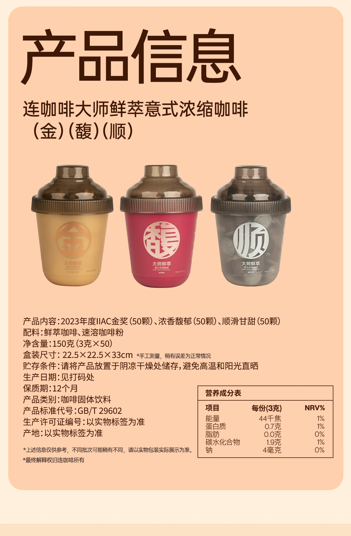 连咖啡 大师鲜萃系列金馥顺抱抱桶 速溶黑咖啡粉 意式浓缩拿铁美式 【50颗】顺滑甘甜(推荐美式)
