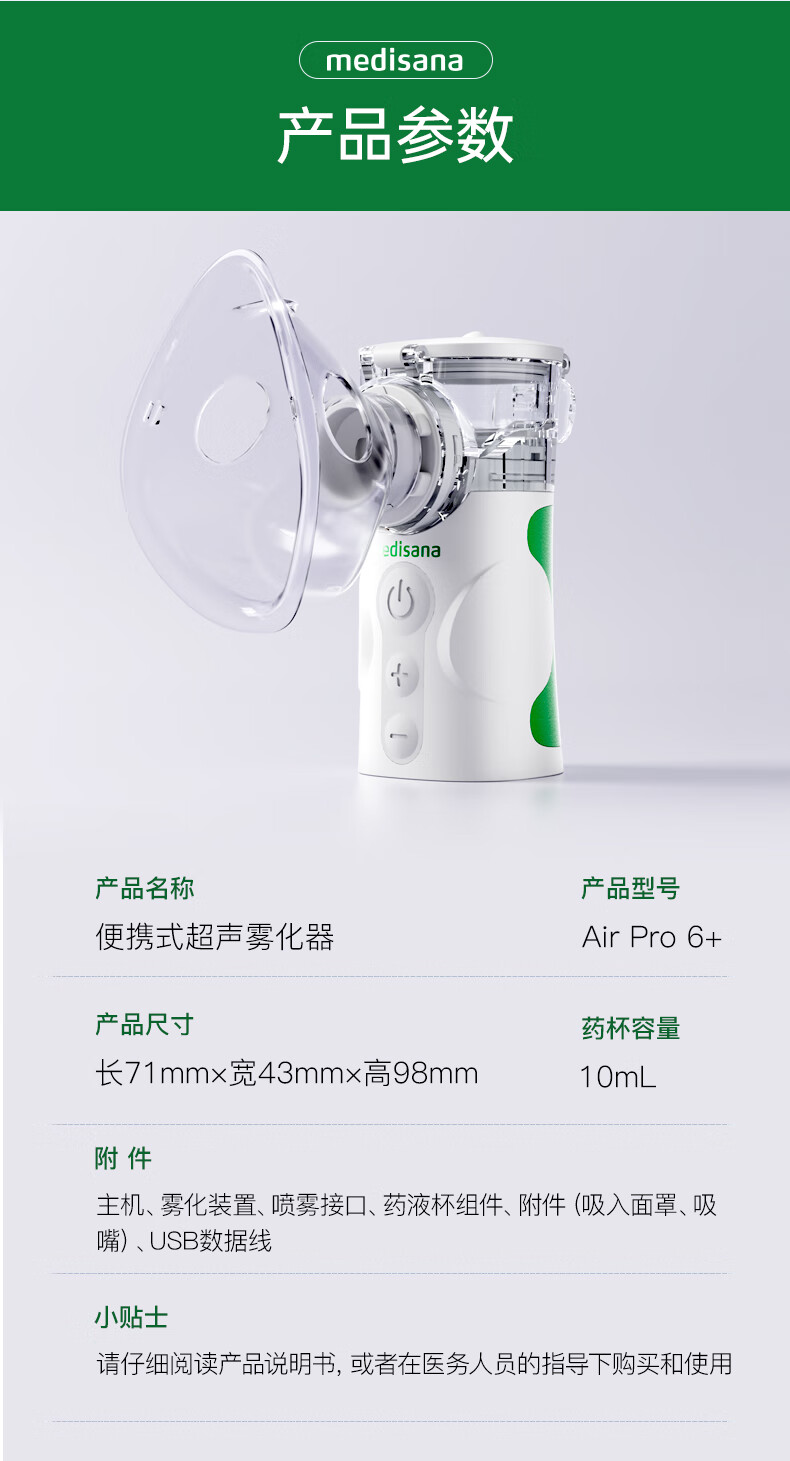 MEDISANA雾化器儿童家用止咳哮喘医用手持婴幼儿便携式雾化机老人AirPro6