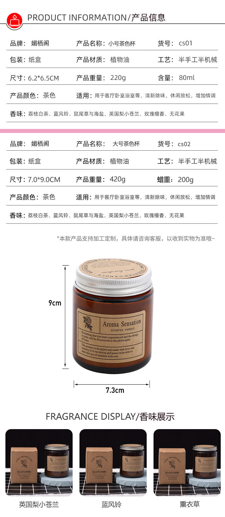 小N棕瓶手工无烟茶色玻璃杯蜡烛香氛网红礼物植物香薰腊烛一件 英国梨小苍兰 小号茶色杯