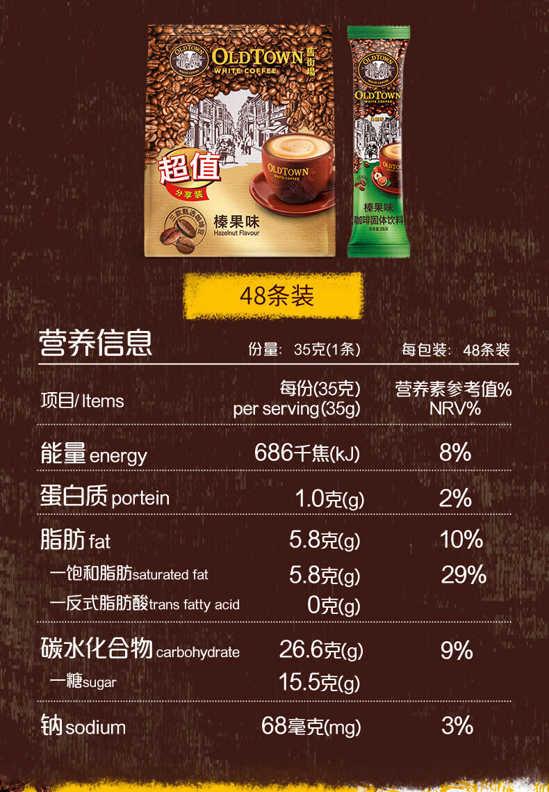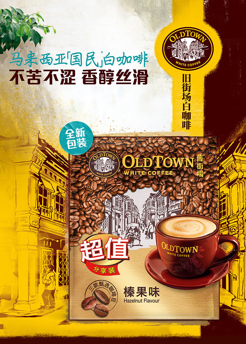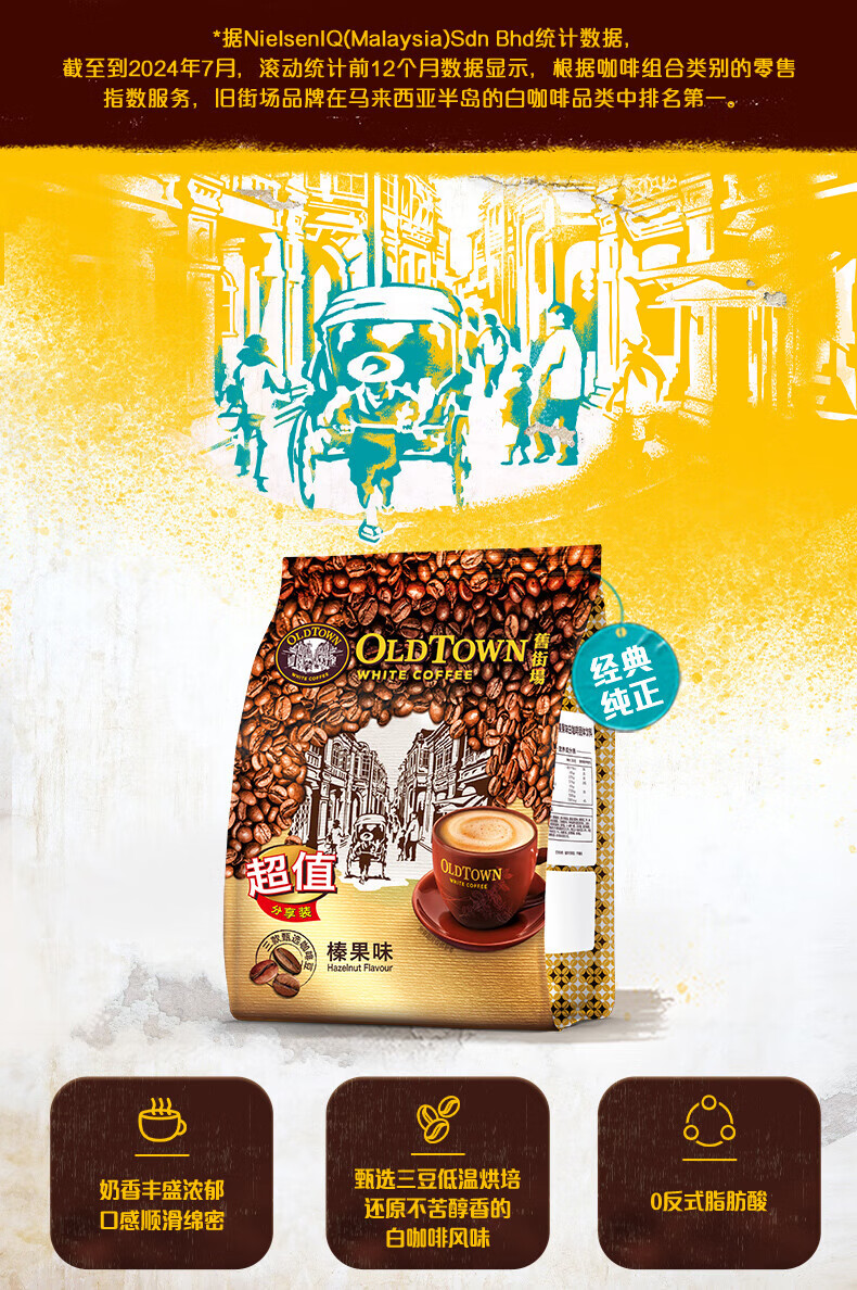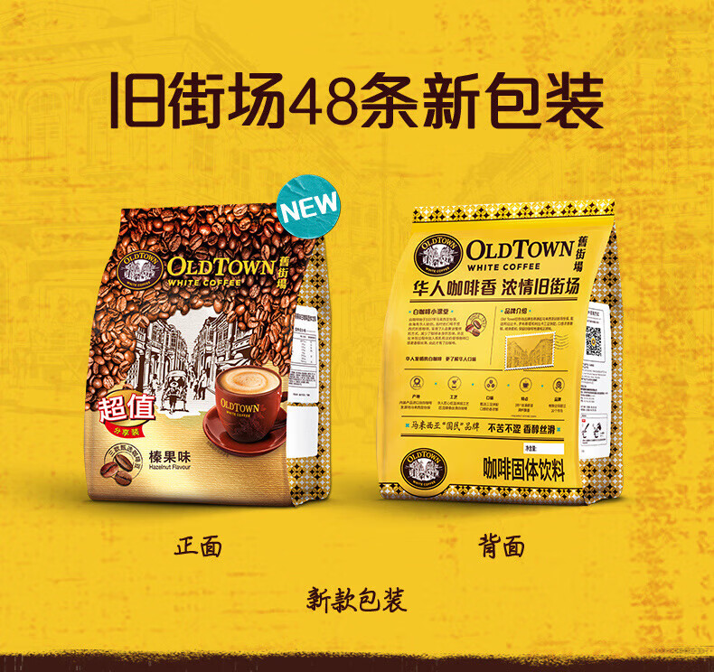 旧街场(OLDTOWN)马来西亚进口白咖啡速溶咖啡粉休闲冲饮经典系列48条 原味35gx48条【26年4月到期】