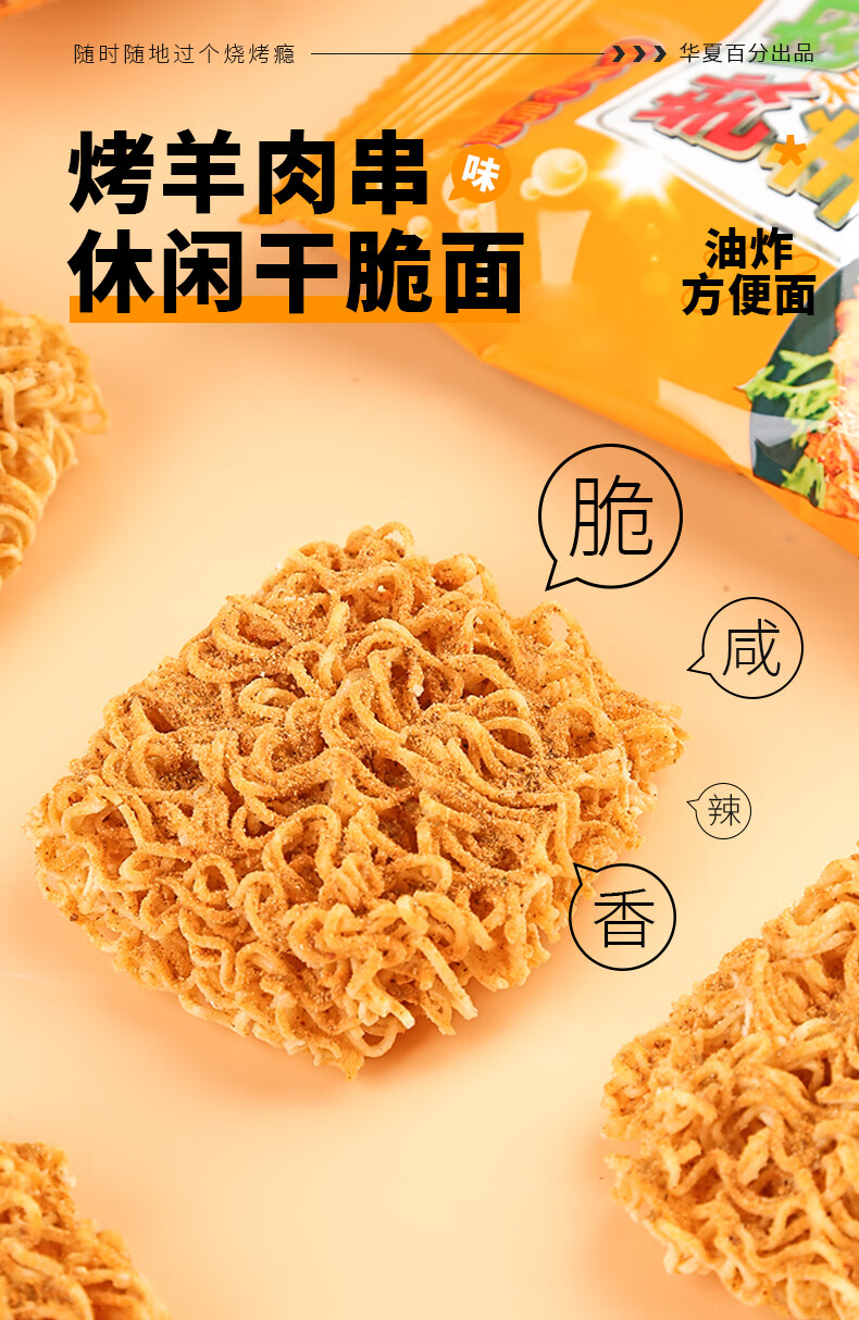 华夏百分干脆面掌心脆烧烤羊肉串风味干吃面怀旧零食420g(14g*30包)