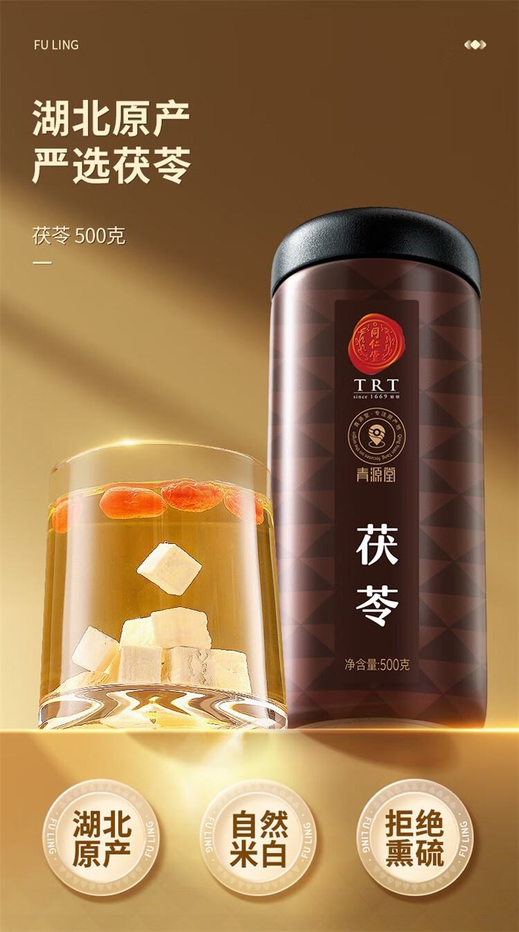 同仁堂品牌北京同仁堂正品白茯苓块500g伏芩丁伏苓泡水茶料非中药材