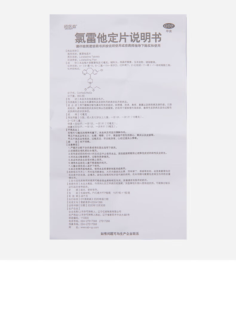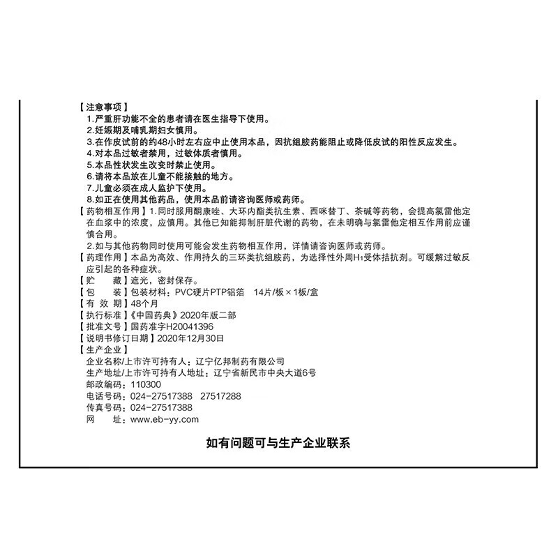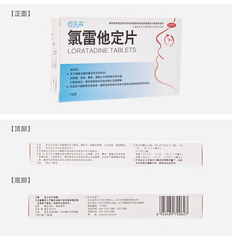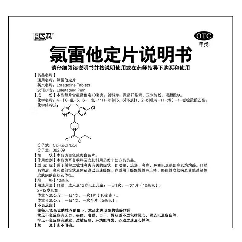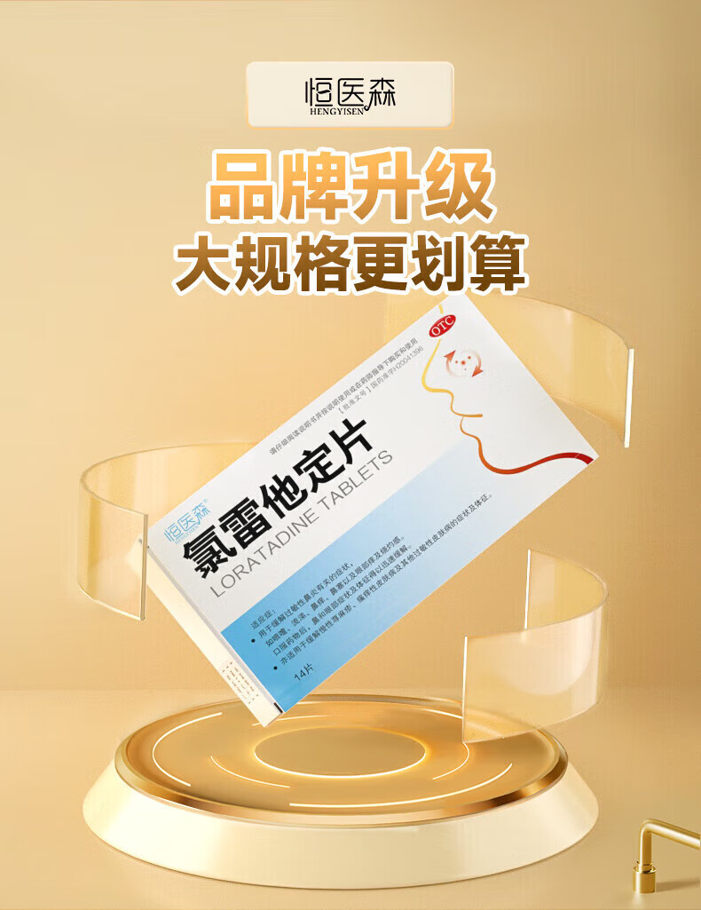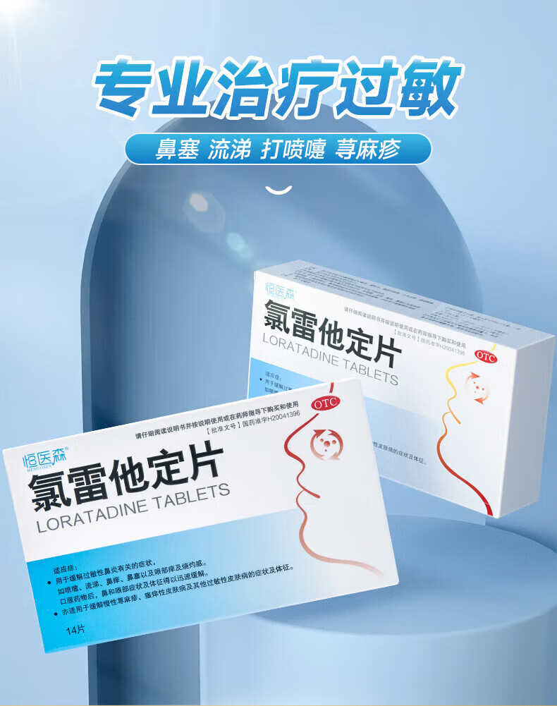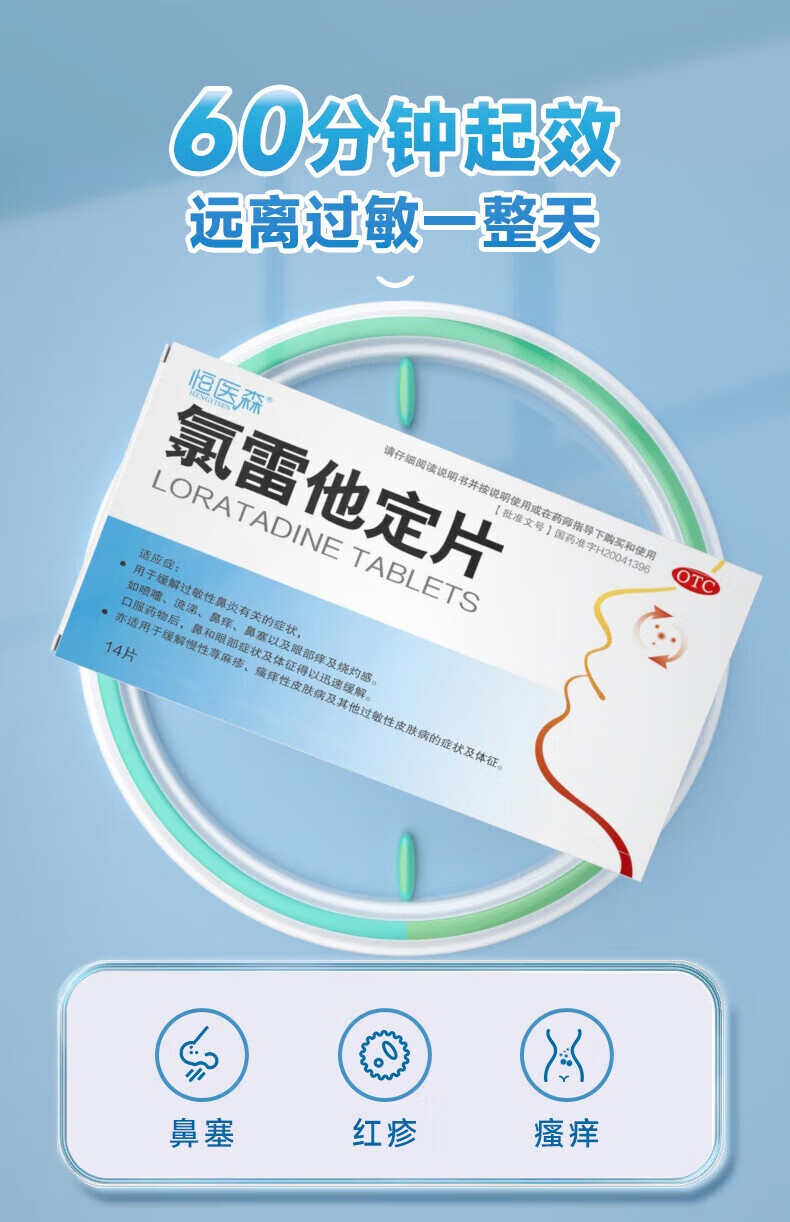 [恒医森]氯雷他定片 10mg*14片 1盒装 14片/盒 抗过敏药缓解过敏性鼻炎鼻涕鼻塞鼻炎用药荨麻疹皮肤过敏 迅速缓解过敏
