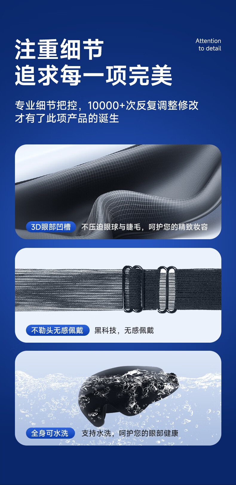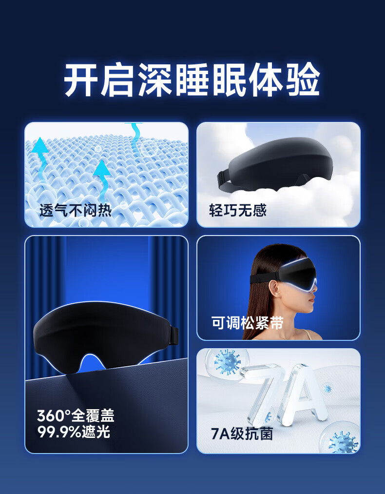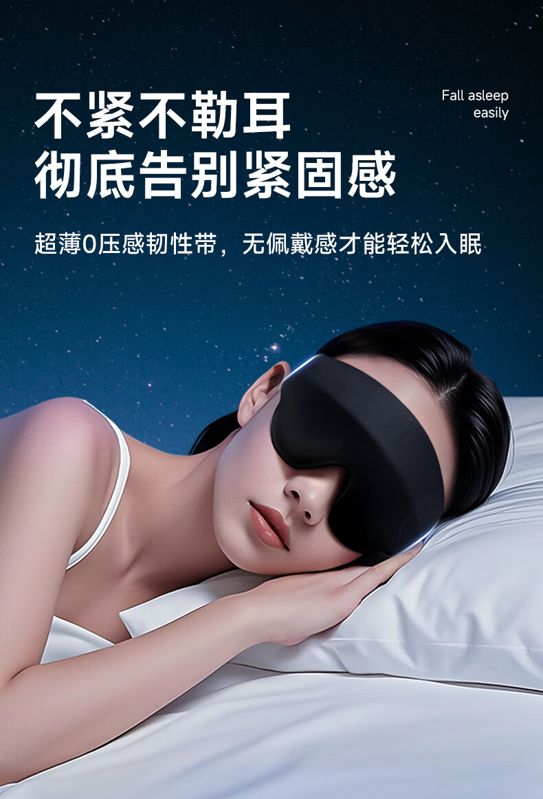 思莱宜眼罩 睡眠遮光睡觉真丝午休缓解眼疲劳0压感男女士成人宿舍专用黑