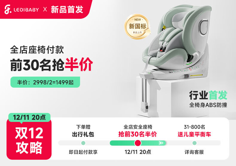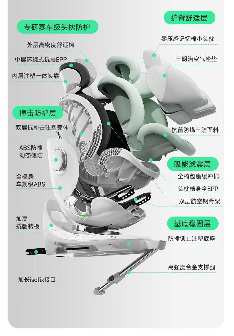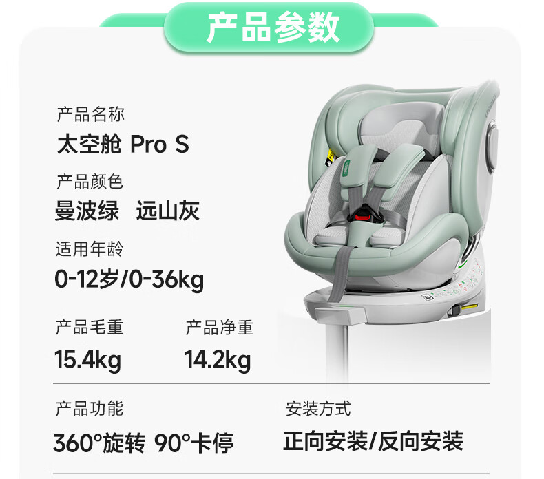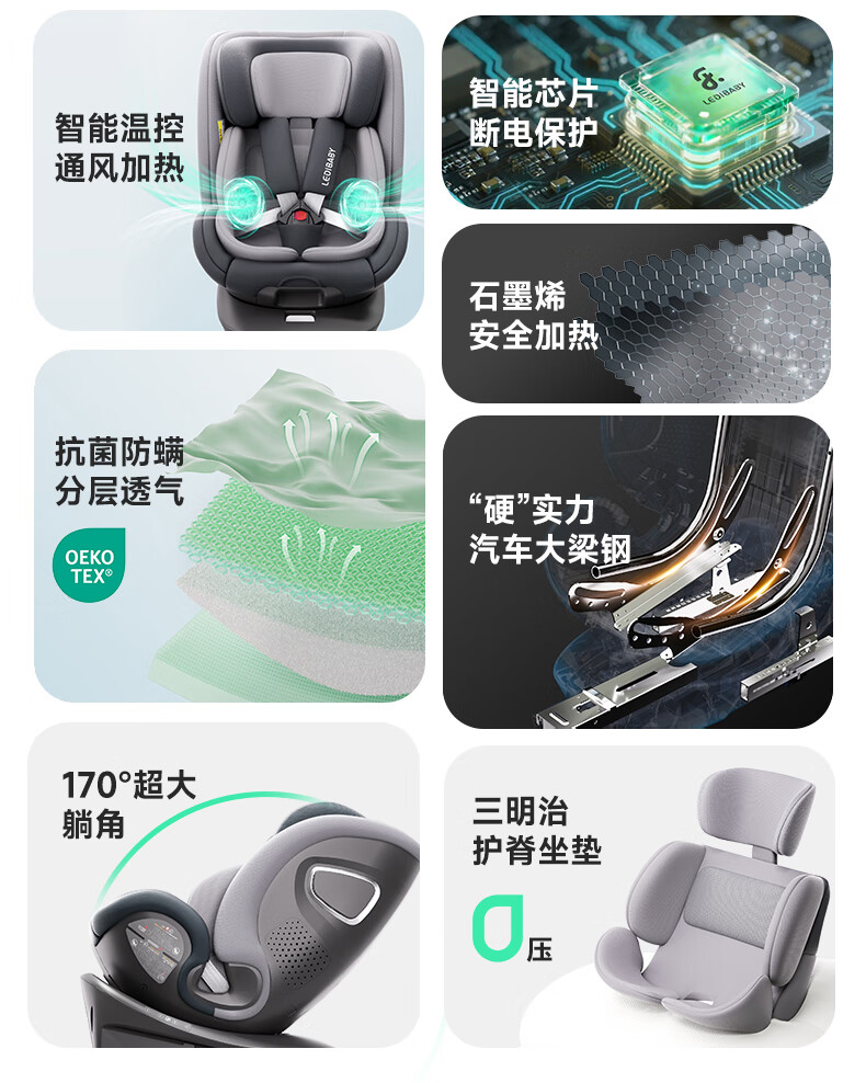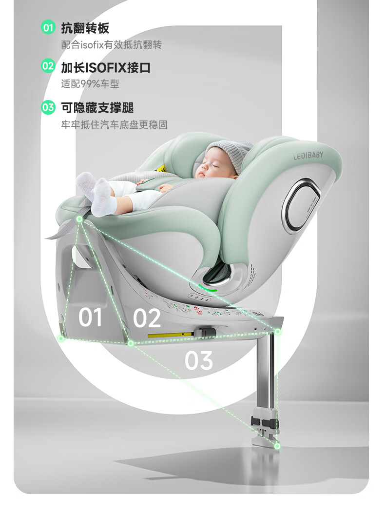 ledibaby乐蒂宝贝婴儿童安全座椅0-4-12岁汽车用宝宝座椅车载可坐躺 太空舱Pro+官配版【月影灰】