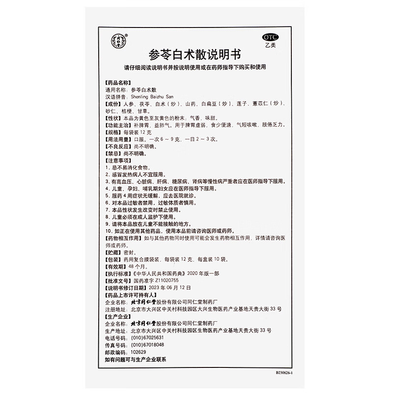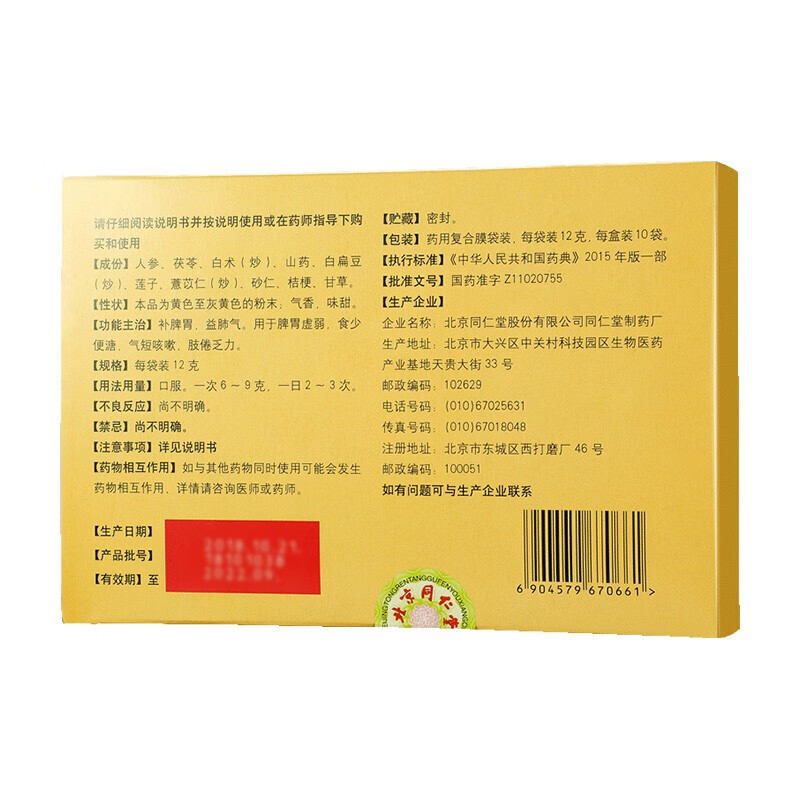 北京同仁堂参苓白术散12g*10袋*4盒参苓白术丸健脾胃颗粒健脾祛湿气脾胃虚弱补脾健胃食少便溏大肚子湿气重