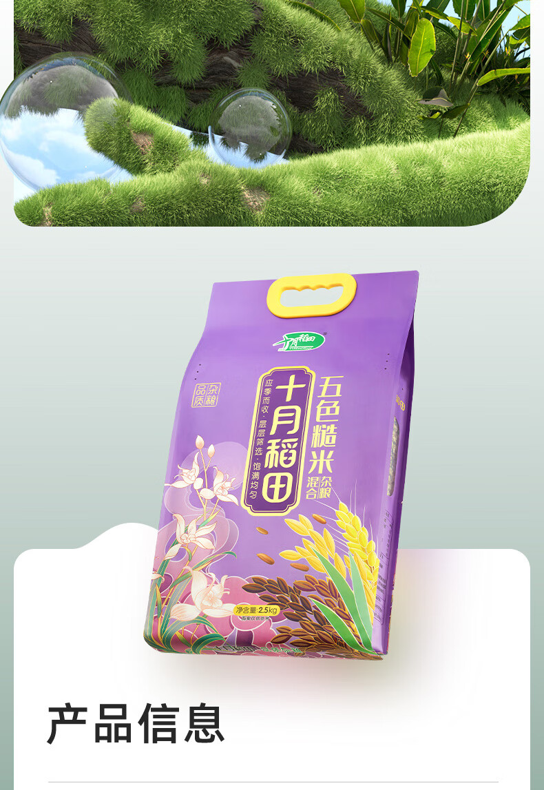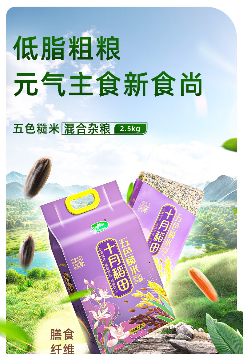 十月稻田 五色糙米2.5kg 东北杂粮糙米饭 黑米 红米 燕麦米 小麦仁 糙米 2.5kg*1袋 5斤