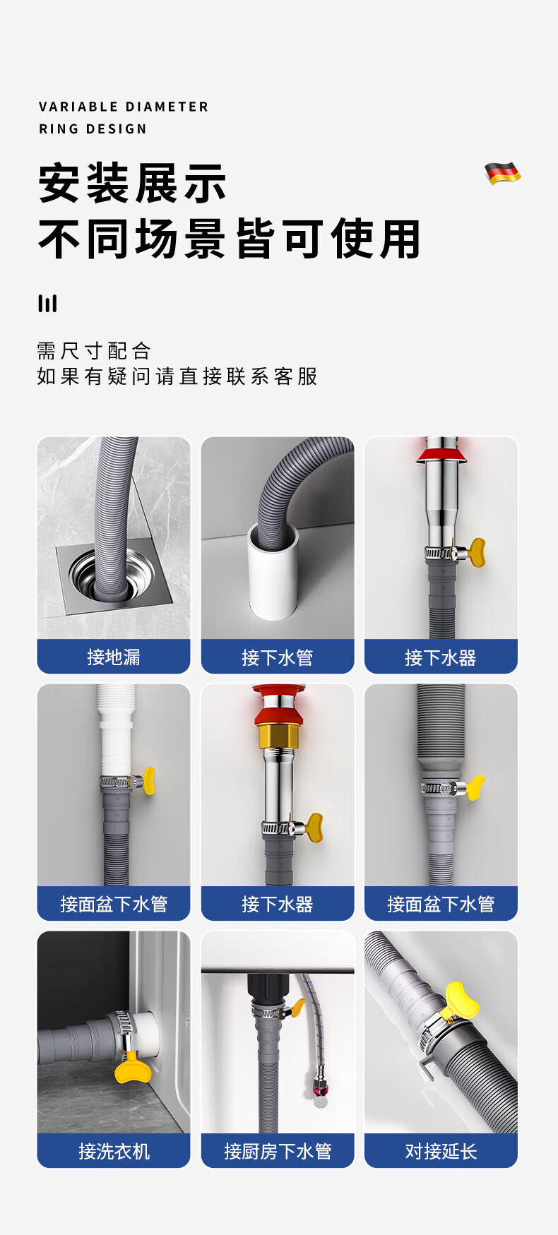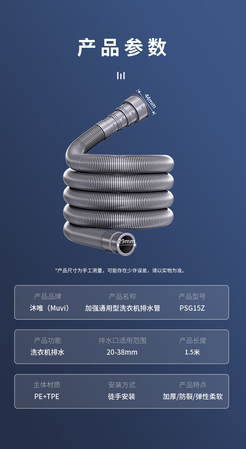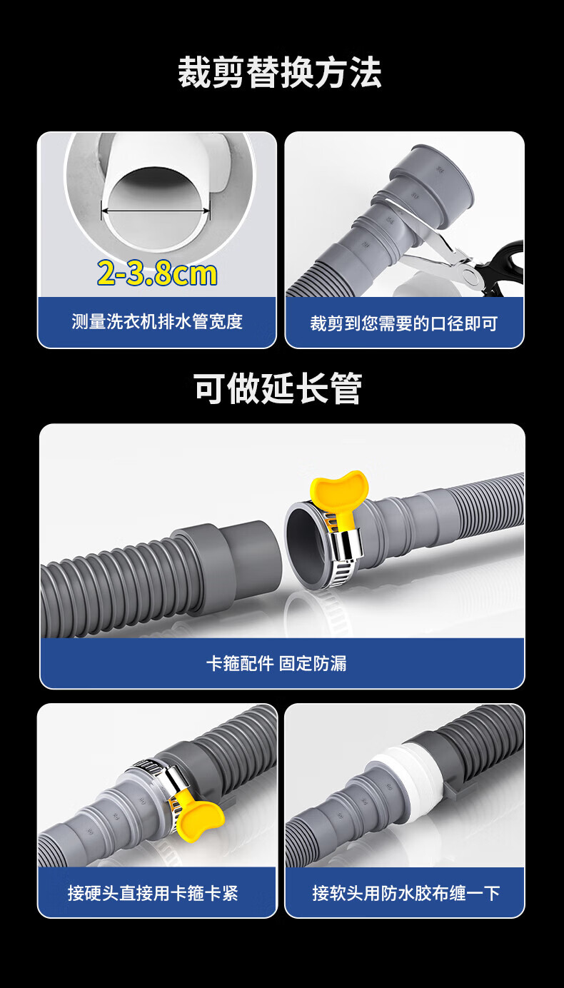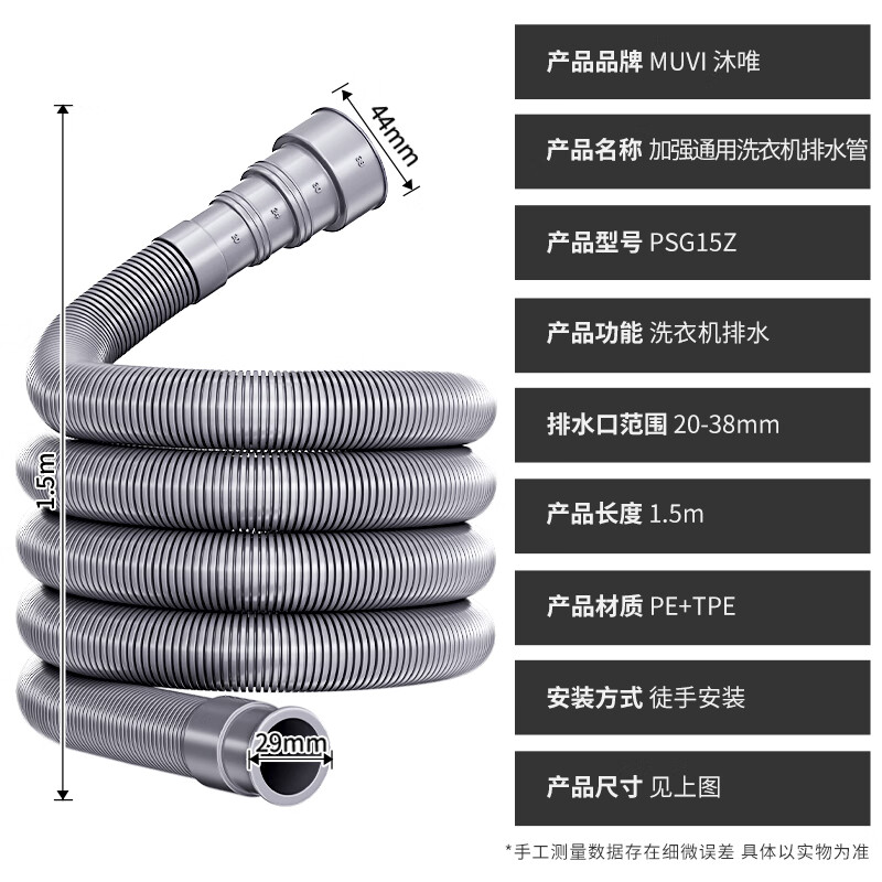 沐唯(muvi)洗衣机排水管延长管下出水软管加长全自动滚筒波轮1.5m通用PSG15Z