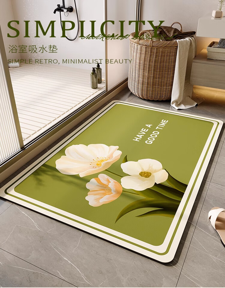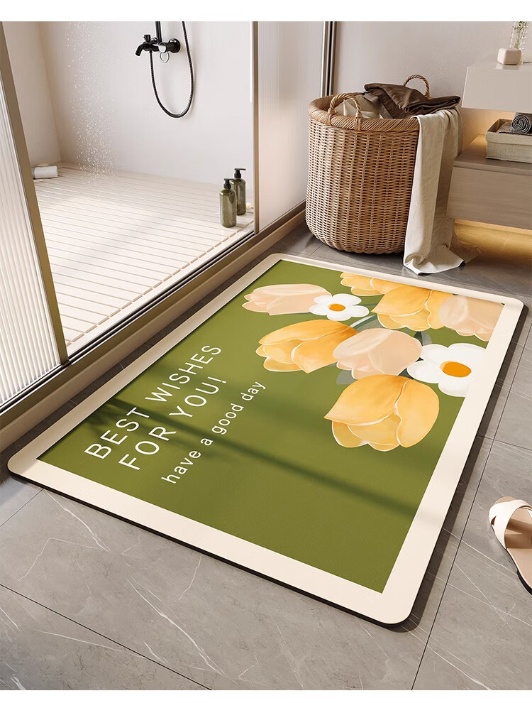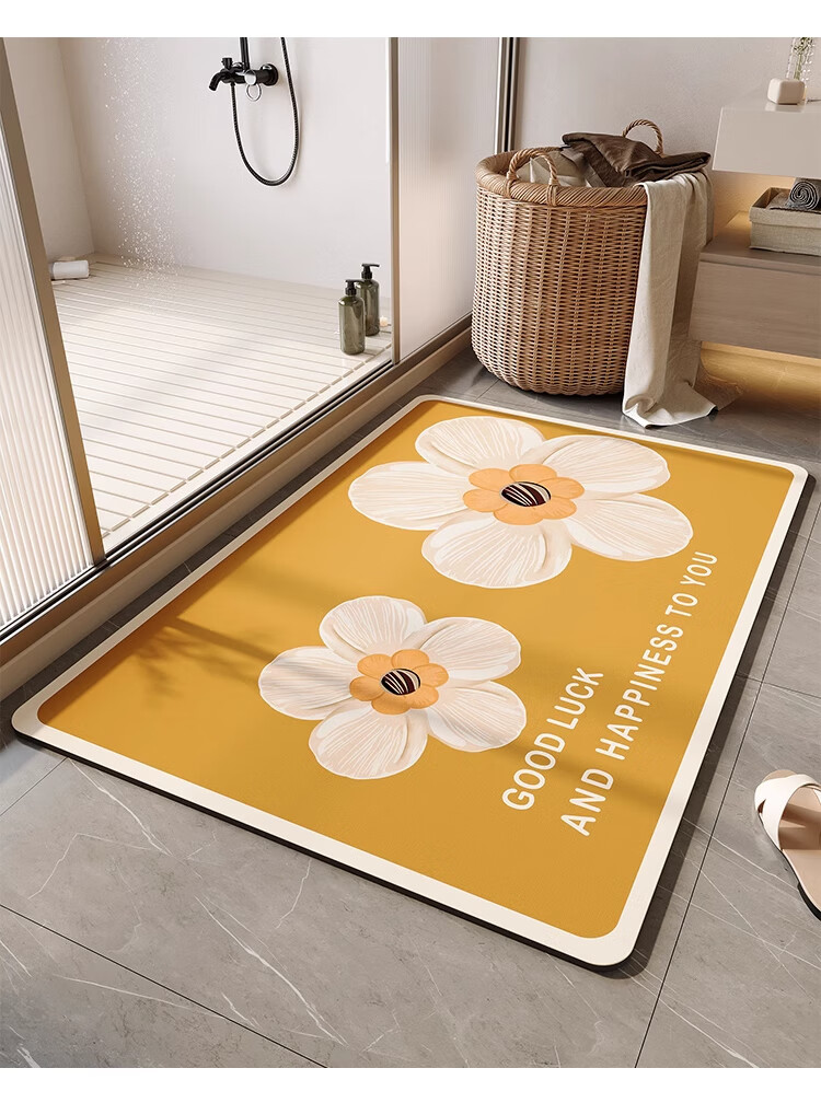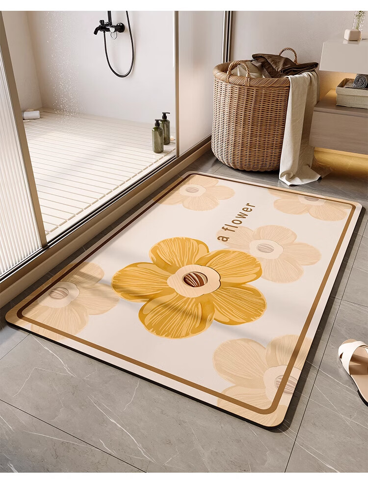 KAYE浴室地垫卫生间速干吸水防滑垫卫浴厕所门口脚垫家用厨房入户门垫 GZN-三花黄 40X60cm