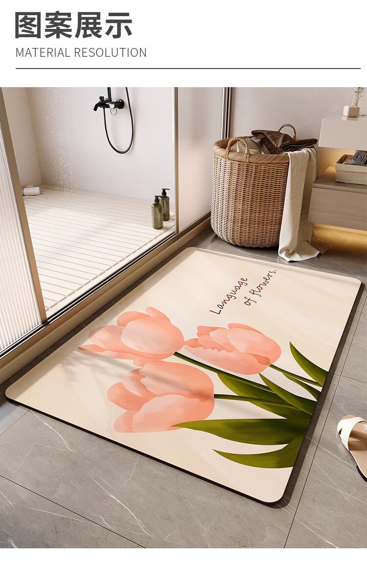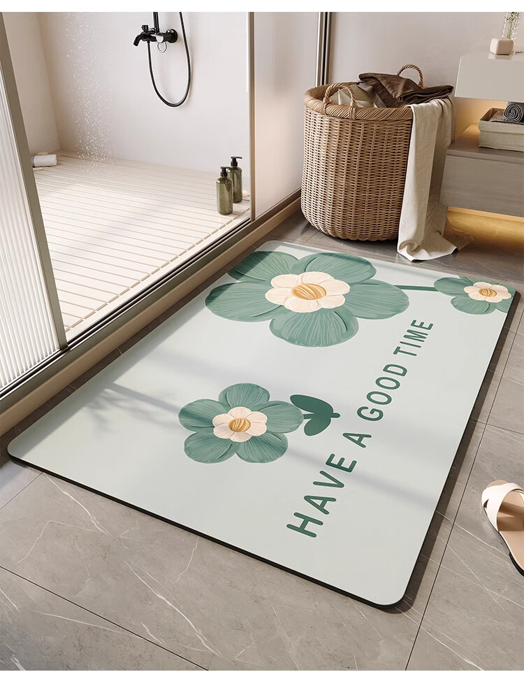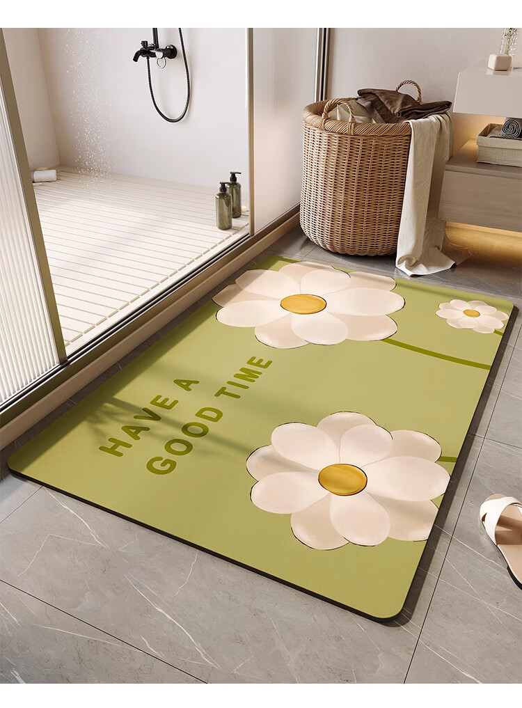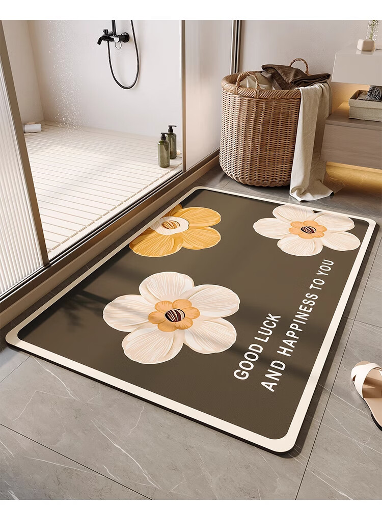 KAYE浴室地垫免洗卫浴吸水垫卫生间厕所门口防滑垫家用厨房入户门脚垫 GZN-3D幻境-黑色雏菊 40X60cm