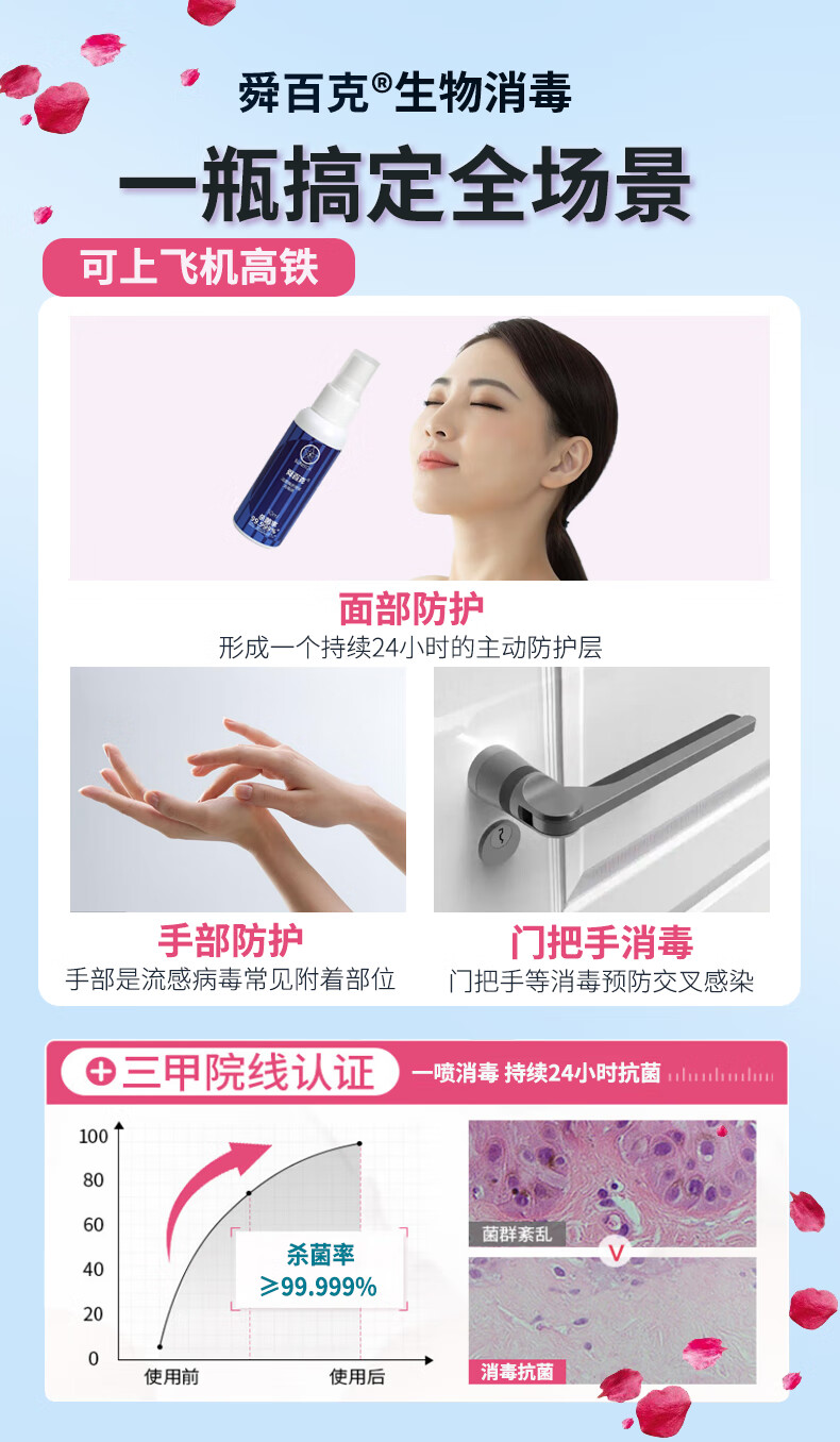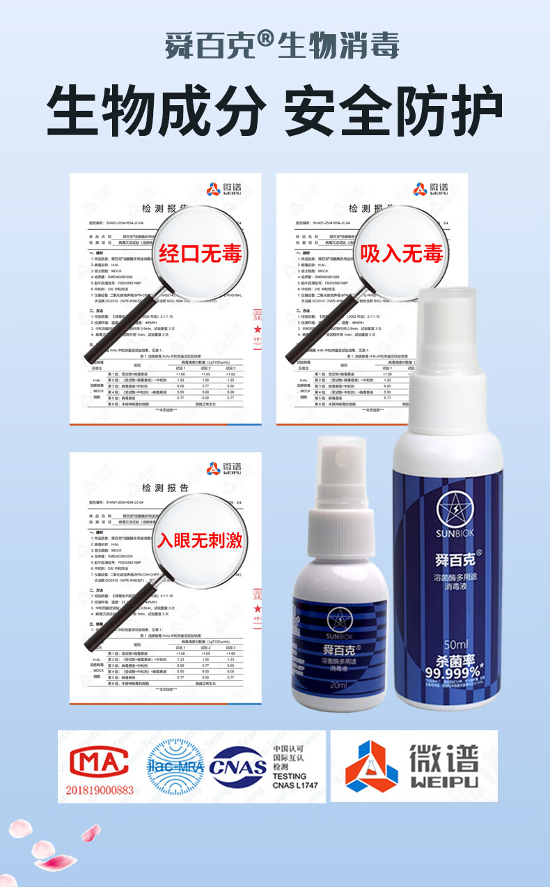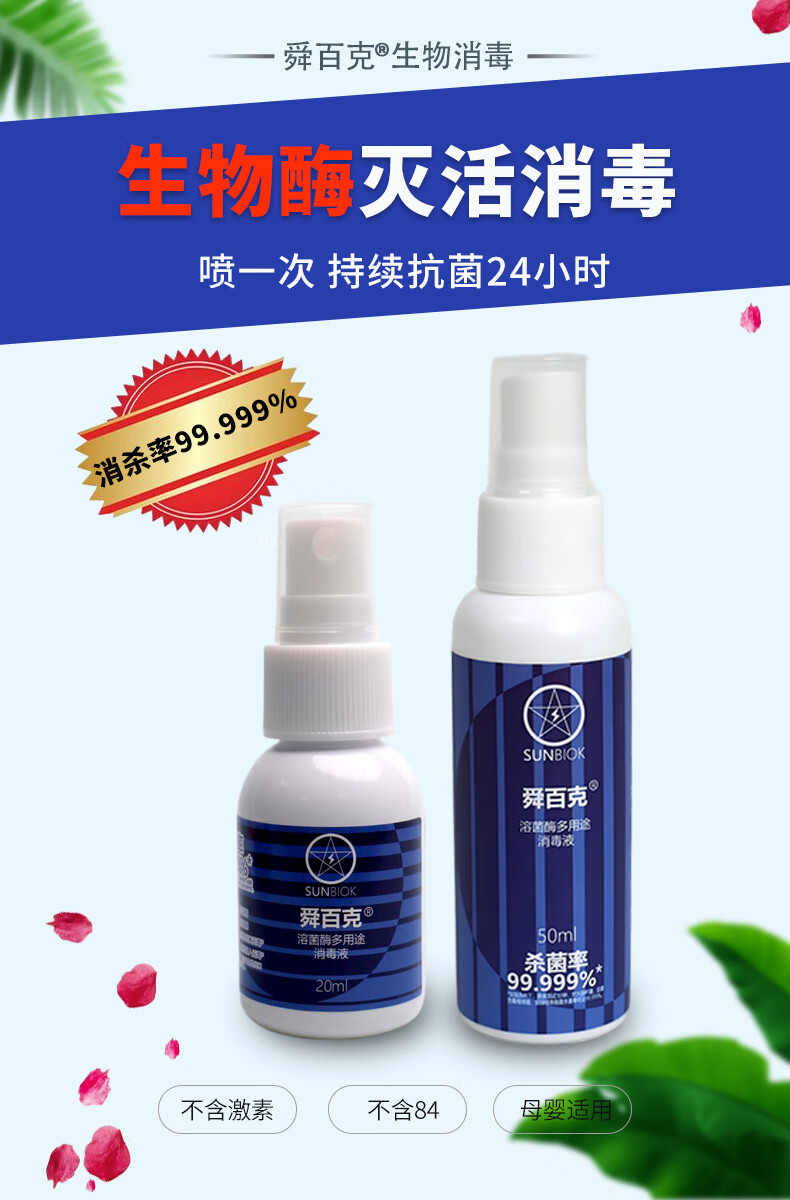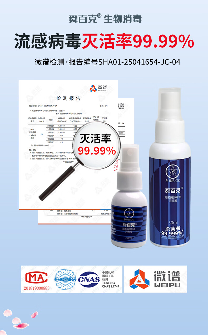 舜百克【长效24H】秋冬流感防护消毒喷雾济灭活H1N1甲流H3N2无色味母婴 试用装20ml(溶葡萄球菌酶)
