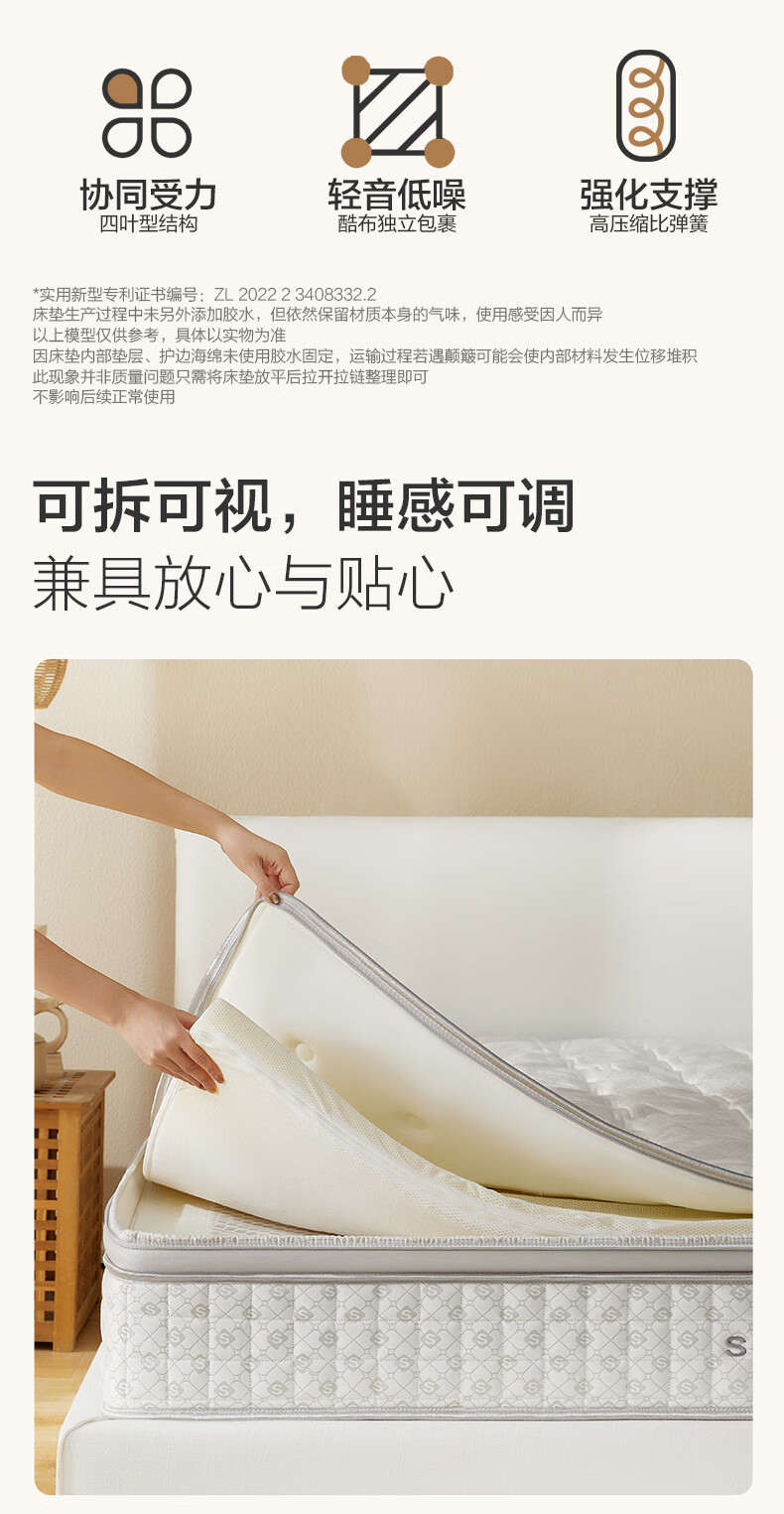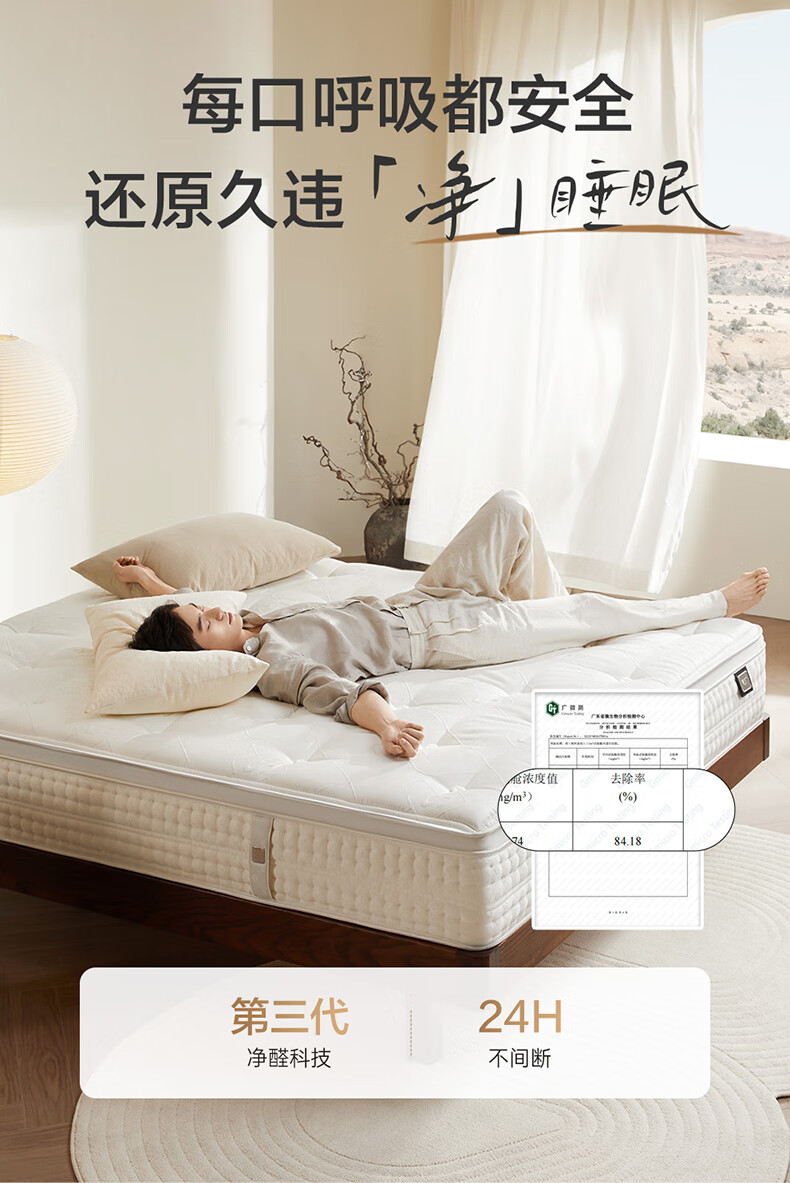 喜临门净眠乳胶床垫轻音独袋弹簧羊毛除甲醛床垫 电动床垫温控 净眠系列 M60【除甲醛/整垫0胶/软硬可调】 1.8*2米(指定款式闪送)