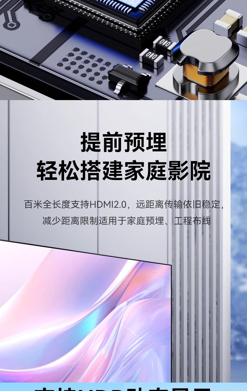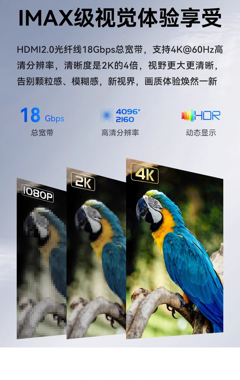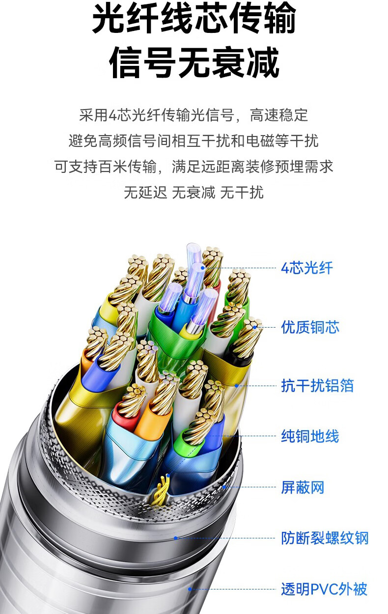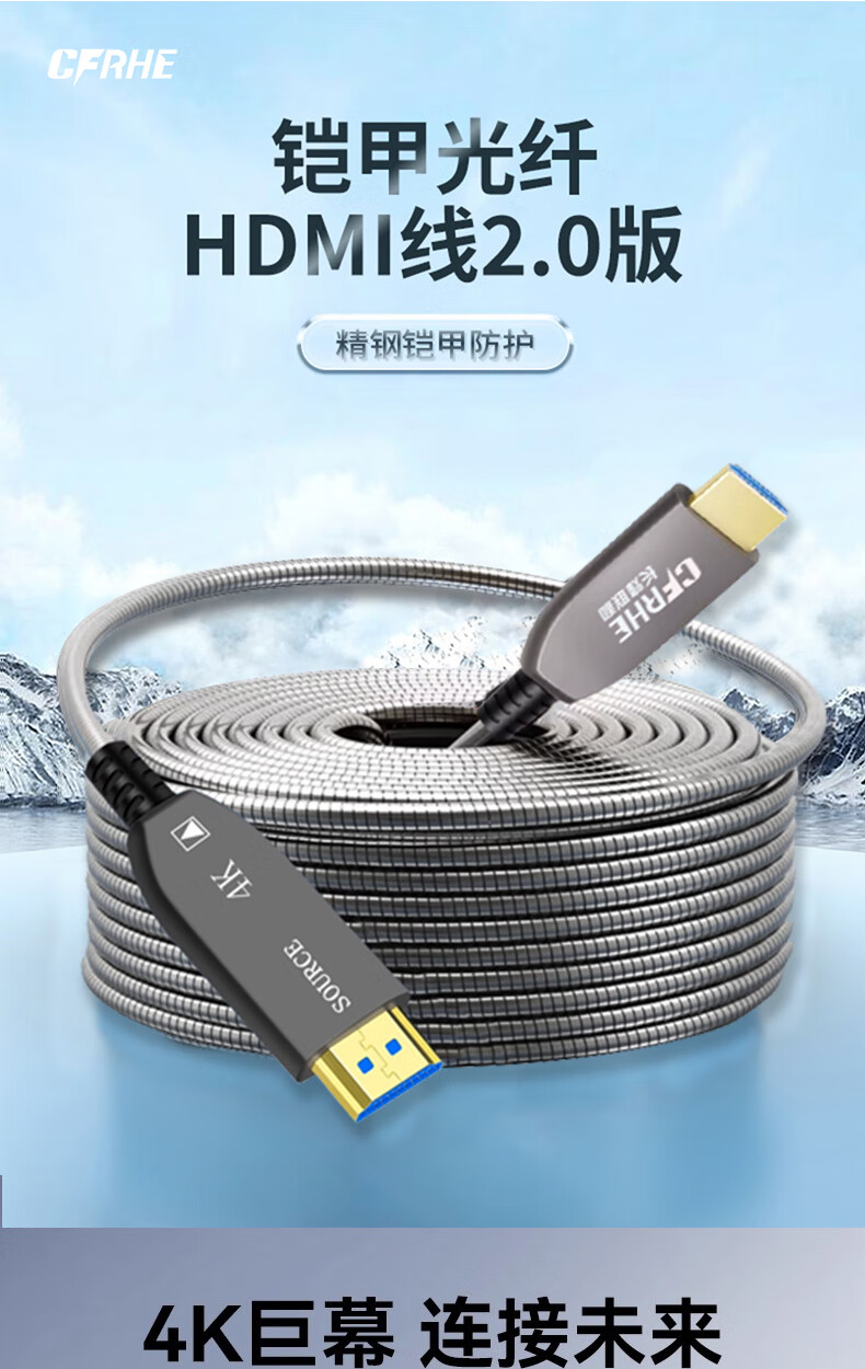 CFRHE 长烽联和铠装光纤HDMI线 4K60Hz 2.0版发烧级高清线电脑电视投影IMAX家庭影院数字3D 工程级铠装光纤HDMI2.0版 50米
