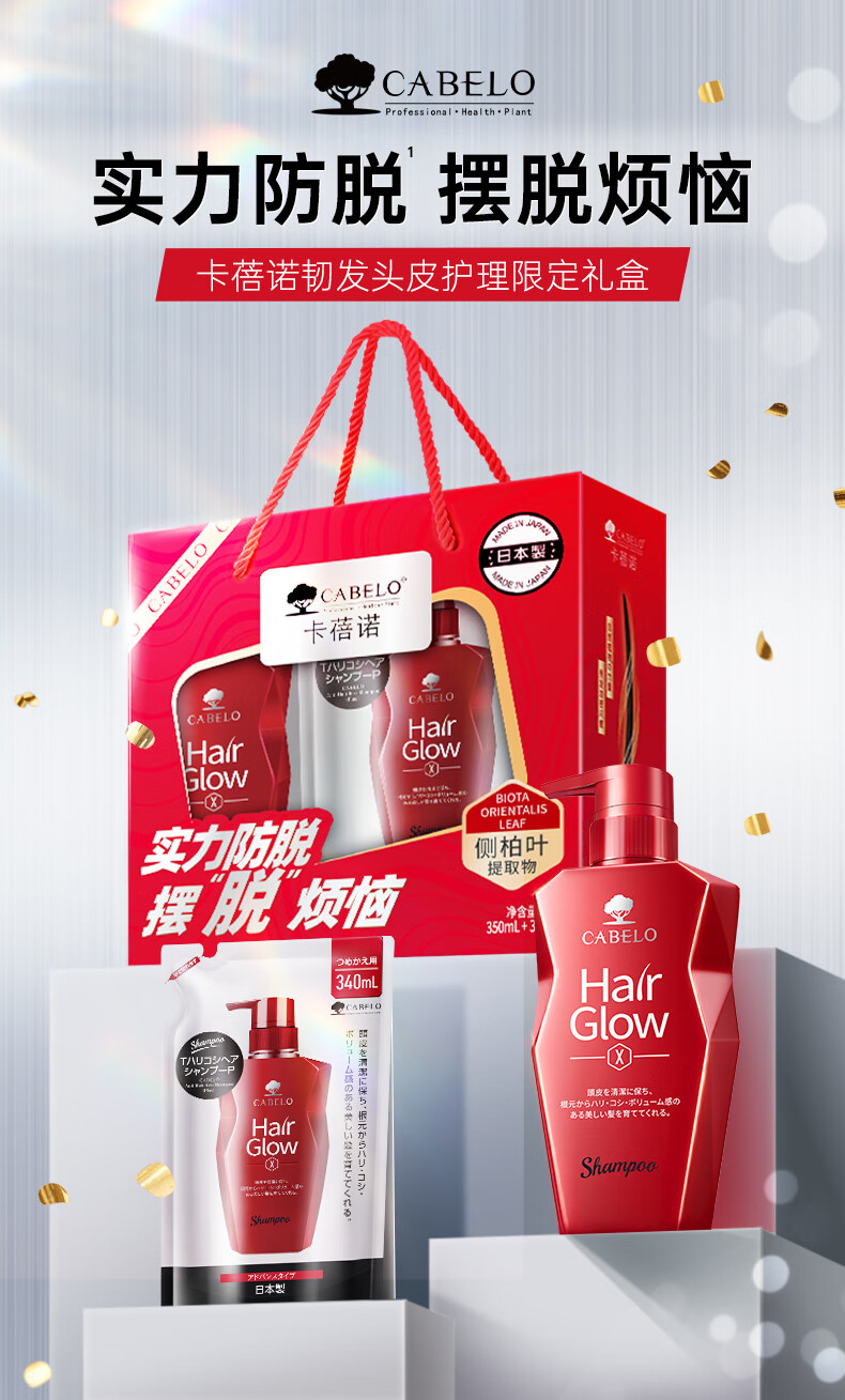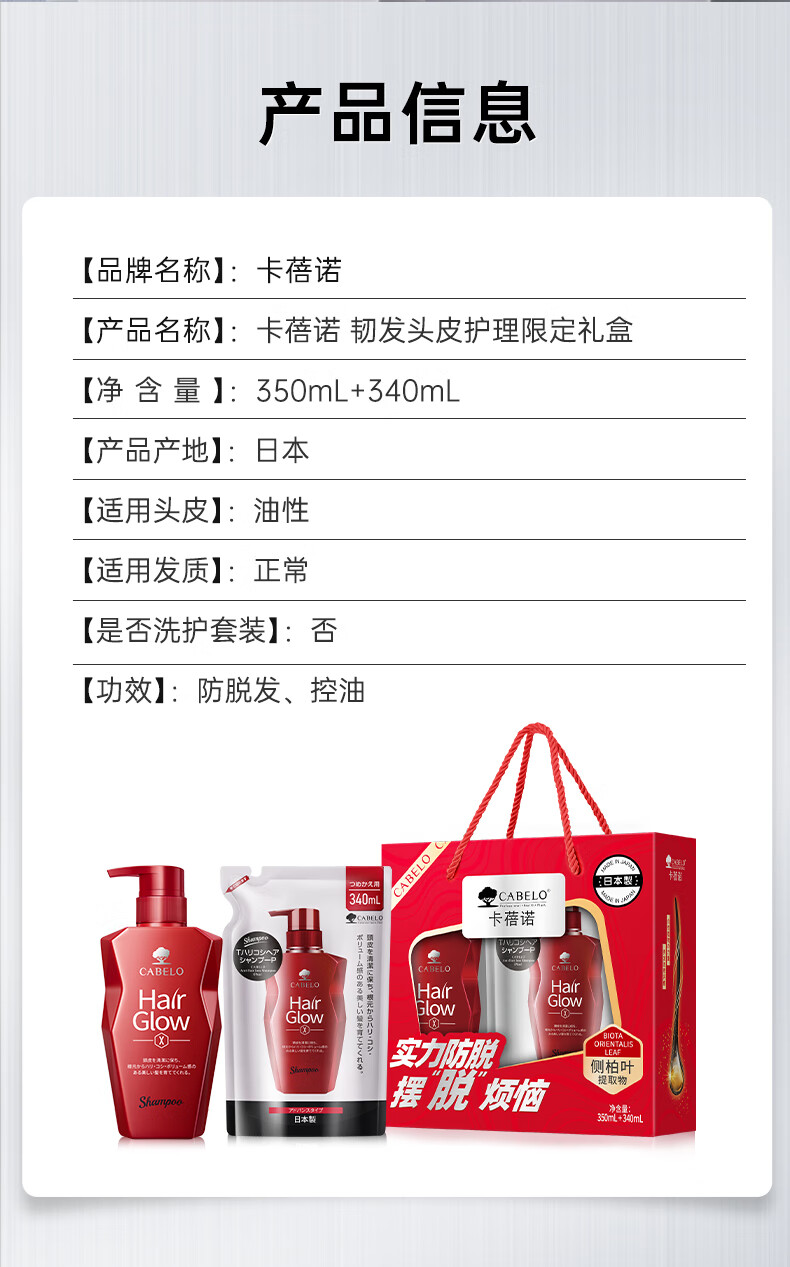 卡蓓诺(CABELO)防脱洗发水加强型深层焕活头皮掉发发量稀少适用【日本原装进口】 【育发加强型】无硅油配方 强健发根 洗发水 350ml*1瓶