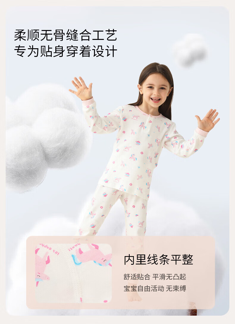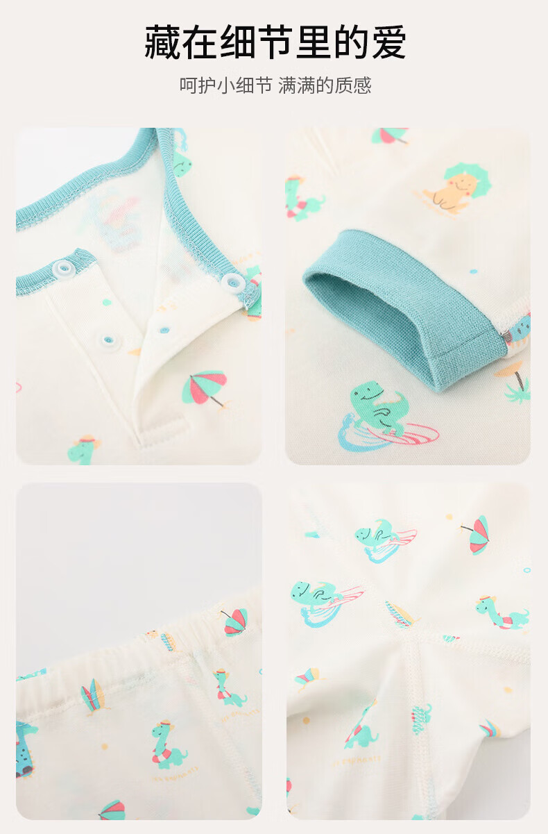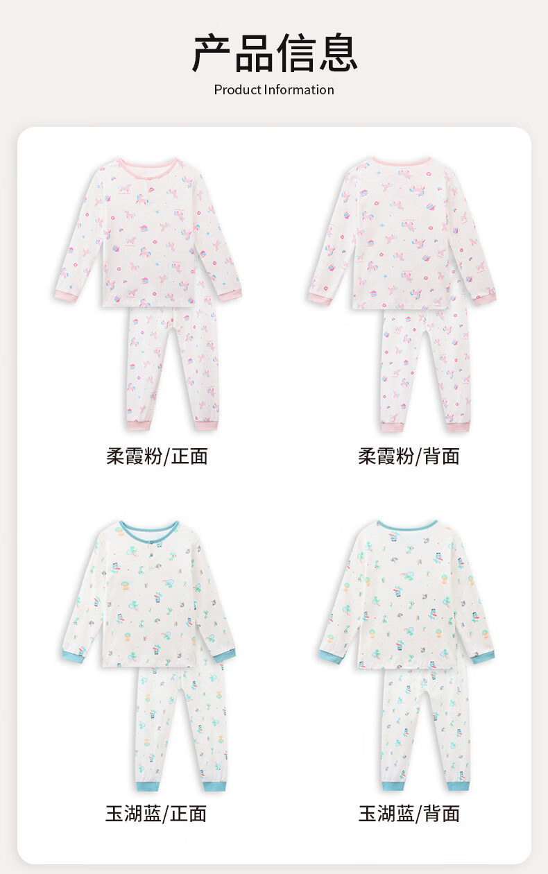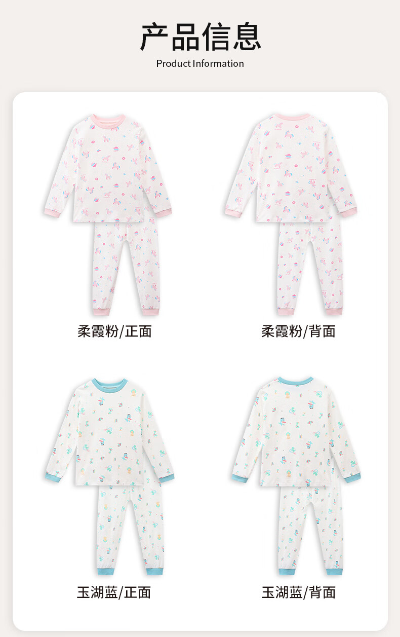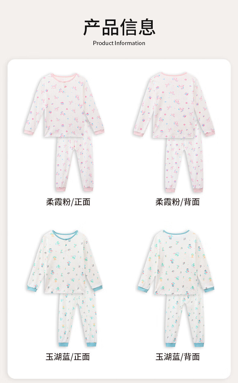 丽婴房【全棉】儿童睡衣儿童纯棉内衣套装男童女童睡衣家居服秋衣秋裤秋 【秋冬款】玉湖蓝-半高领-100%棉A类 100 cm