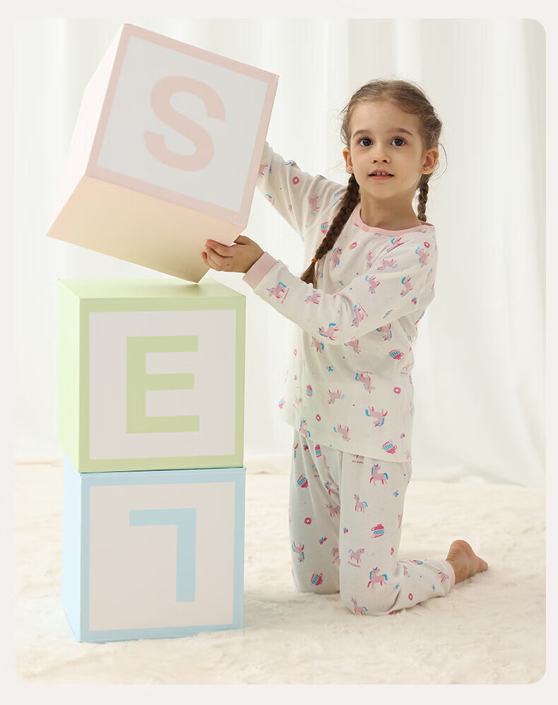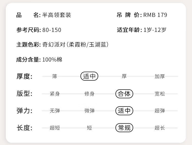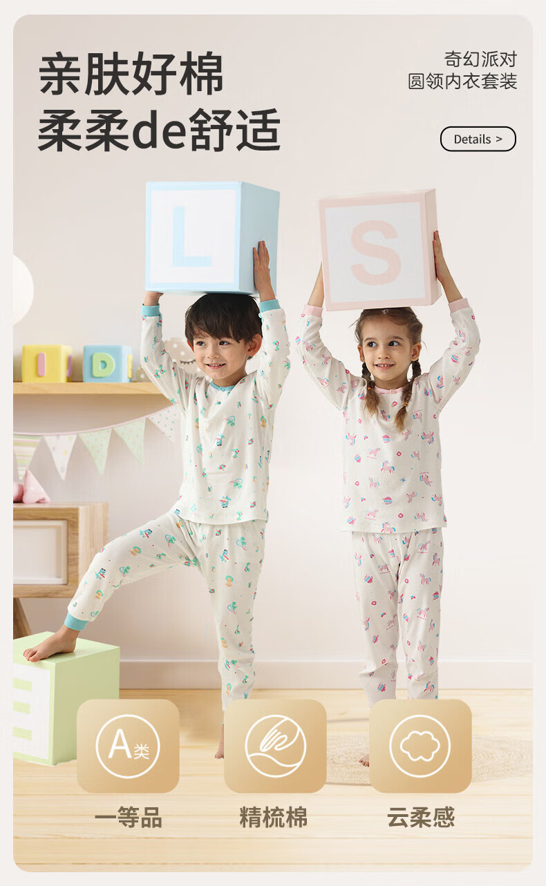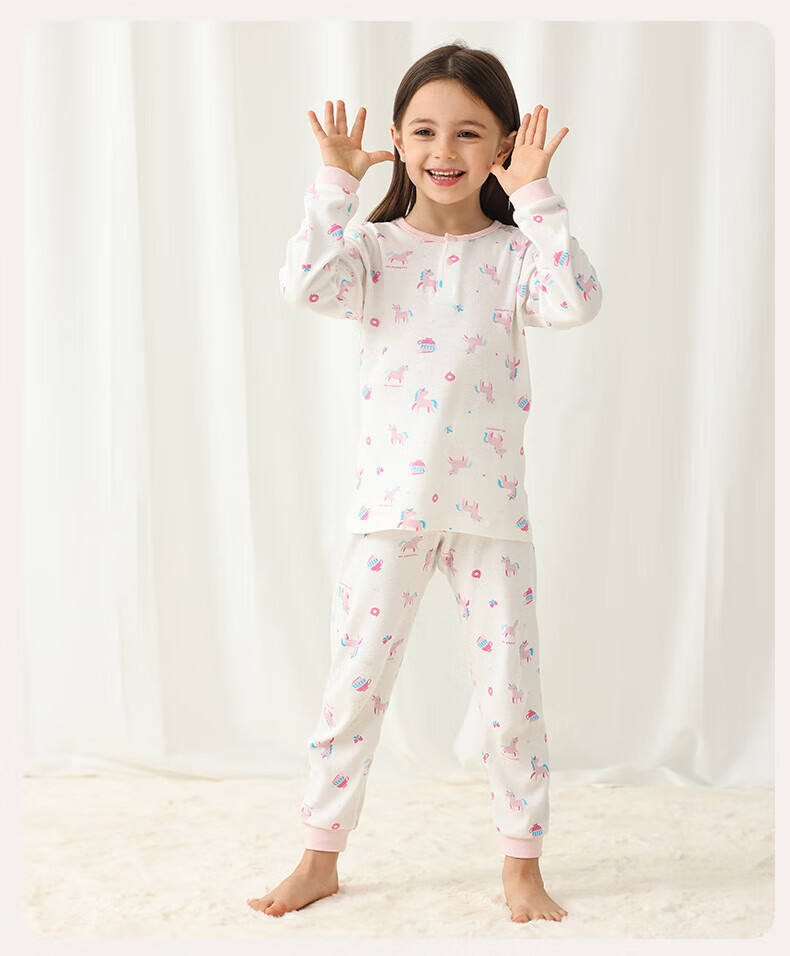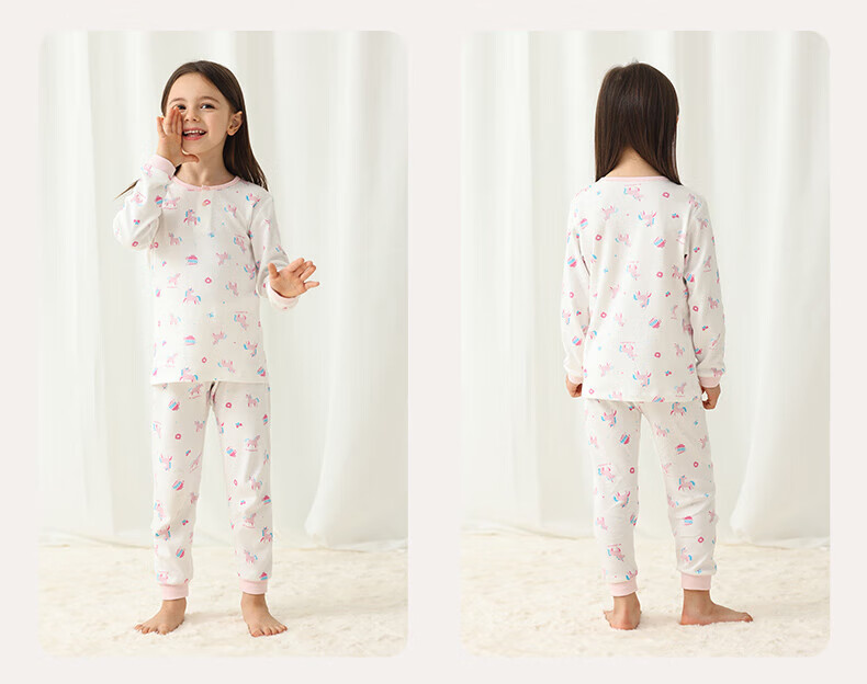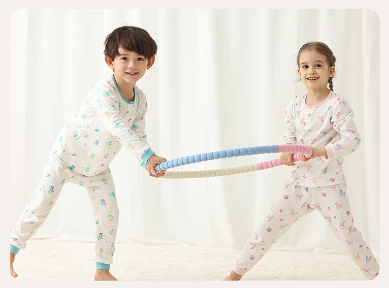 丽婴房【全棉】儿童睡衣儿童纯棉内衣套装男童女童睡衣家居服秋衣秋裤秋 【秋冬款】玉湖蓝-半高领-100%棉A类 100 cm
