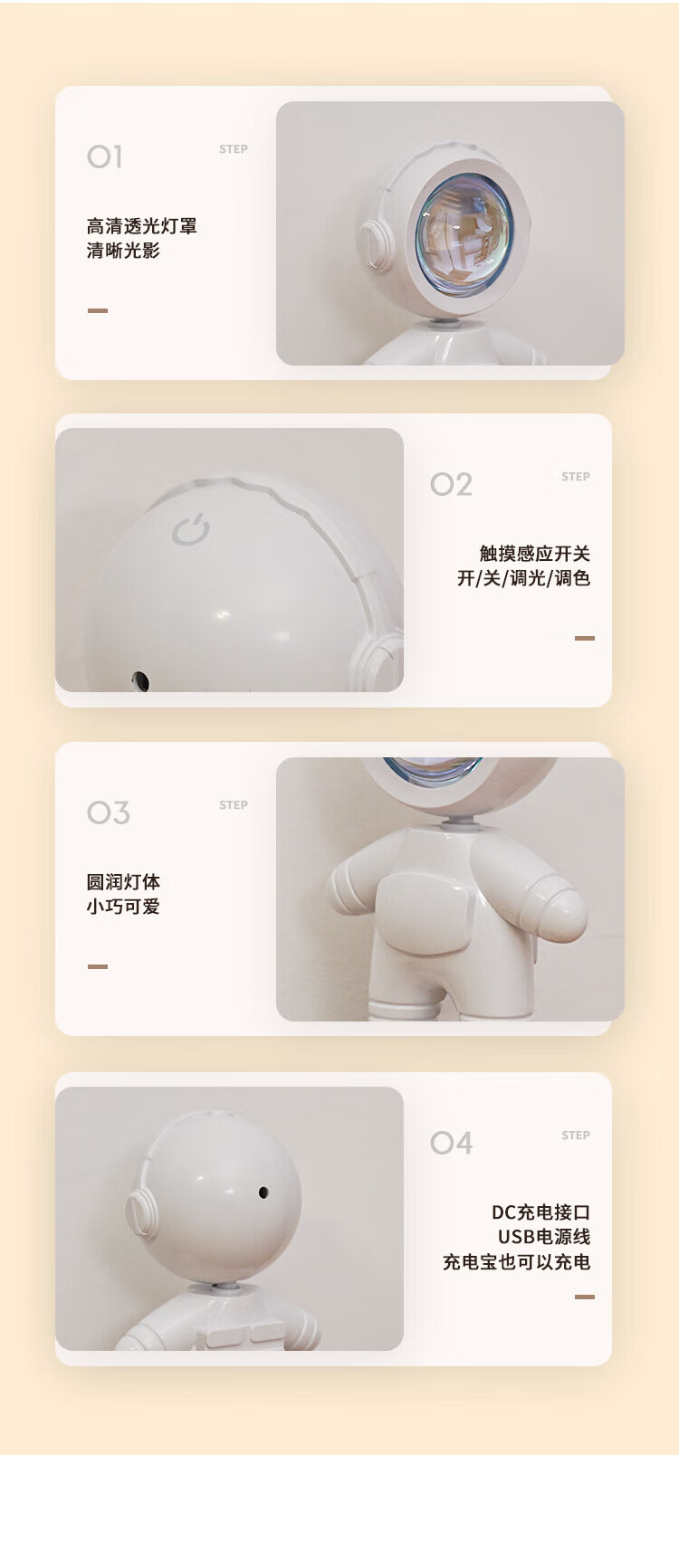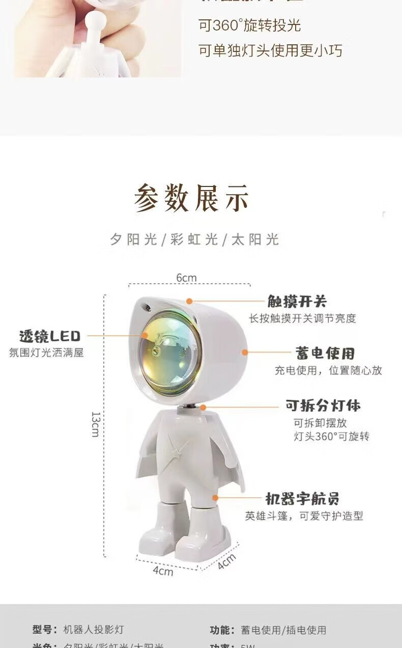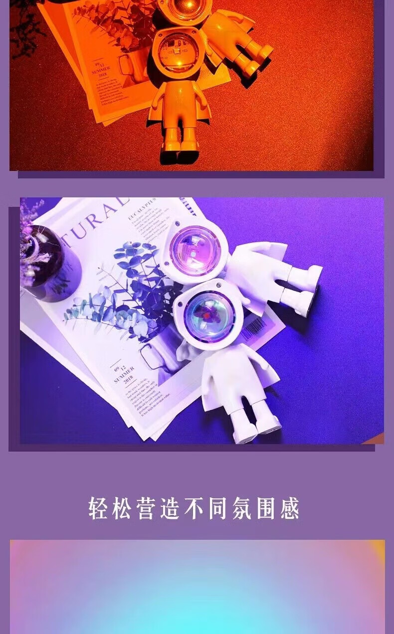 OUMIRO插电小夜灯氛围灯卧室床头客厅书桌创意投影灯落地打光情调宇航员 插电新款