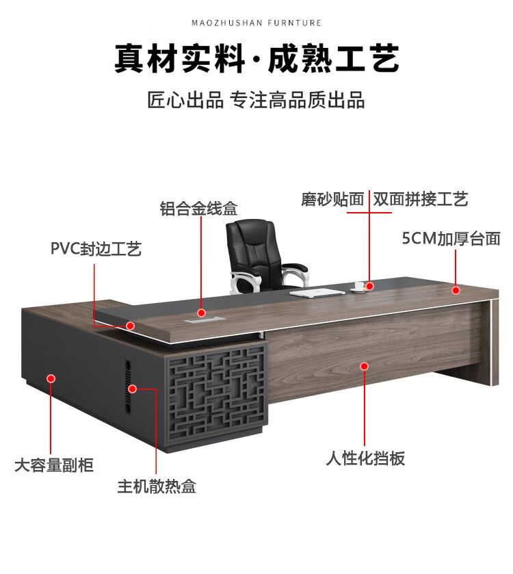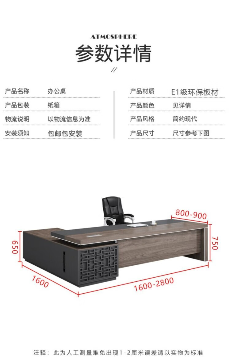 弘星隆办公桌董事长工作室办公桌厂家直销单人转角办公桌组合式办公桌椅 1.6米老板桌