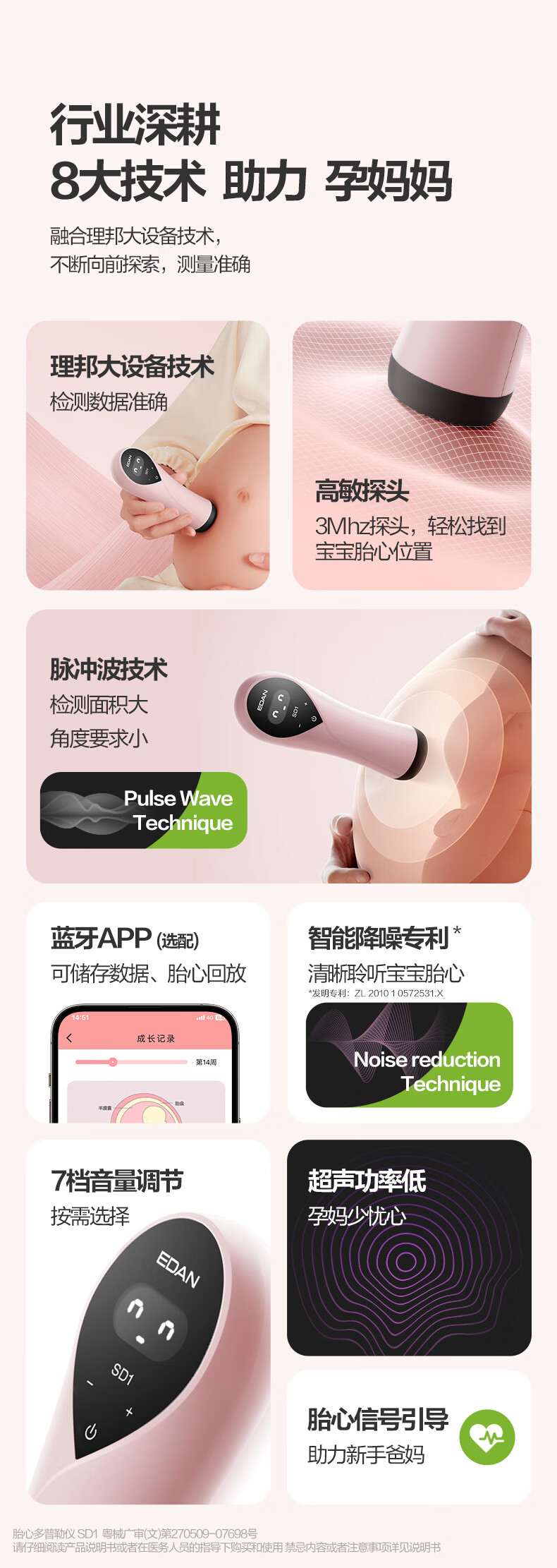 理邦仪器理邦胎心仪医用多普勒胎心监测仪院线同款孕妇家用检测仪胎心监护 SD1京东仓直发【自研医用胎心专利算法】