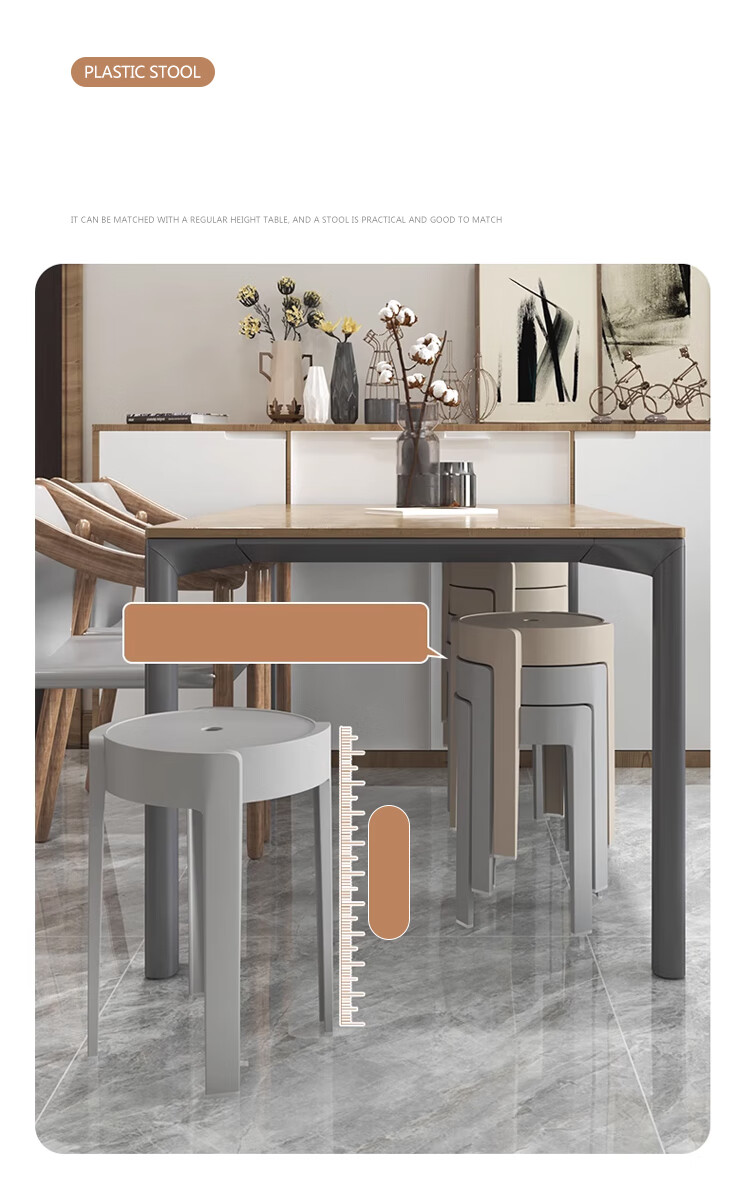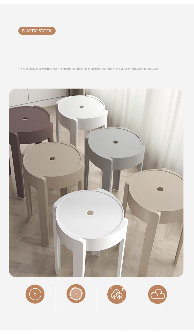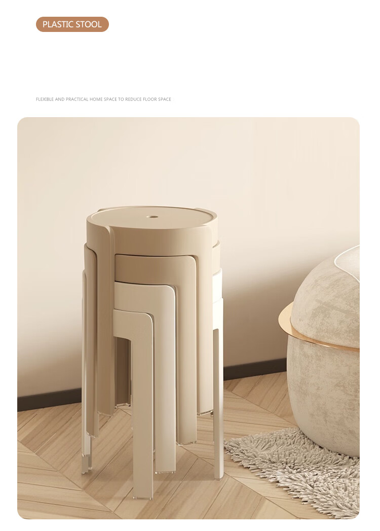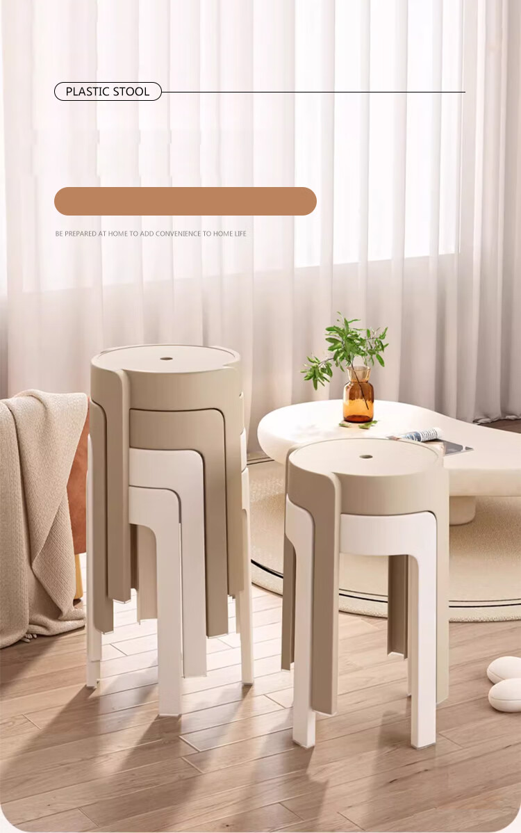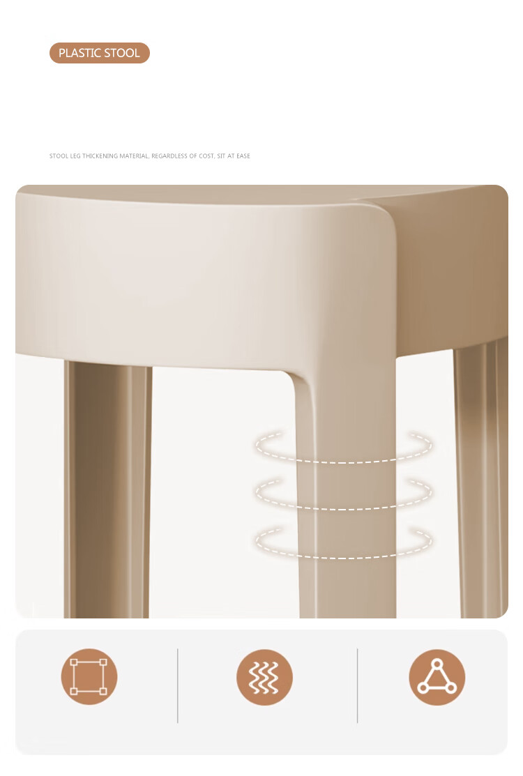 华恺之星凳子家用塑料凳加厚圆凳高凳板凳餐椅餐凳可叠放凳YK081驼2白2