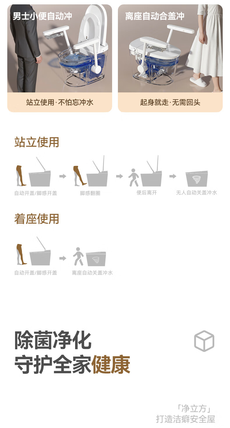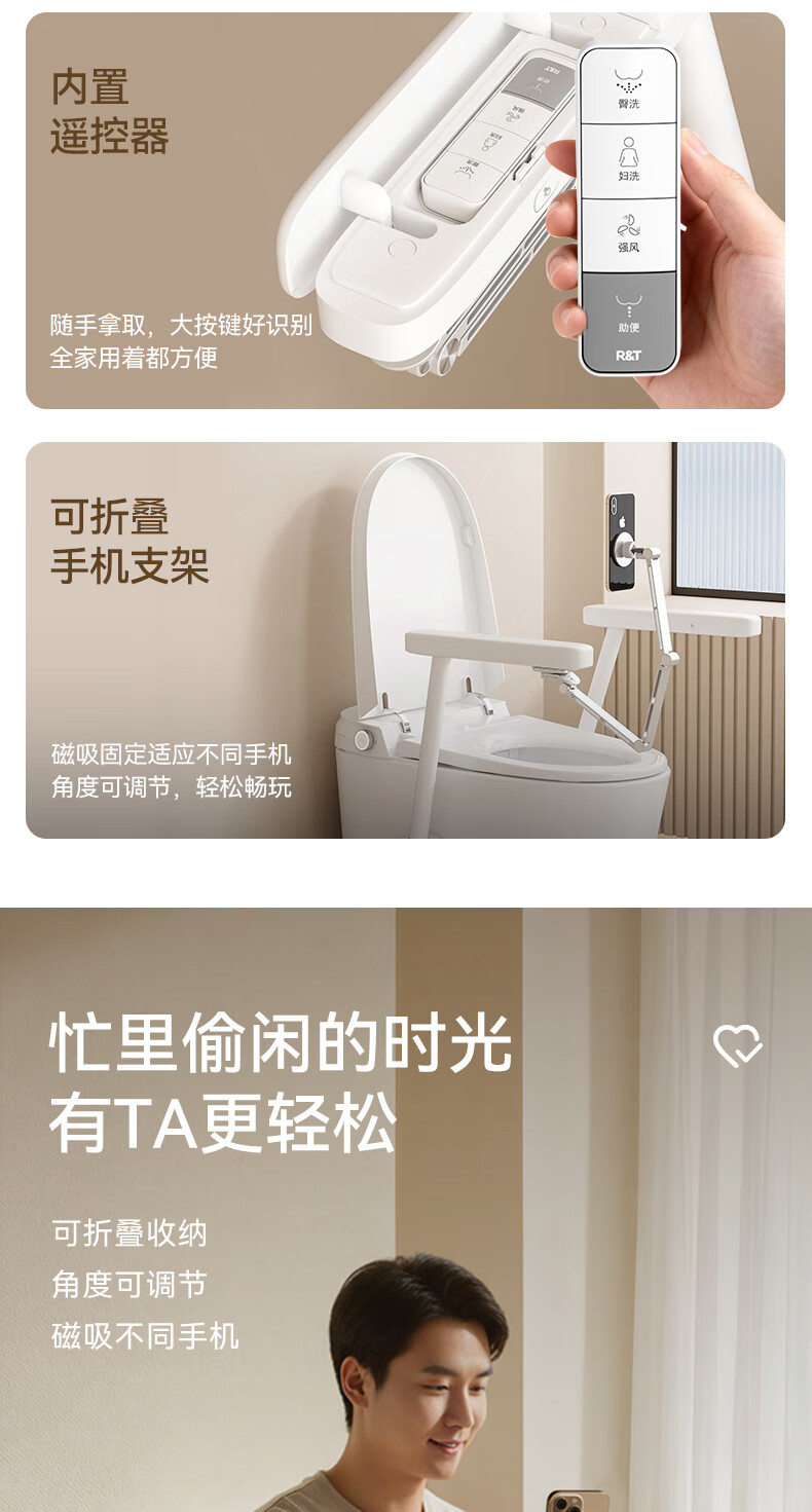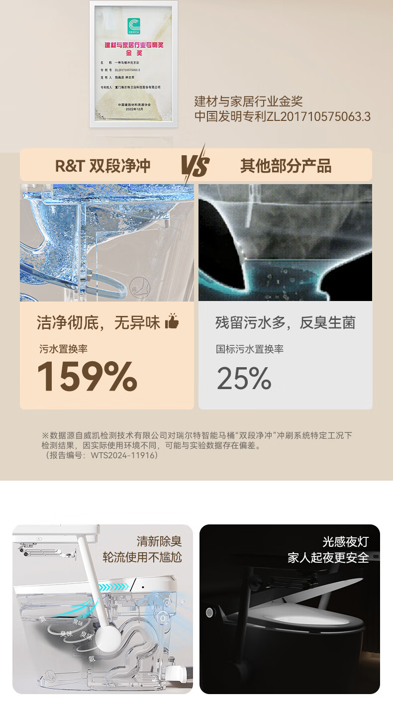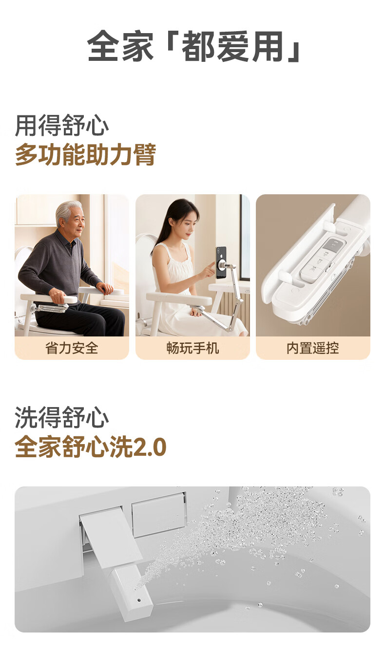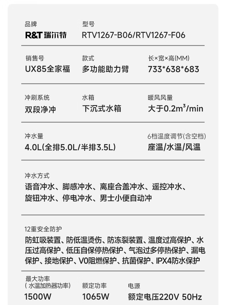 瑞尔特(R&T)智能马桶适老带扶手自翻泡沫盾杀菌语音AI自清洁UX85全家福-305
