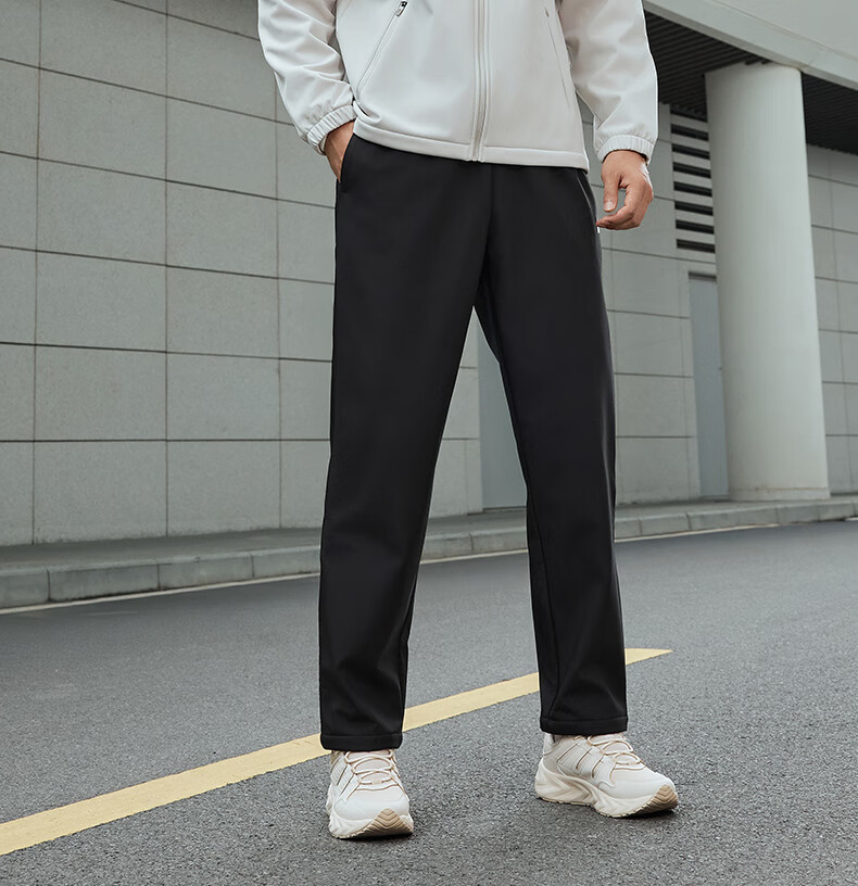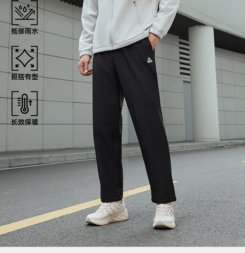匹克针织运动裤男冬季跑步加绒梭织长裤休闲裤运动服男直筒裤束脚裤子 【秋冬加绒直筒裤4011】黑色 XL (180)