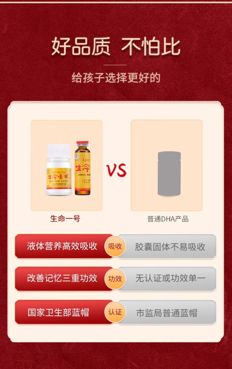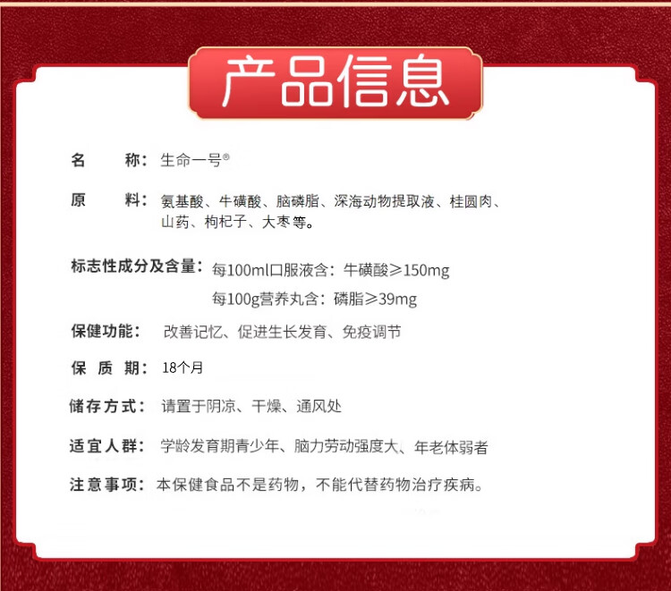 生命一号 改善记忆力口服液 促进生长发育 学生青少年学习考试大脑营养品 【改善记忆力】30支口服液+120粒营养丸