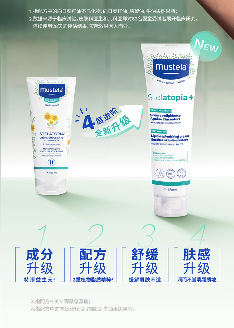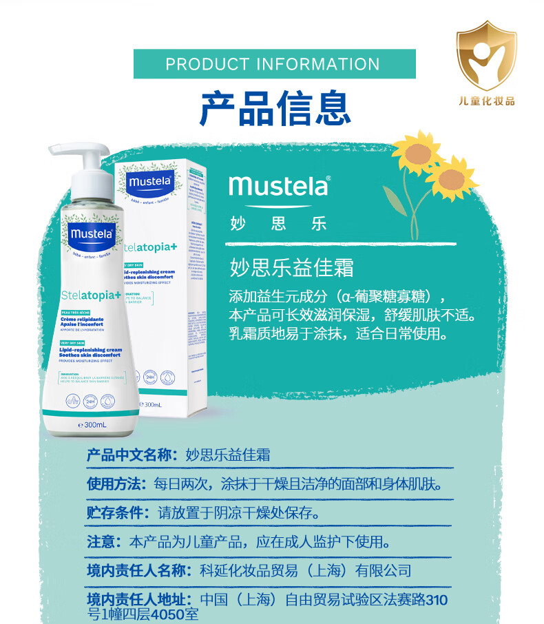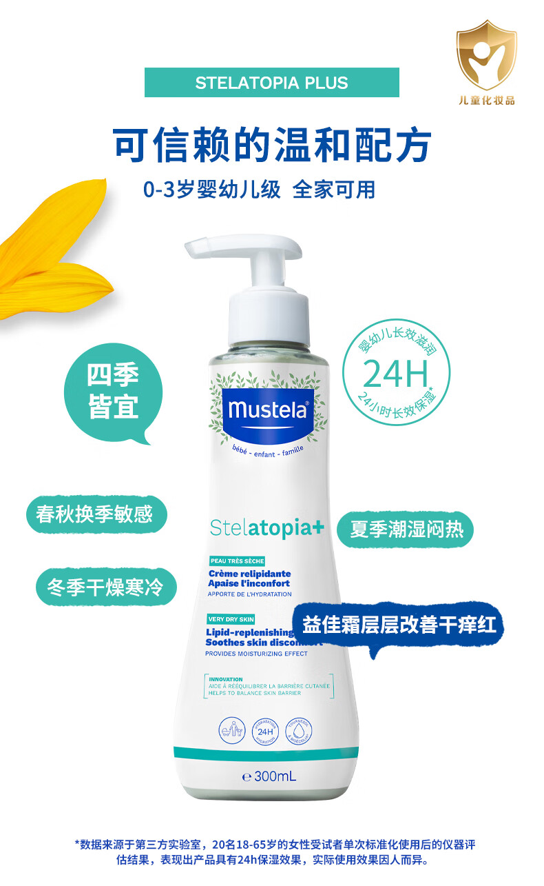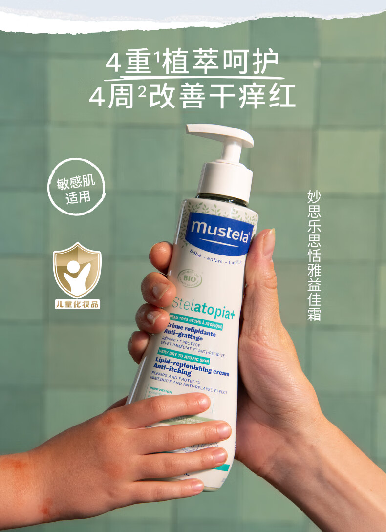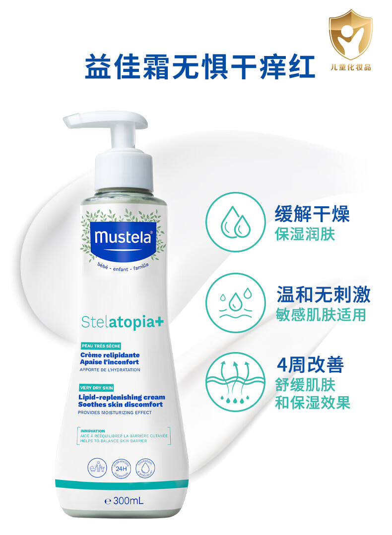 妙思乐(MUSTELA)儿童思恬雅益佳霜300ml 秋冬舒缓干痒红婴儿保湿面霜身体乳