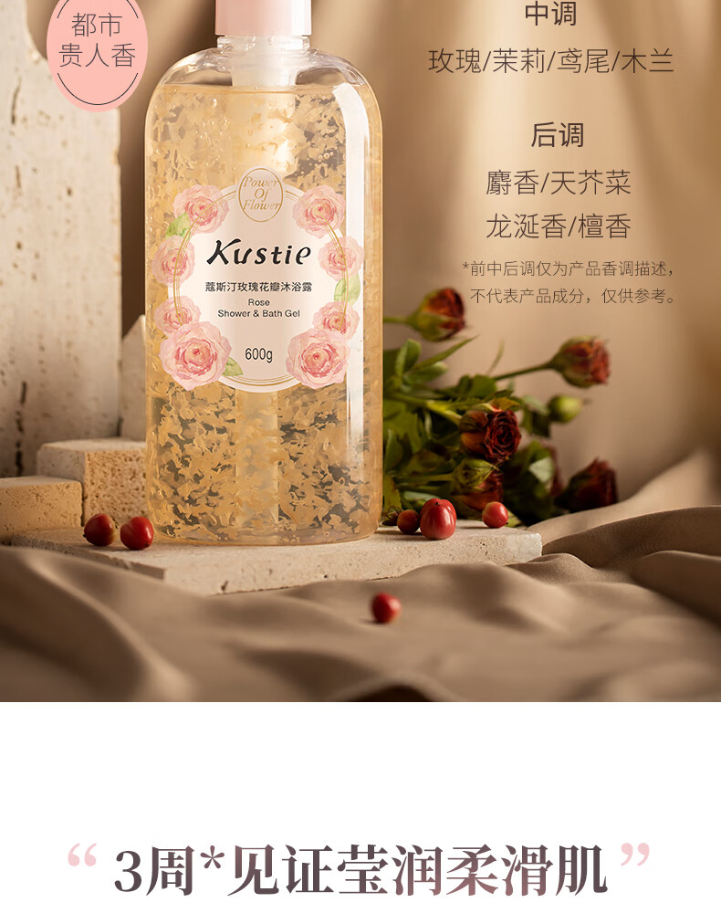 蔻斯汀【戚薇同款】玫瑰花瓣沐浴露600g 香氛沐浴持久留香泡沫丰富