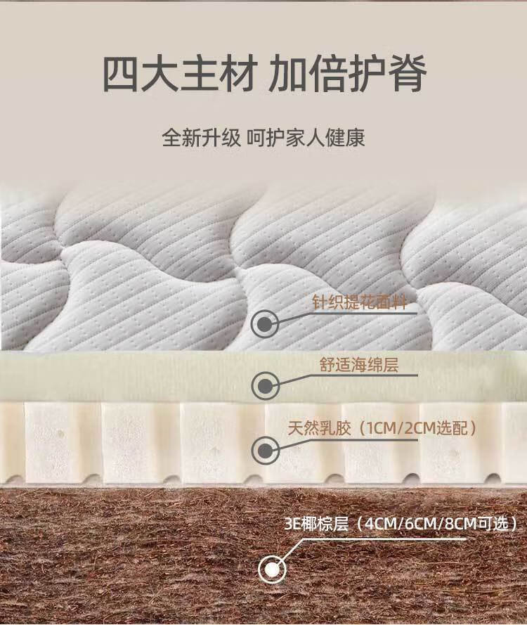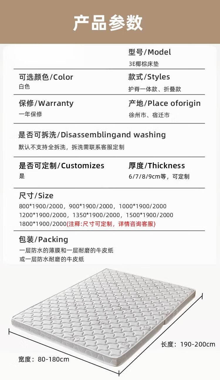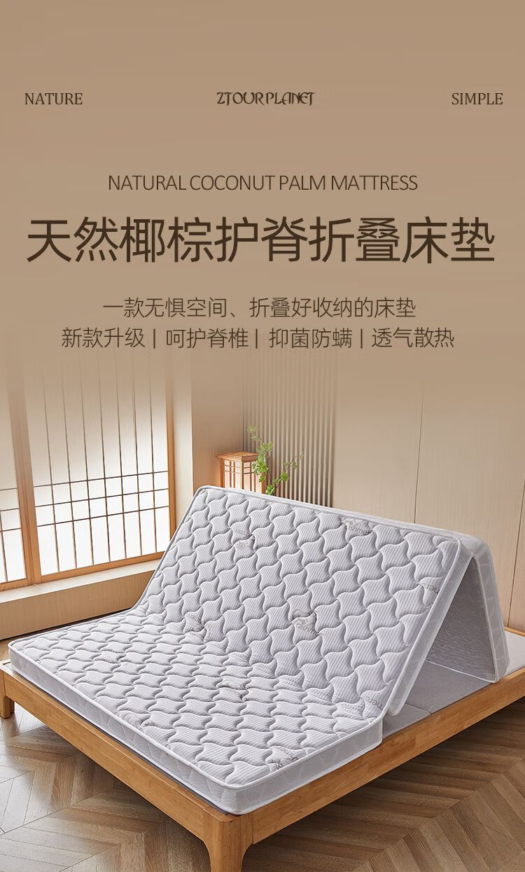 迈途森天然椰棕床垫可折叠家用护脊棕榈乳胶儿童棕垫定制加厚榻榻米垫子 12cm羊驼提花/三折叠(2公分乳胶) 1800mm*1900mm