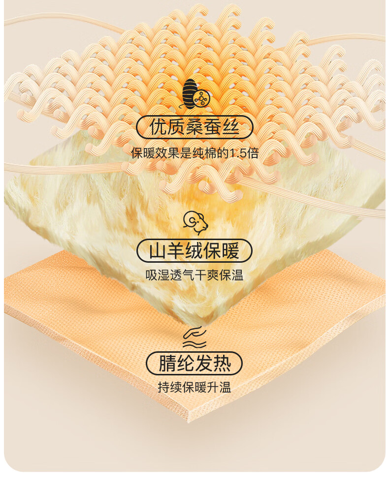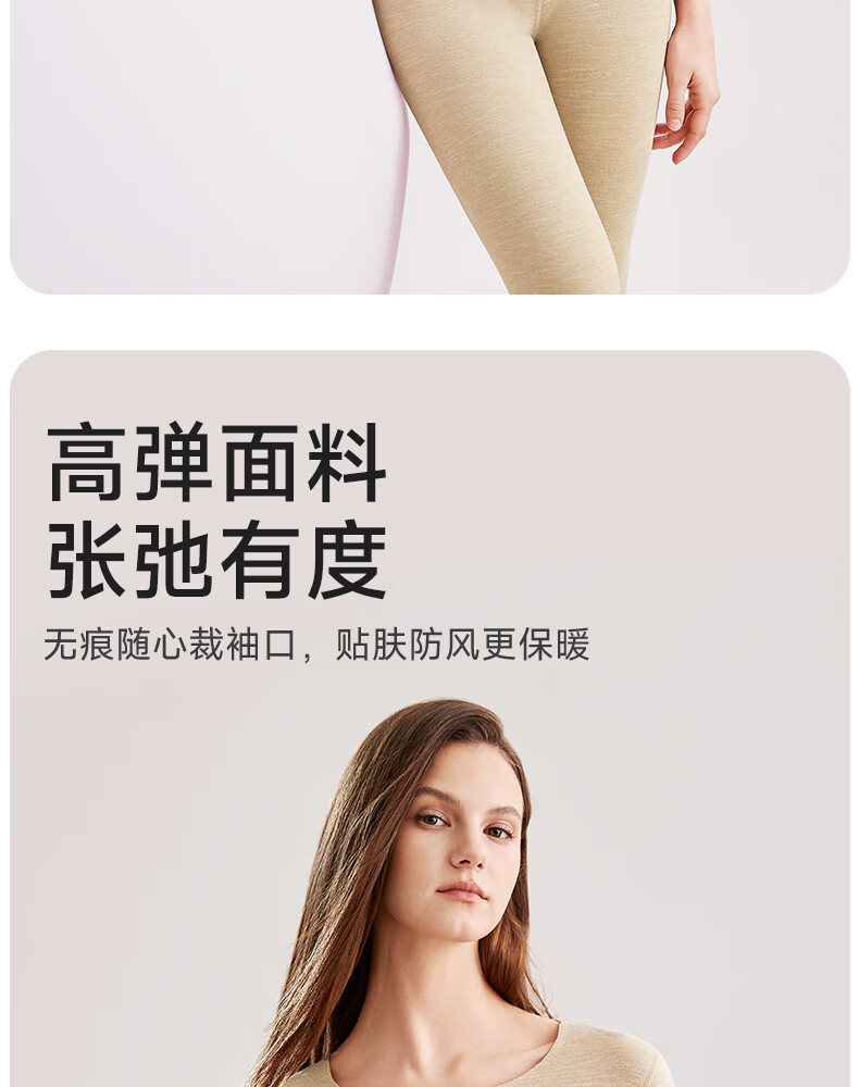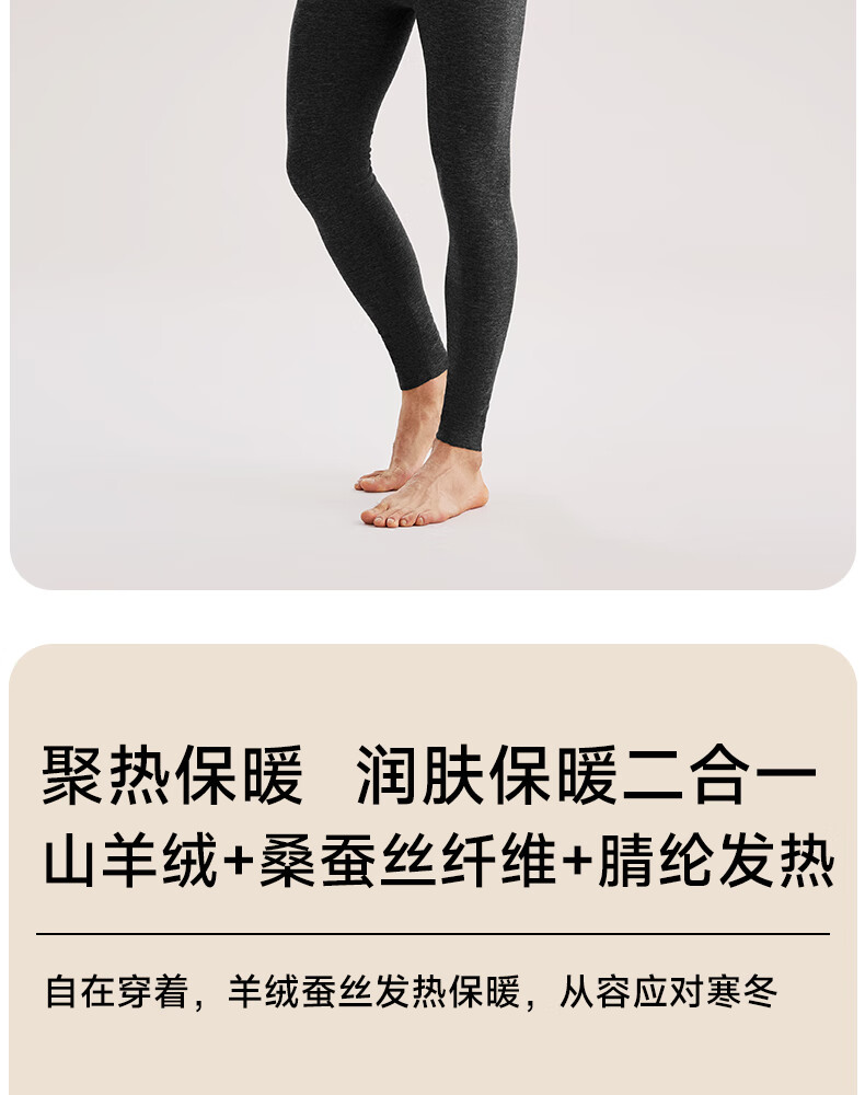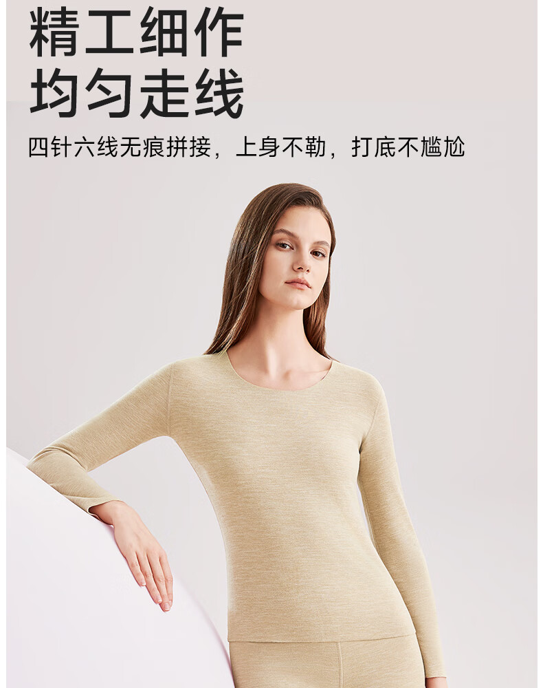 帕兰朵羊绒蚕丝秋冬季保暖内衣女士加绒加厚保暖套装情侣款 女款:肤色 L 【适合100-130斤】