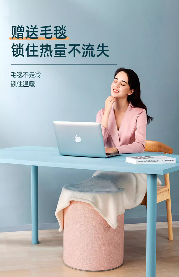 筏芯德国新款暖脚宝办公室桌下取暖神器捂脚保暖腿加热垫过冬发热毯 基础款灰色-3秒速热两档调温-送毛毯