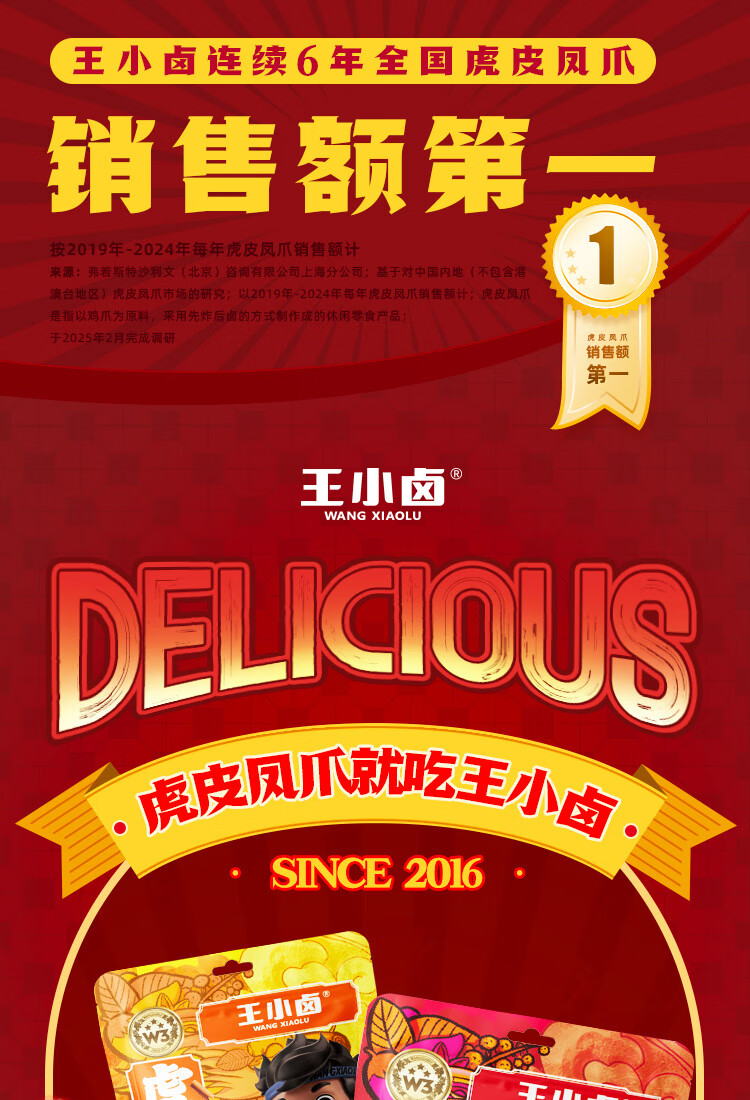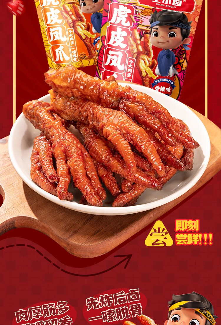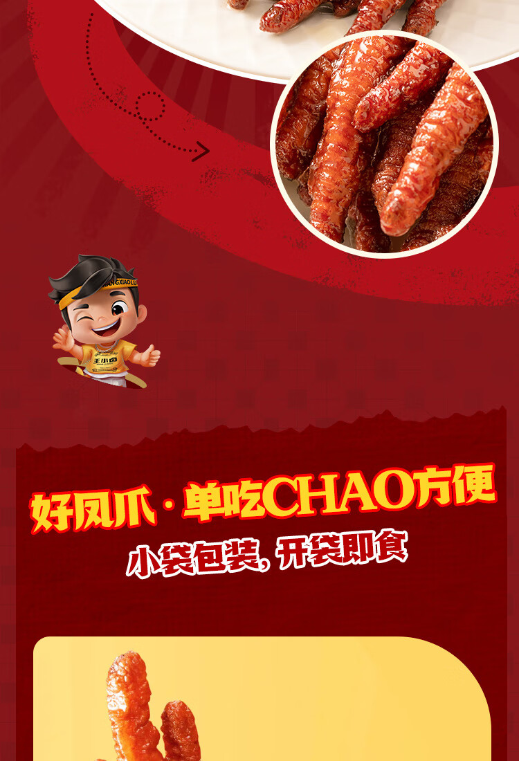 王小卤虎皮凤爪 鸡爪 卤鸡爪 零食 网红休闲零食 虎皮凤爪香辣味10支