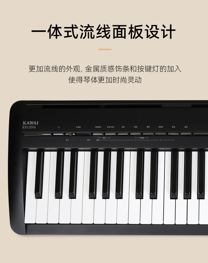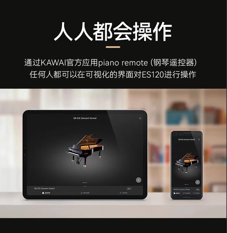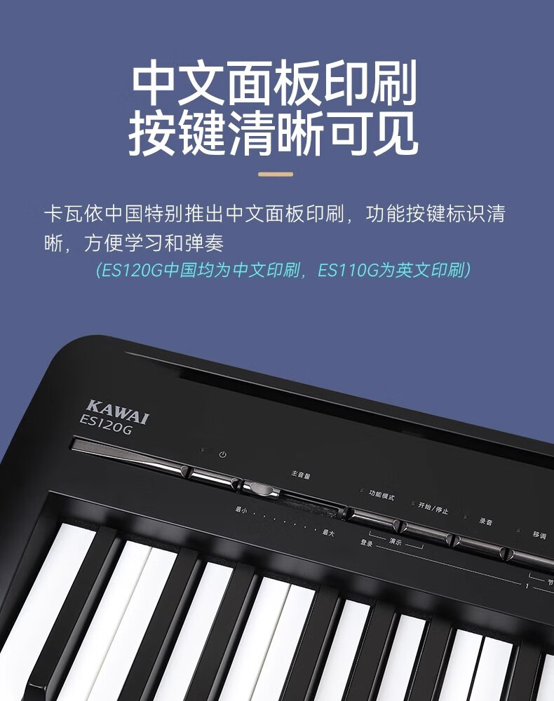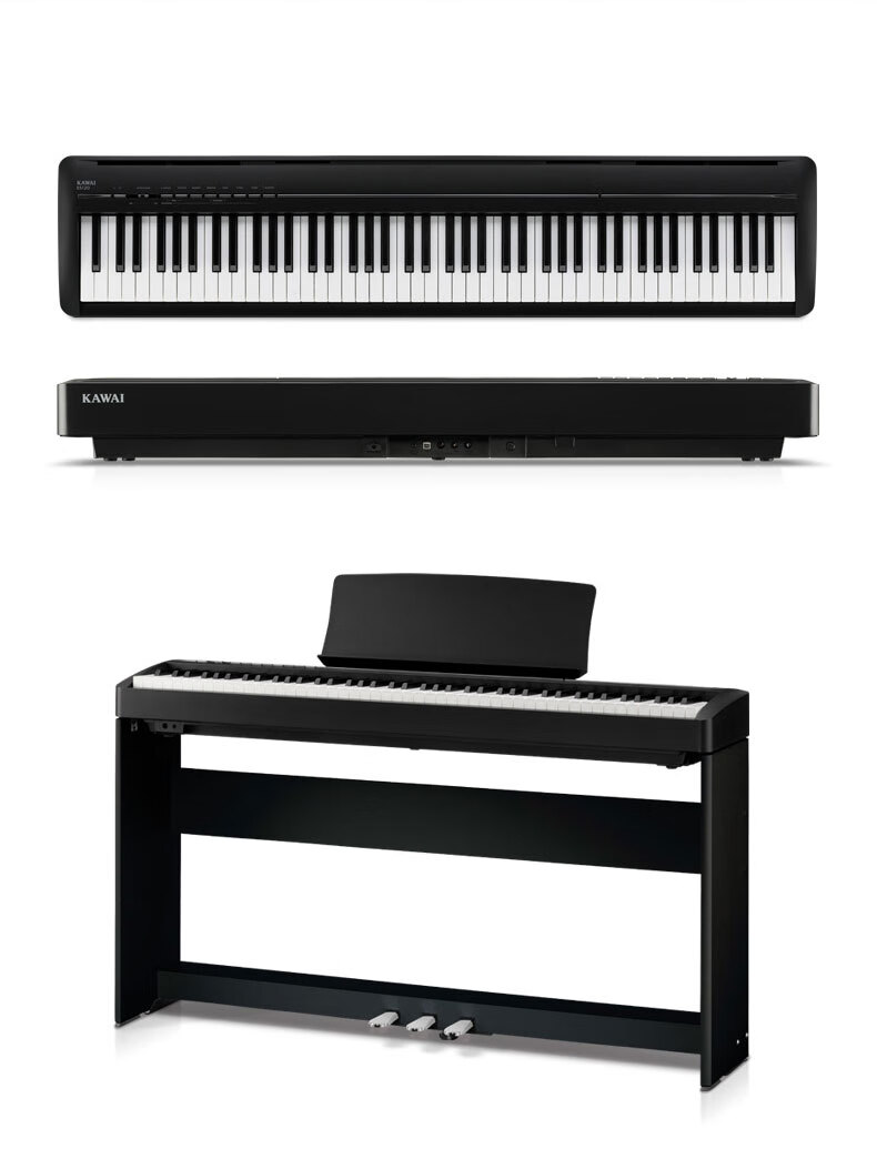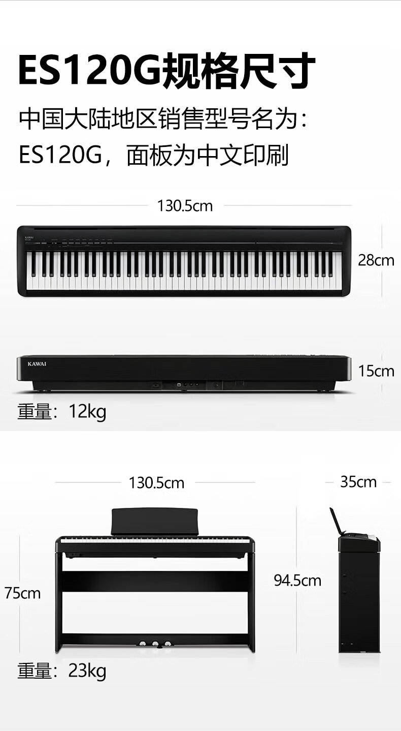 卡瓦依(KAWAI)电钢琴逐级重锤88键ES120 科技质感专业智能蓝牙APP教学钢琴便携 ES120黑色+原装木架+三踏板+礼包