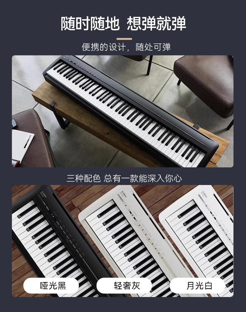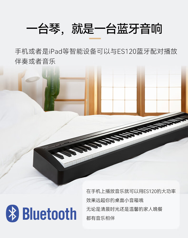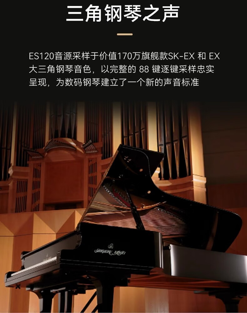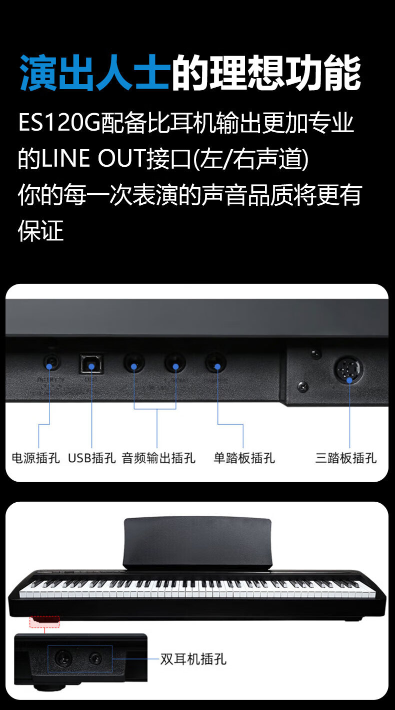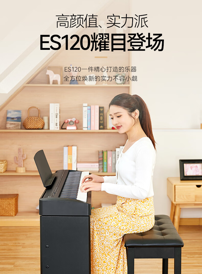 卡瓦依(KAWAI)电钢琴逐级重锤88键ES120 科技质感专业智能蓝牙APP教学钢琴便携 ES120黑色+原装木架+三踏板+礼包