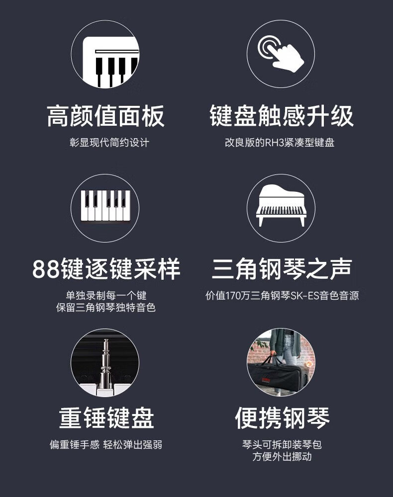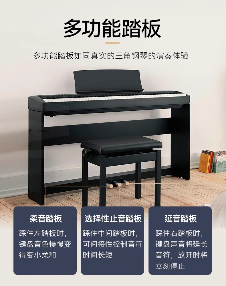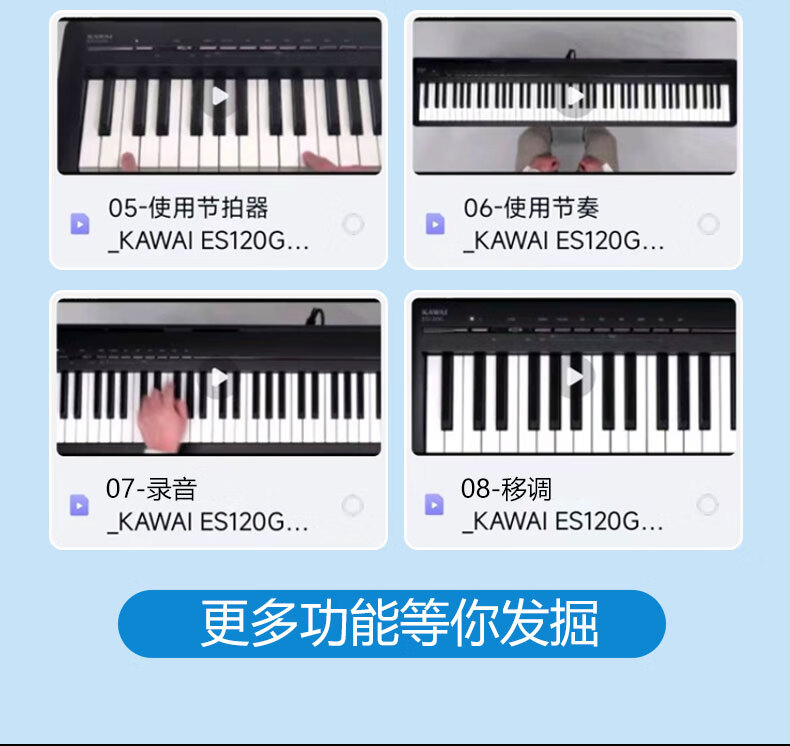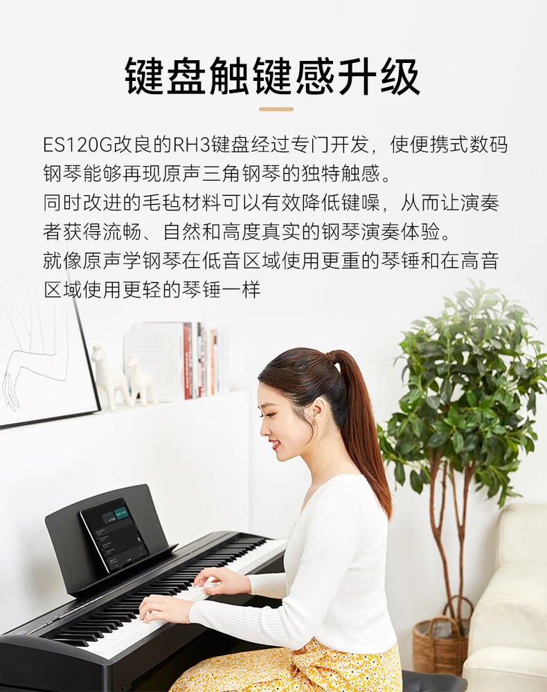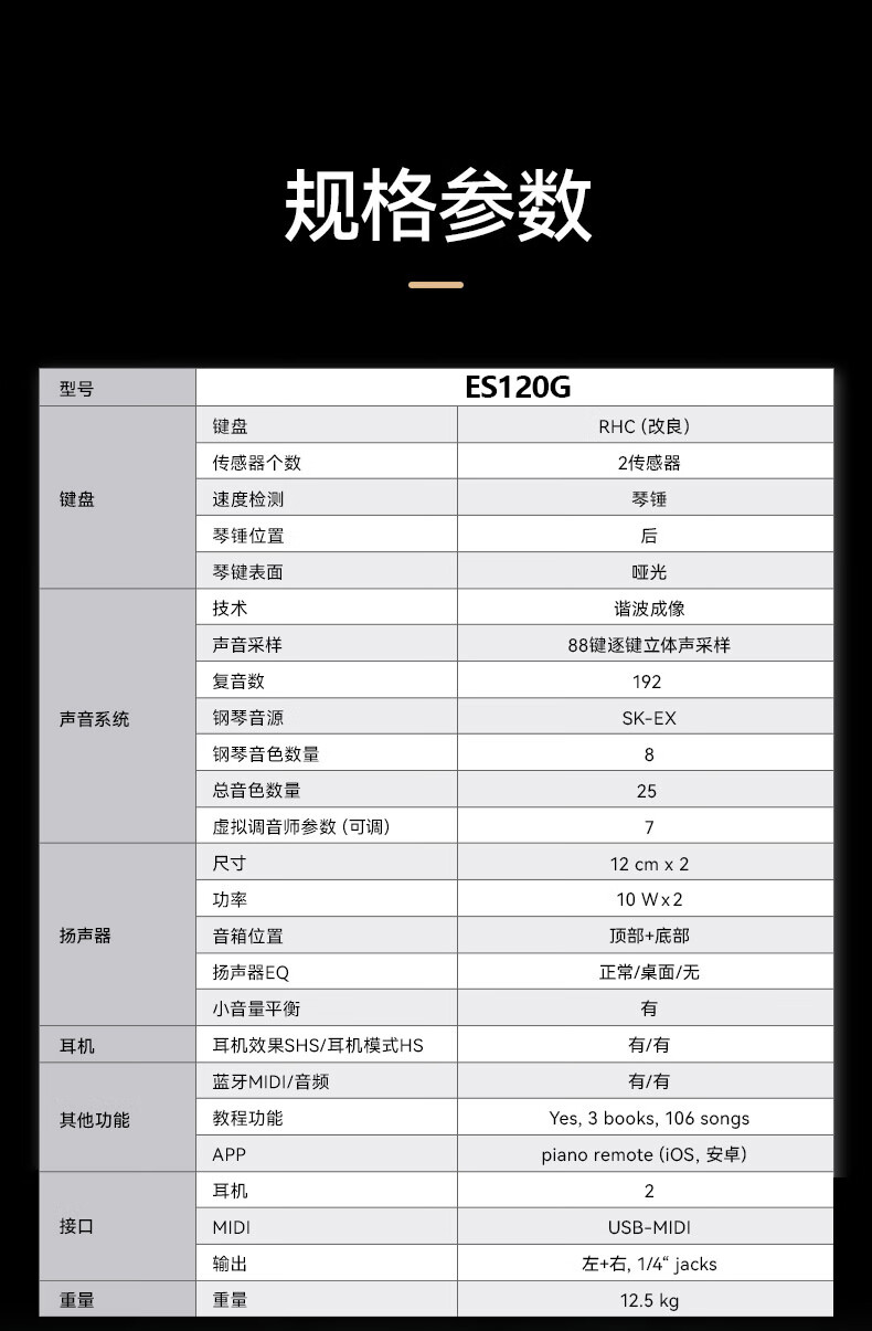 卡瓦依(KAWAI)电钢琴逐级重锤88键ES120 科技质感专业智能蓝牙APP教学钢琴便携 ES120黑色+原装木架+三踏板+礼包