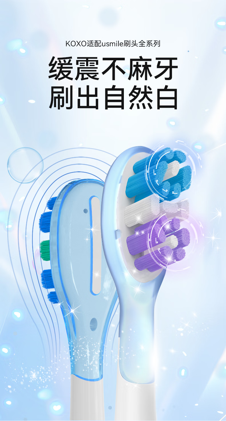KOXO适配usmile电动牙刷头p10pro/y10/y1s/p1/u3s/y4/u2s/p4/p10/p20pro笑容加软毛护龈替换通用 缓震清洁型白色4支+缓震亮白型白色4支