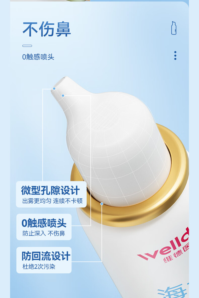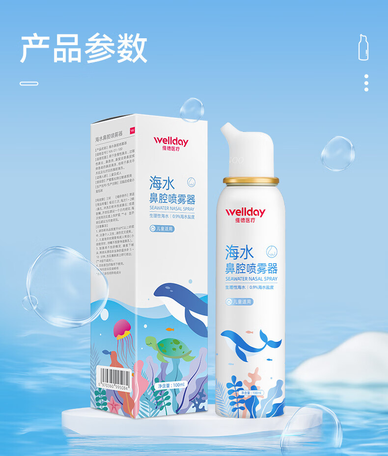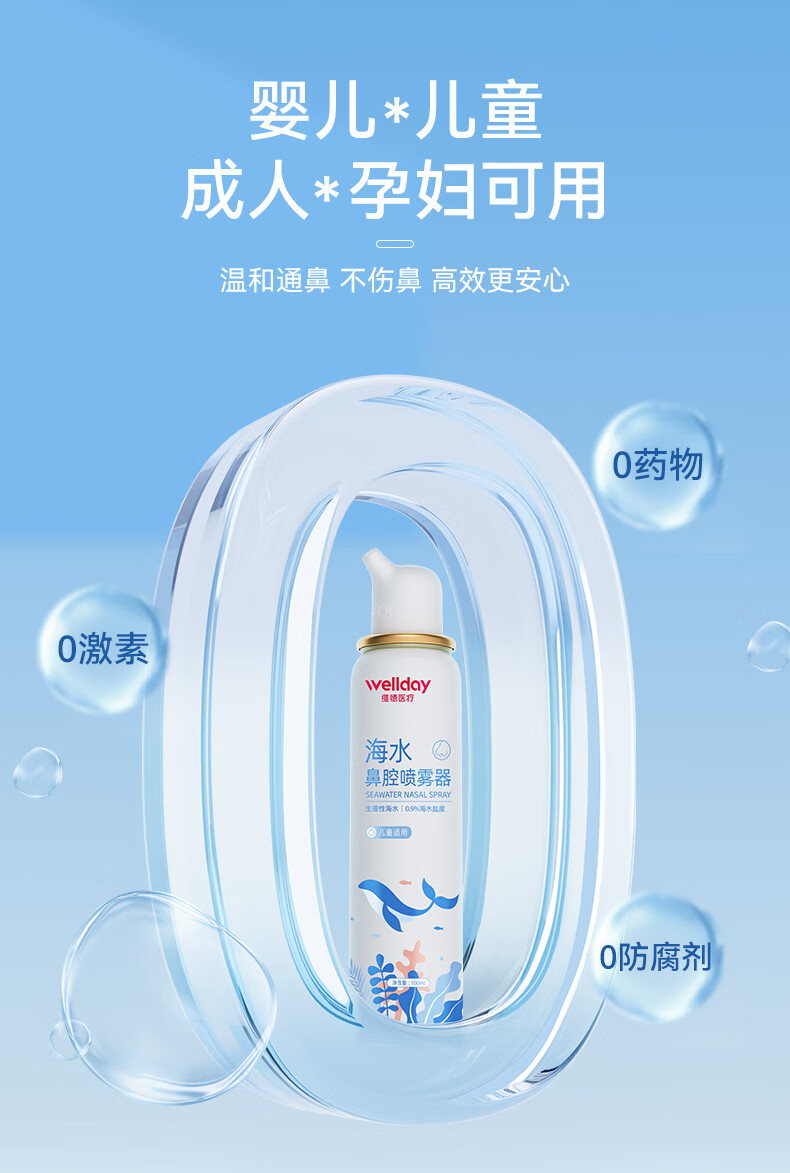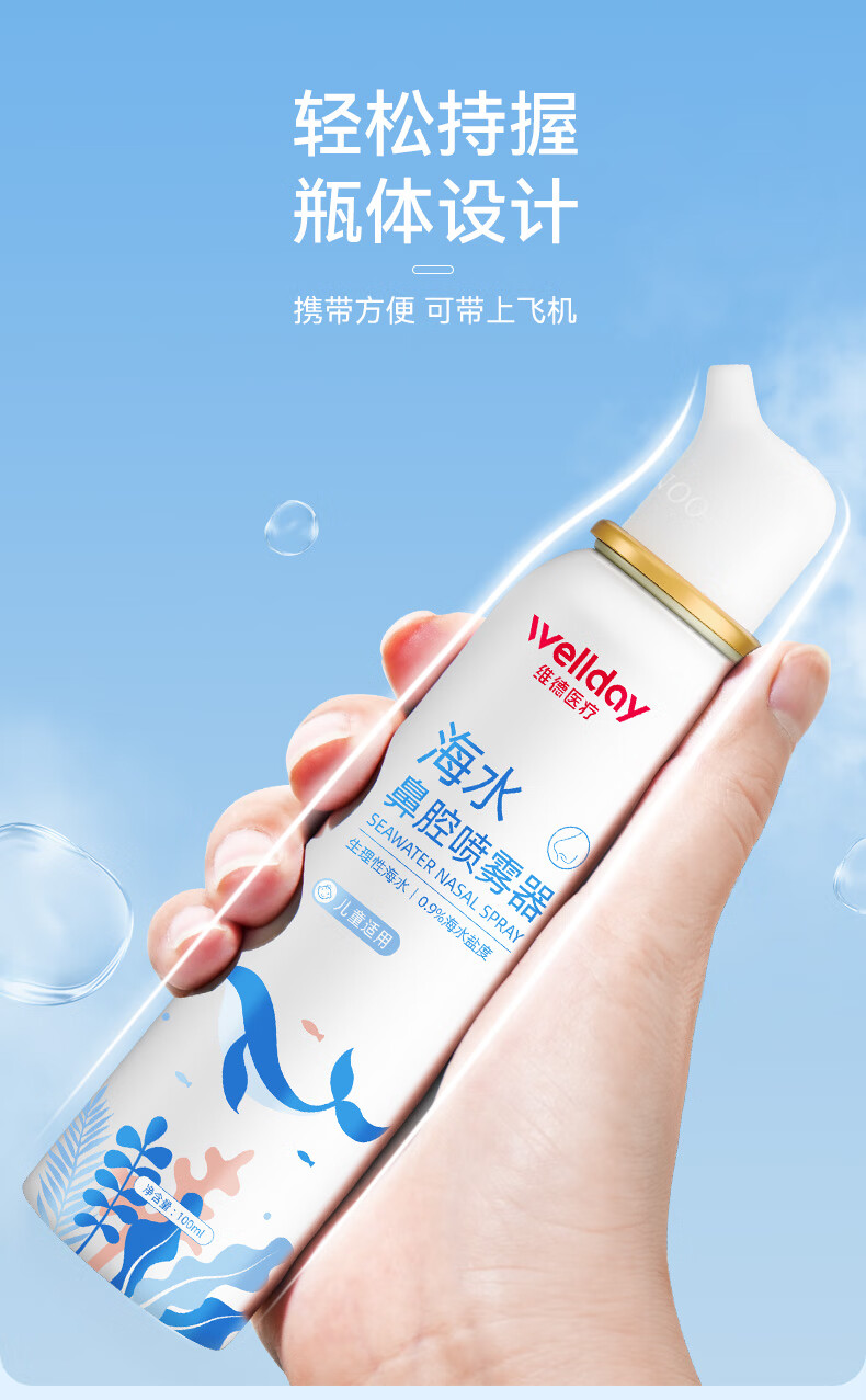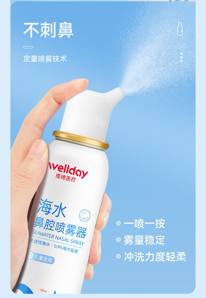 维德(WELLDAY)等渗生理性盐水洗鼻腔喷雾海盐水喷鼻洗鼻器成人儿童高渗鼻炎喷剂 【鼻塞鼻炎】儿童等渗100ml