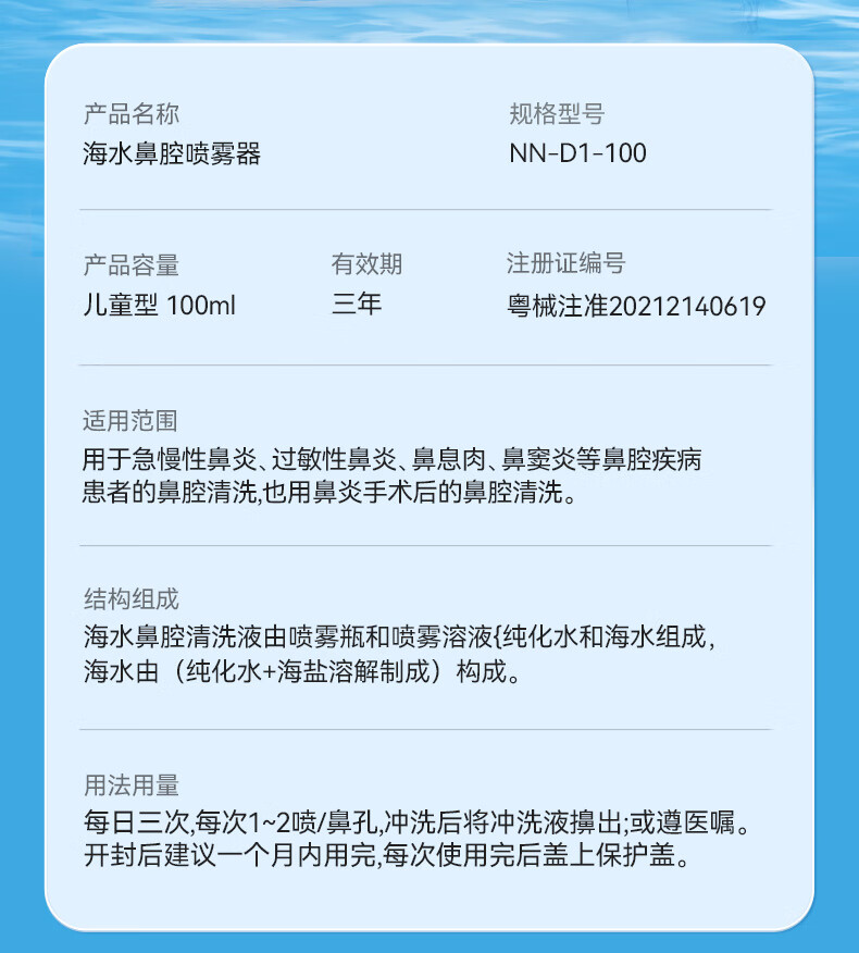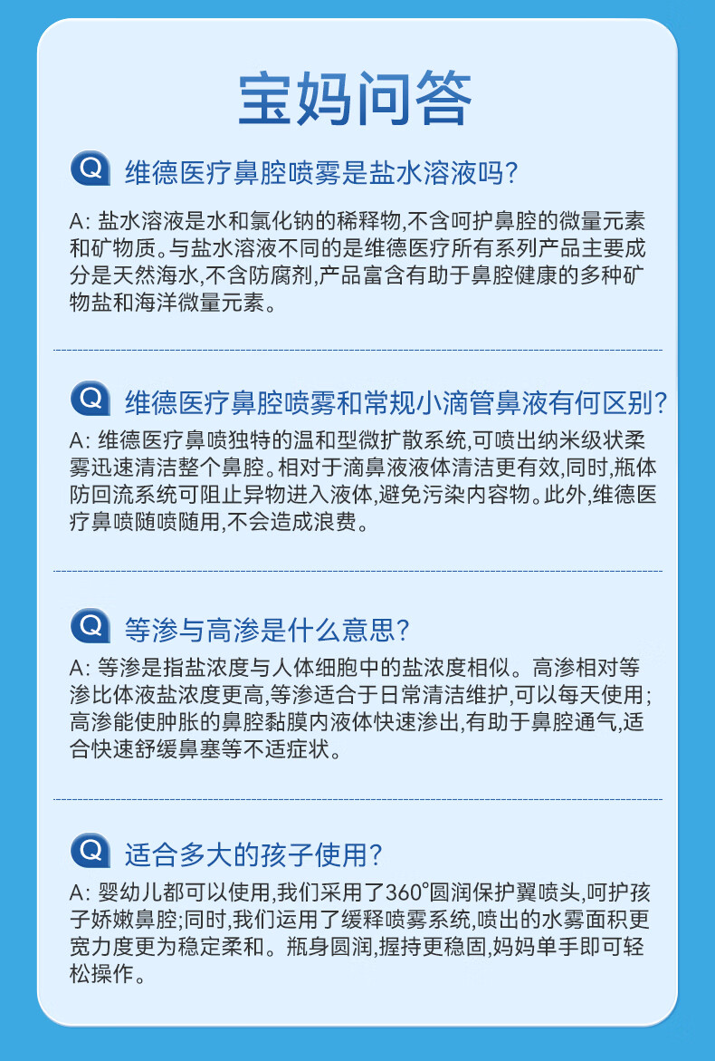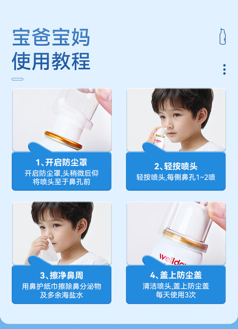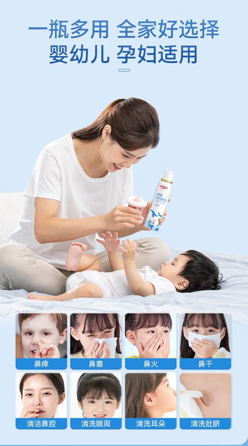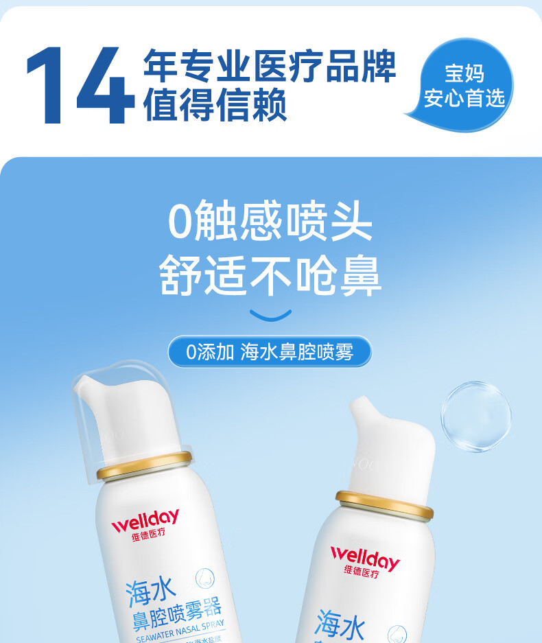 维德(WELLDAY)等渗生理性盐水洗鼻腔喷雾海盐水喷鼻洗鼻器成人儿童高渗鼻炎喷剂 【鼻塞鼻炎】儿童等渗100ml