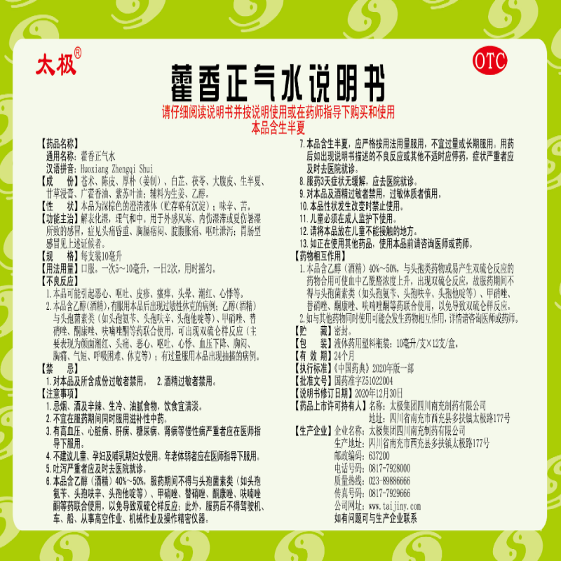 太极藿香正气水10ml*12支解表化湿理气中和头痛昏重胸隔痞闷脘腹胀痛呕吐泄泻胃肠型感冒